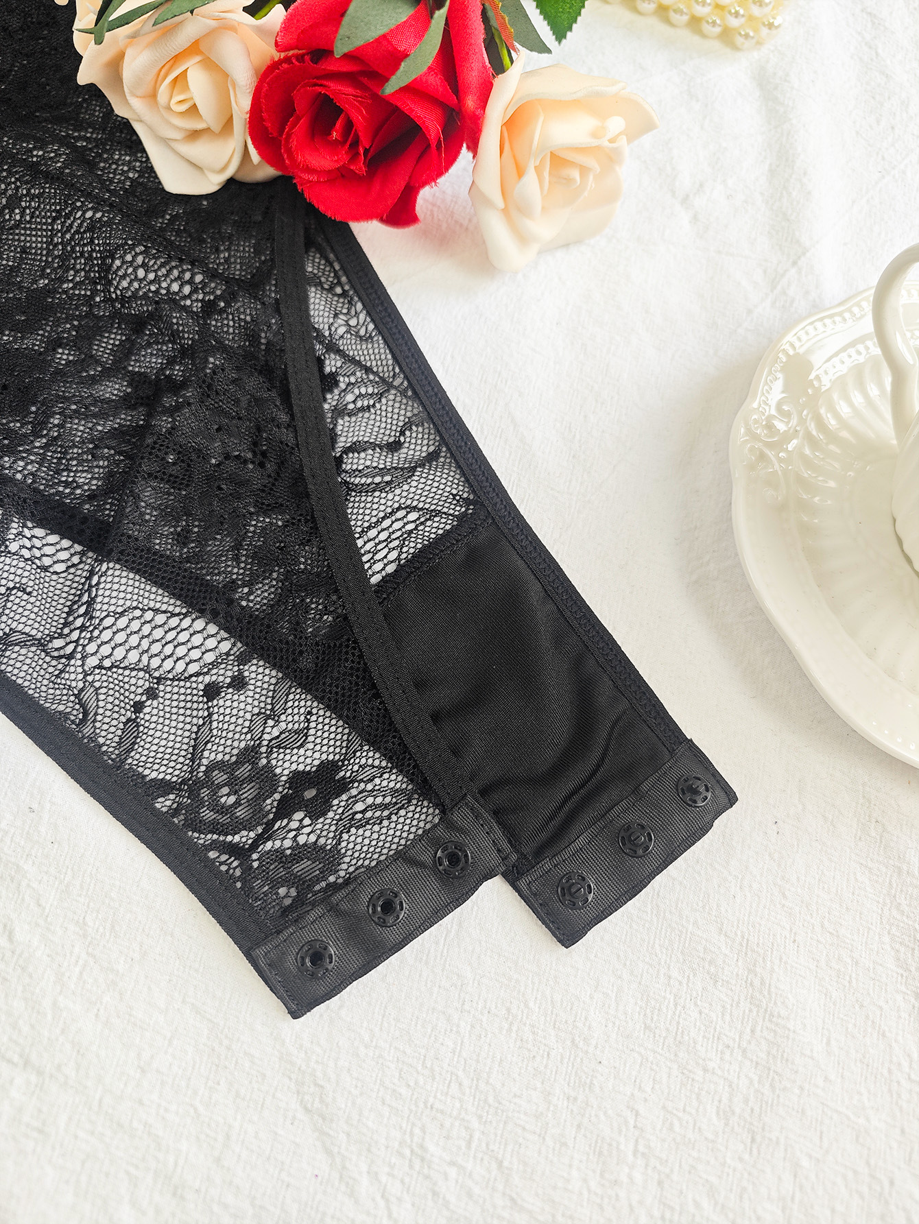 Polyester Slim Women Romper see through look patchwork Solid black PC