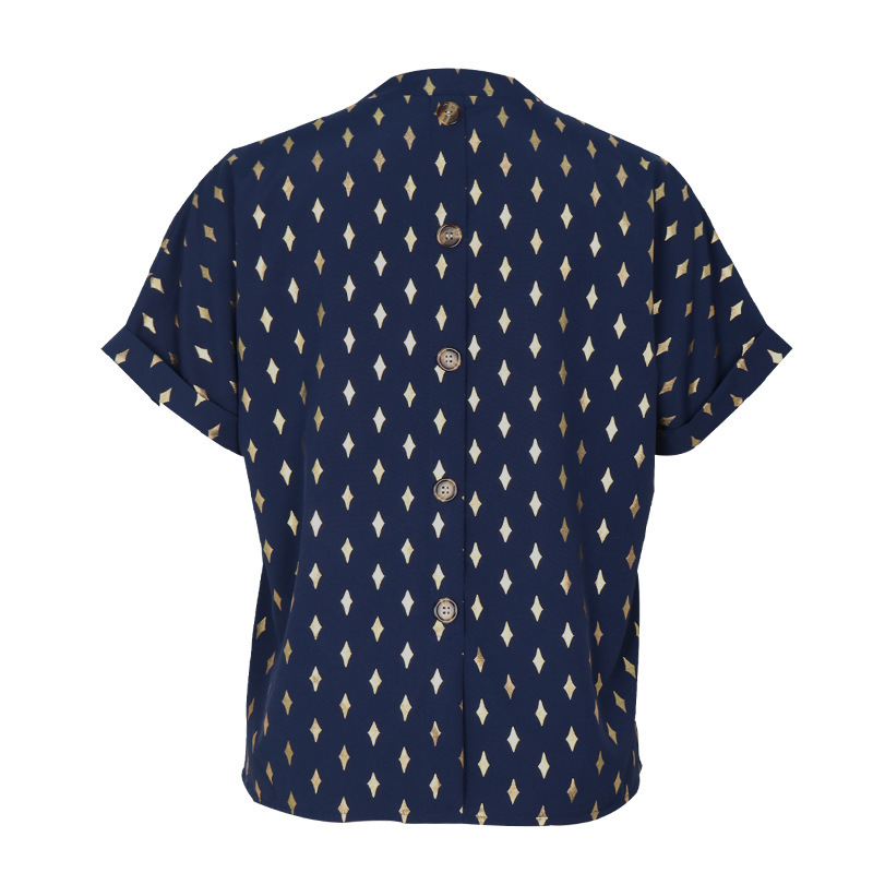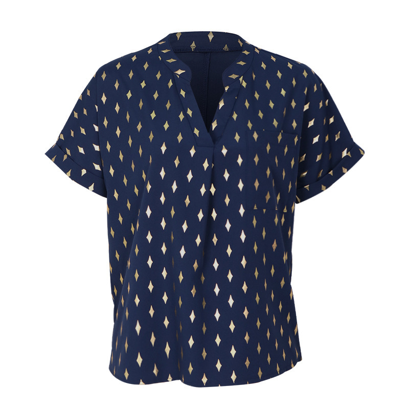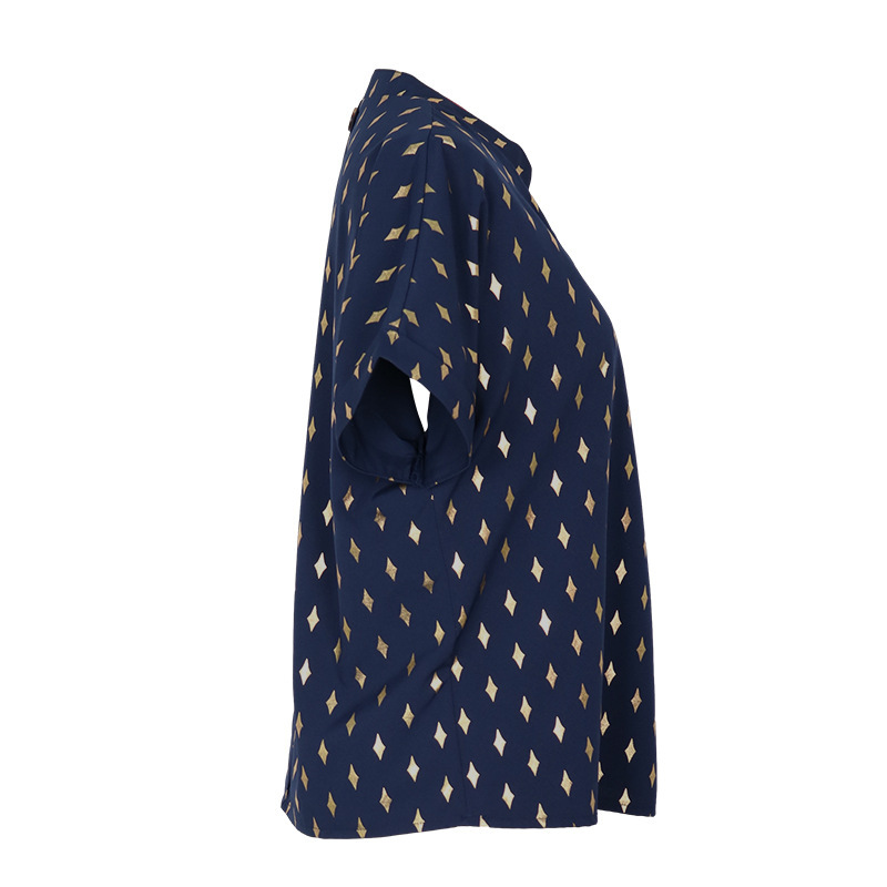 Polyester Women Short Sleeve Shirt & loose printed Navy Blue PC