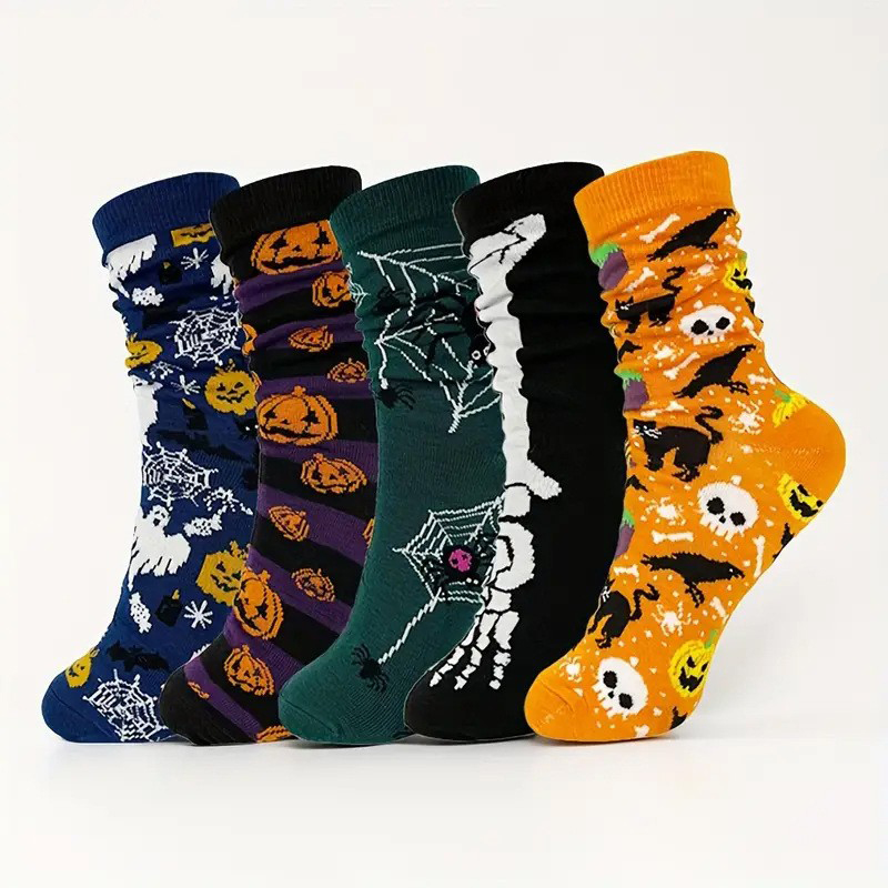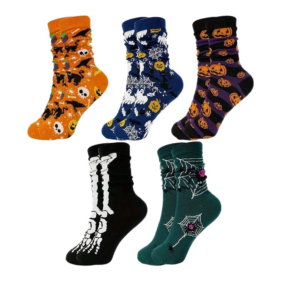 Blue pumpkinOrange pumpkinBlack skeleton handGreen spiderPurple pumpkin