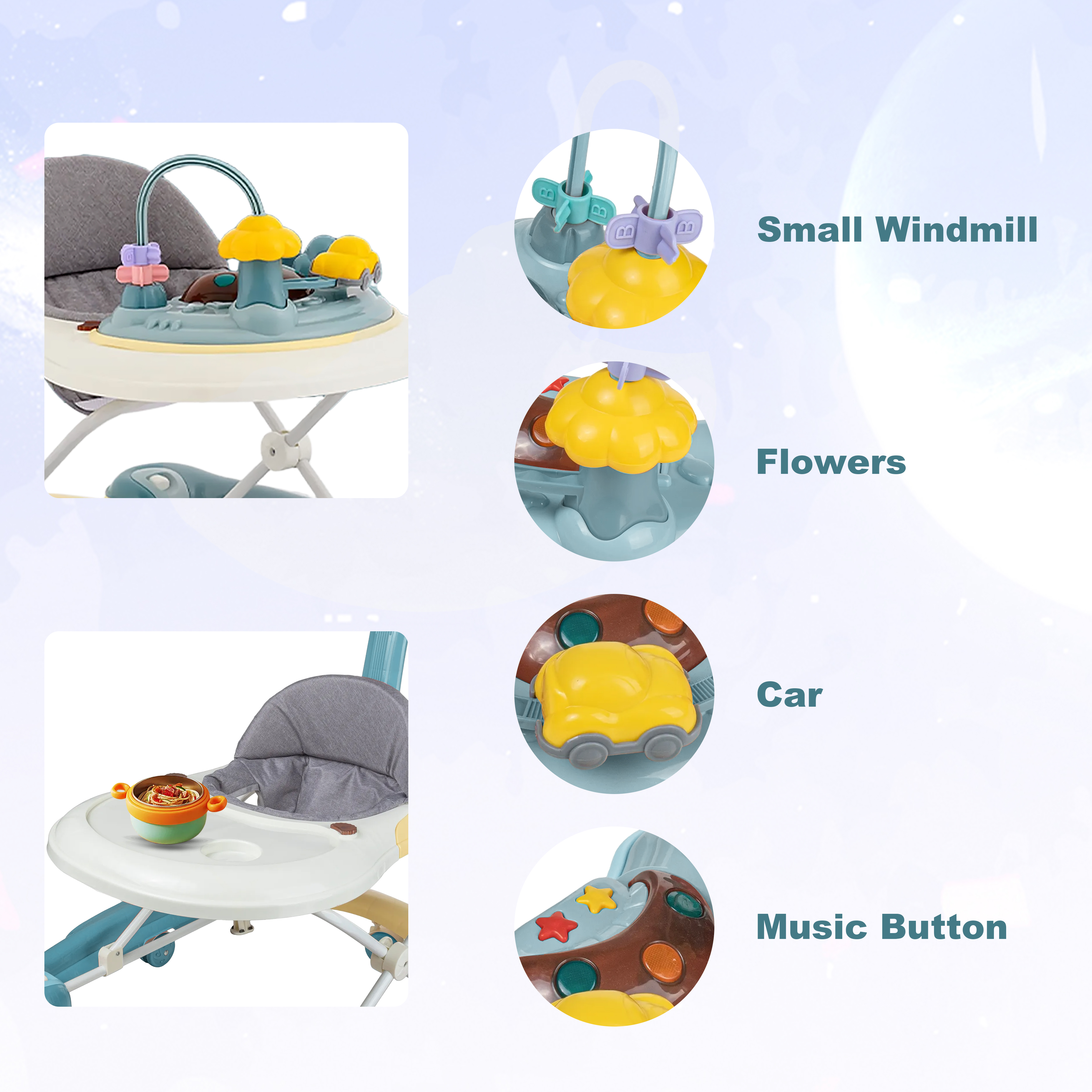 Grey   music toy   push handle   pad   sunshadeGreen   music toys   putter   pad   sunshadeRed   music toy   push handle   pad   sunshade