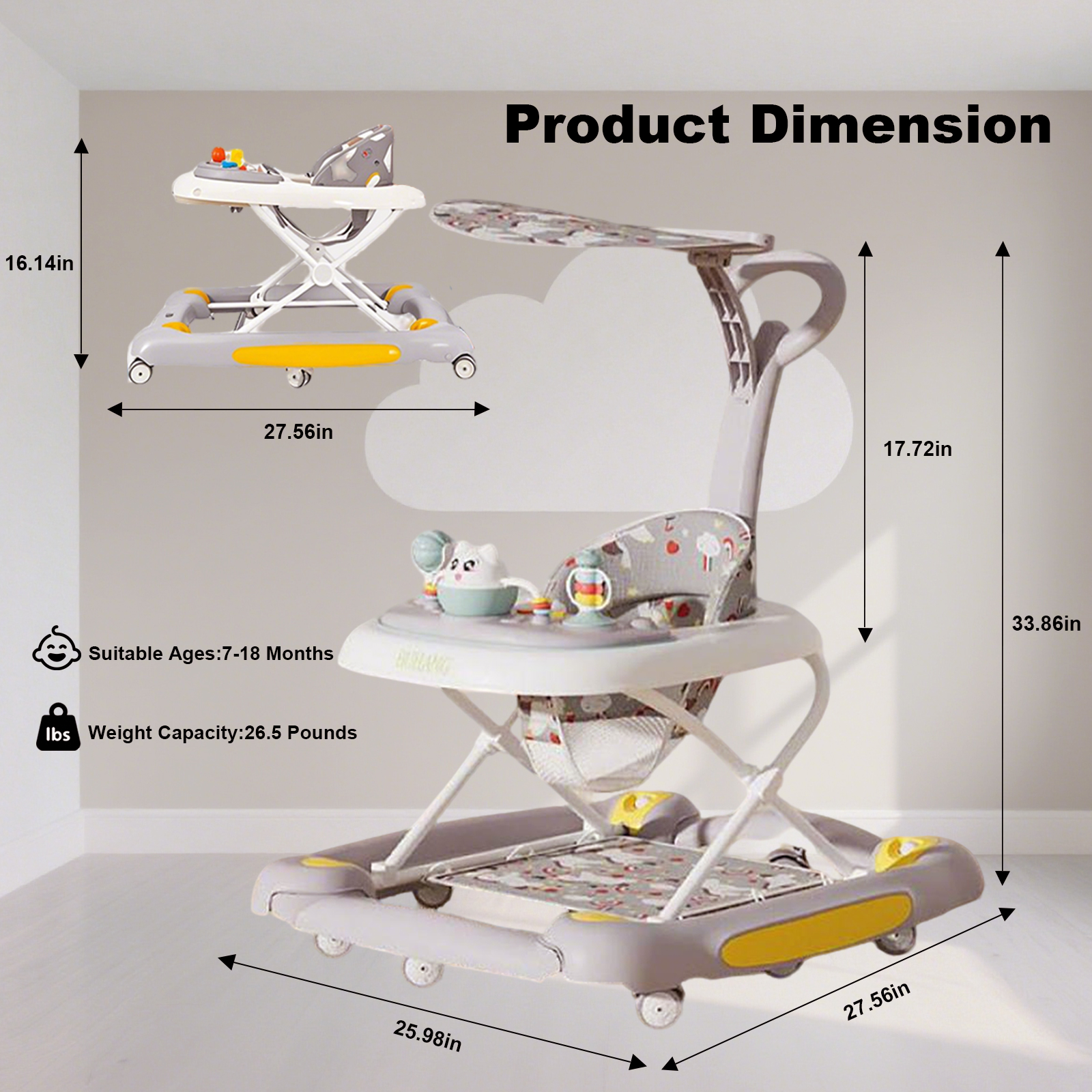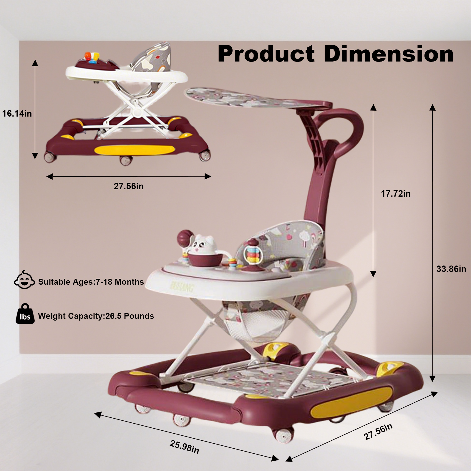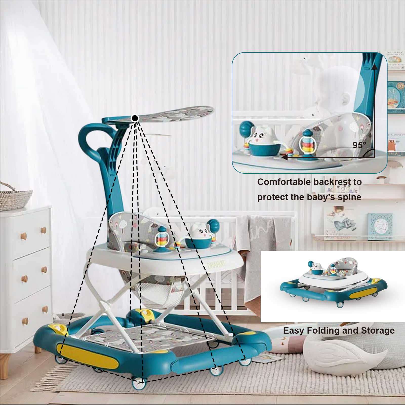 Polypropylene-PP foldable & Multifunction Baby Walker PC