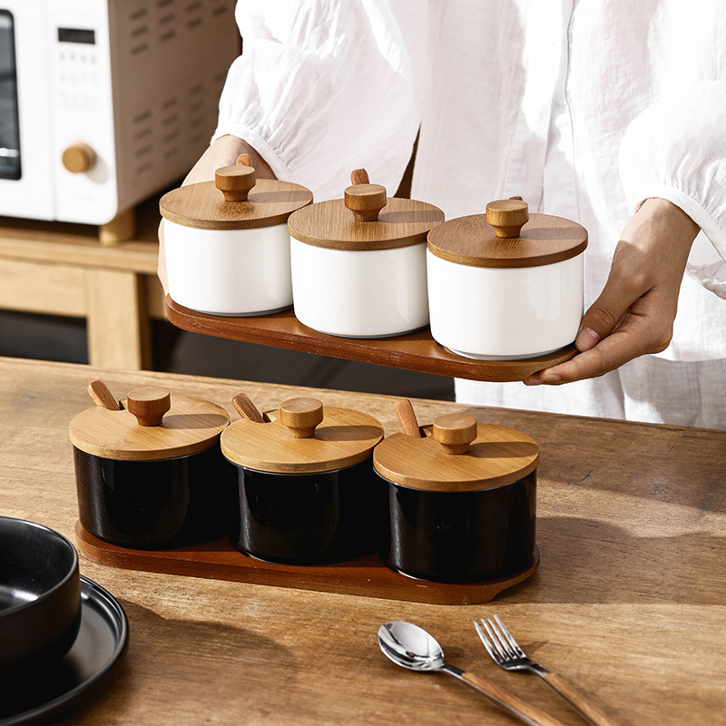 Porcelain dampproof Cruet Set durable & dustproof tray & Spoon Solid Set