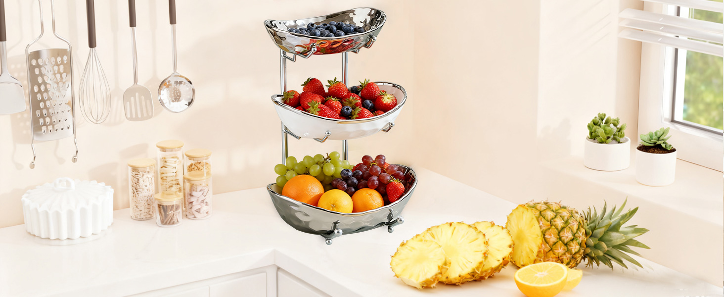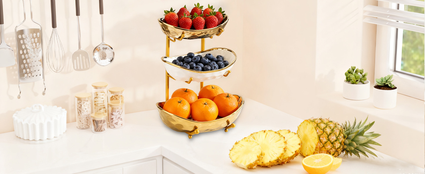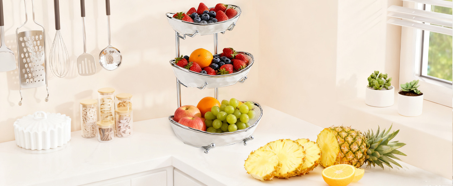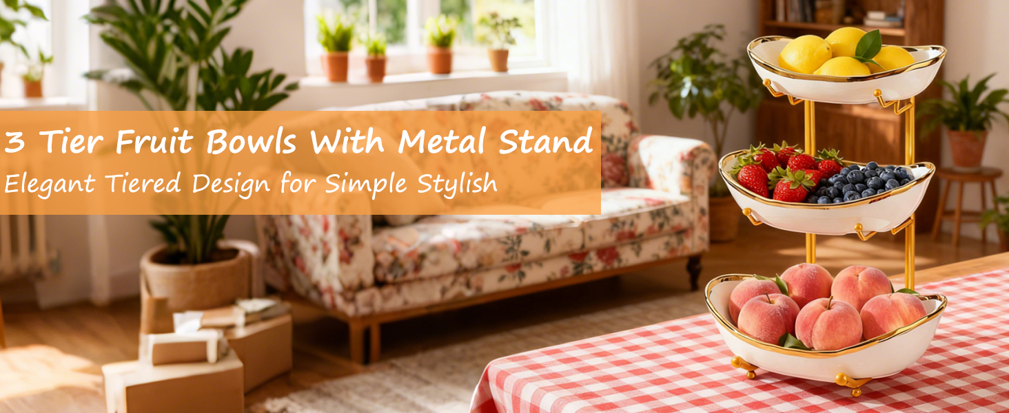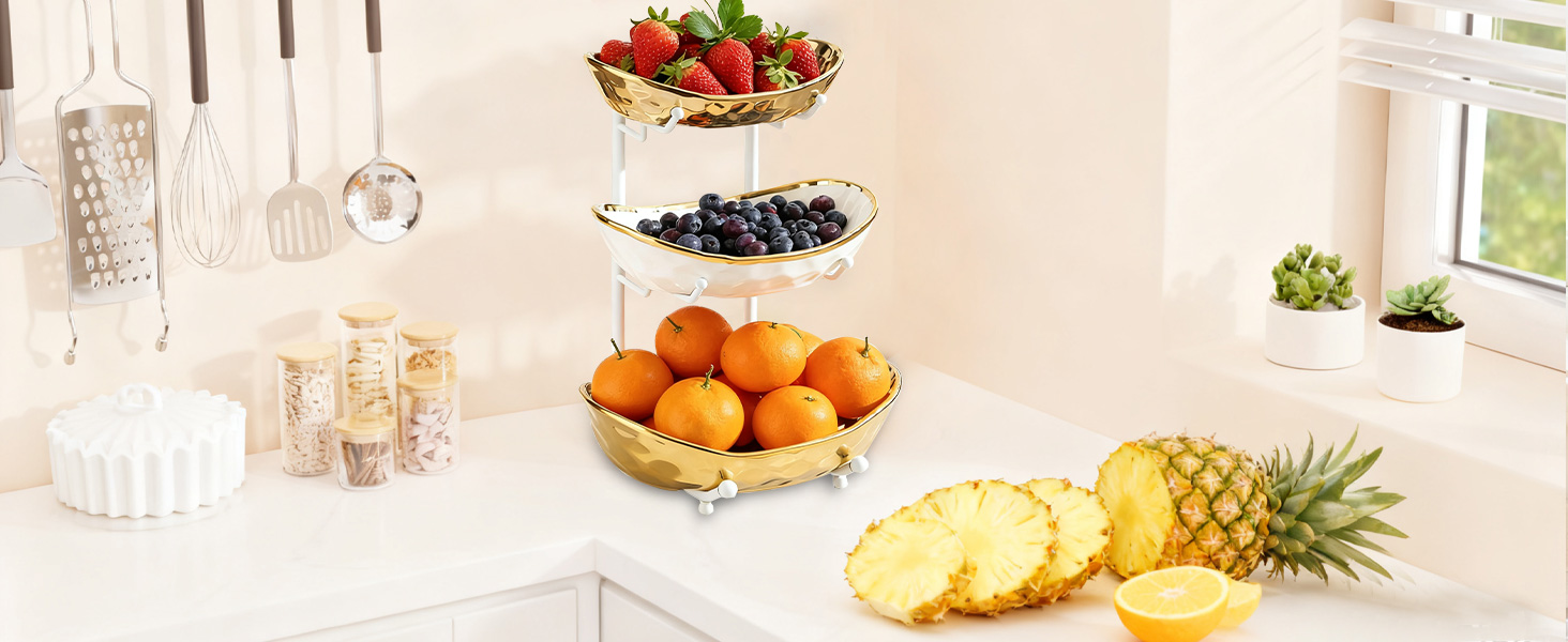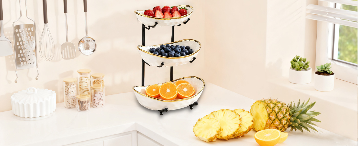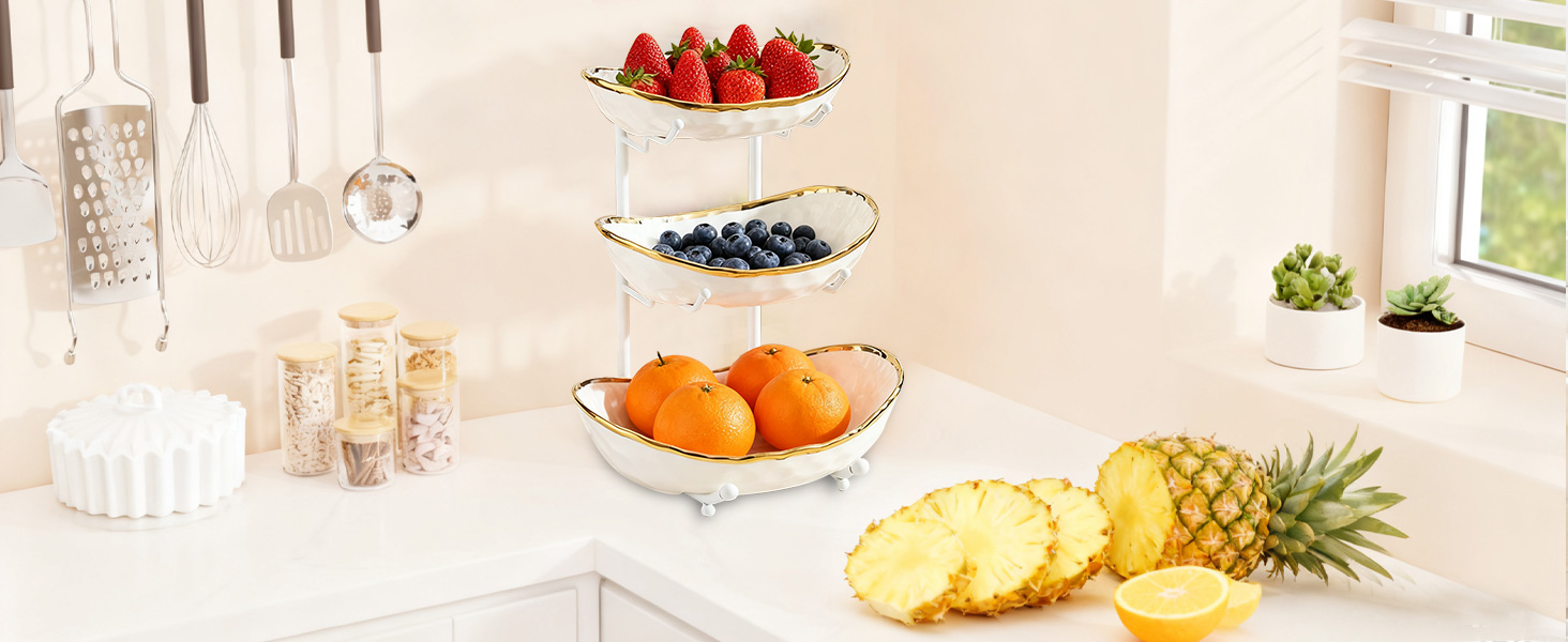 Porcelain & Iron Fruit Baskets Solid Set