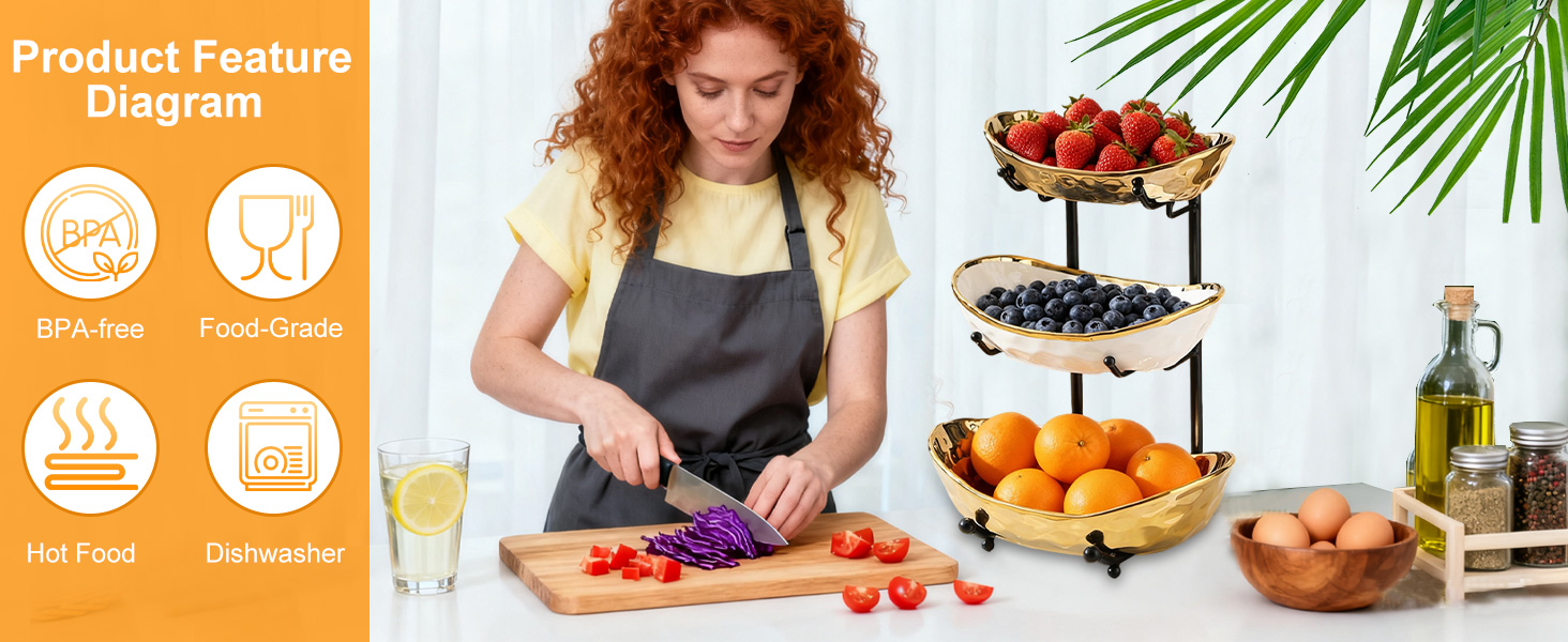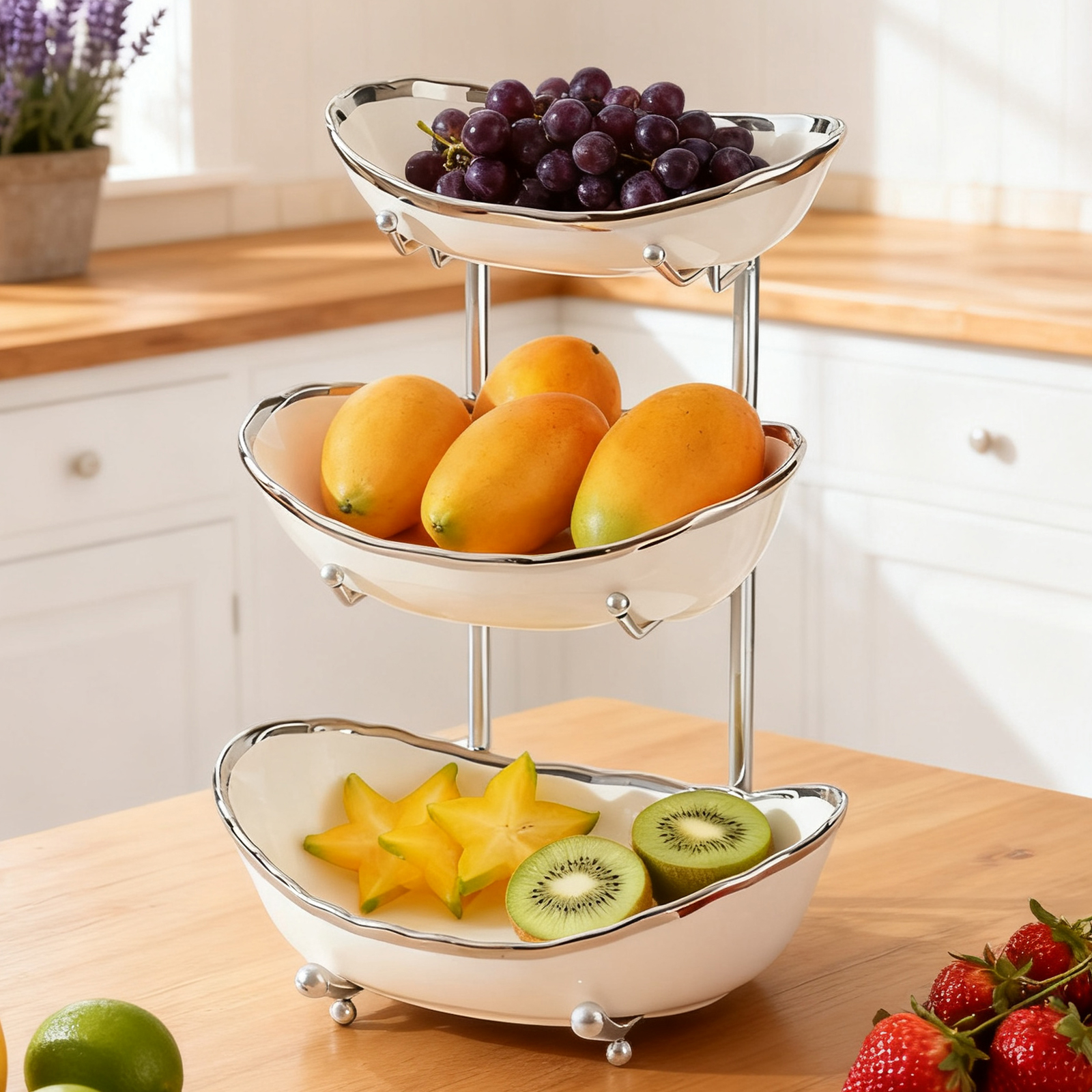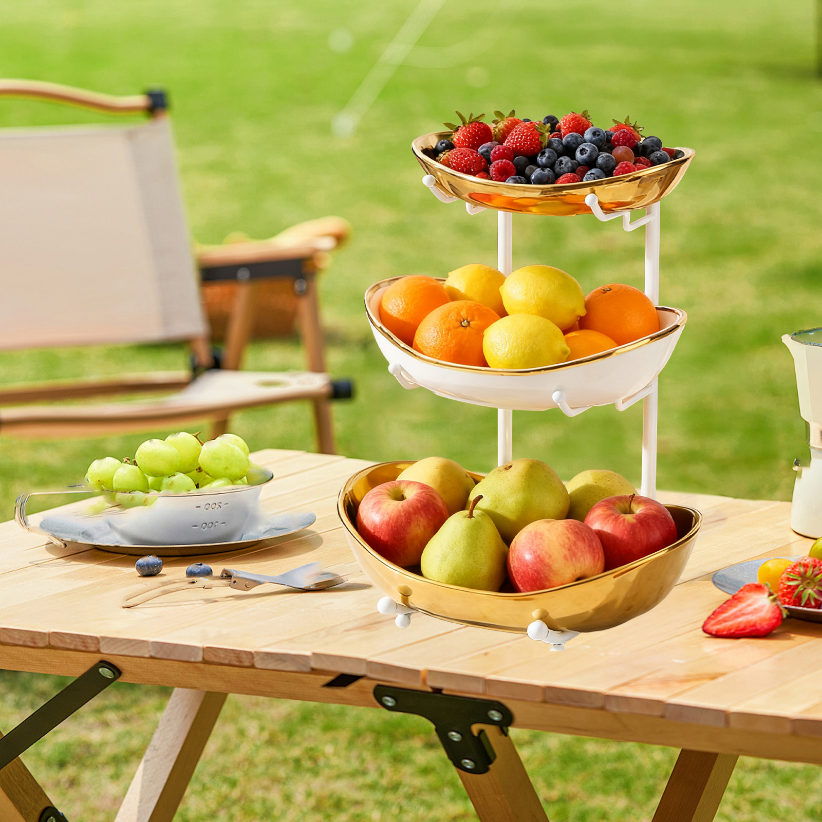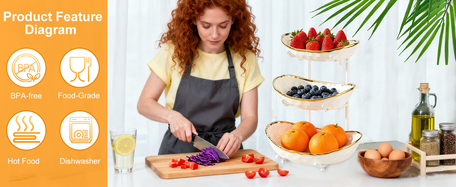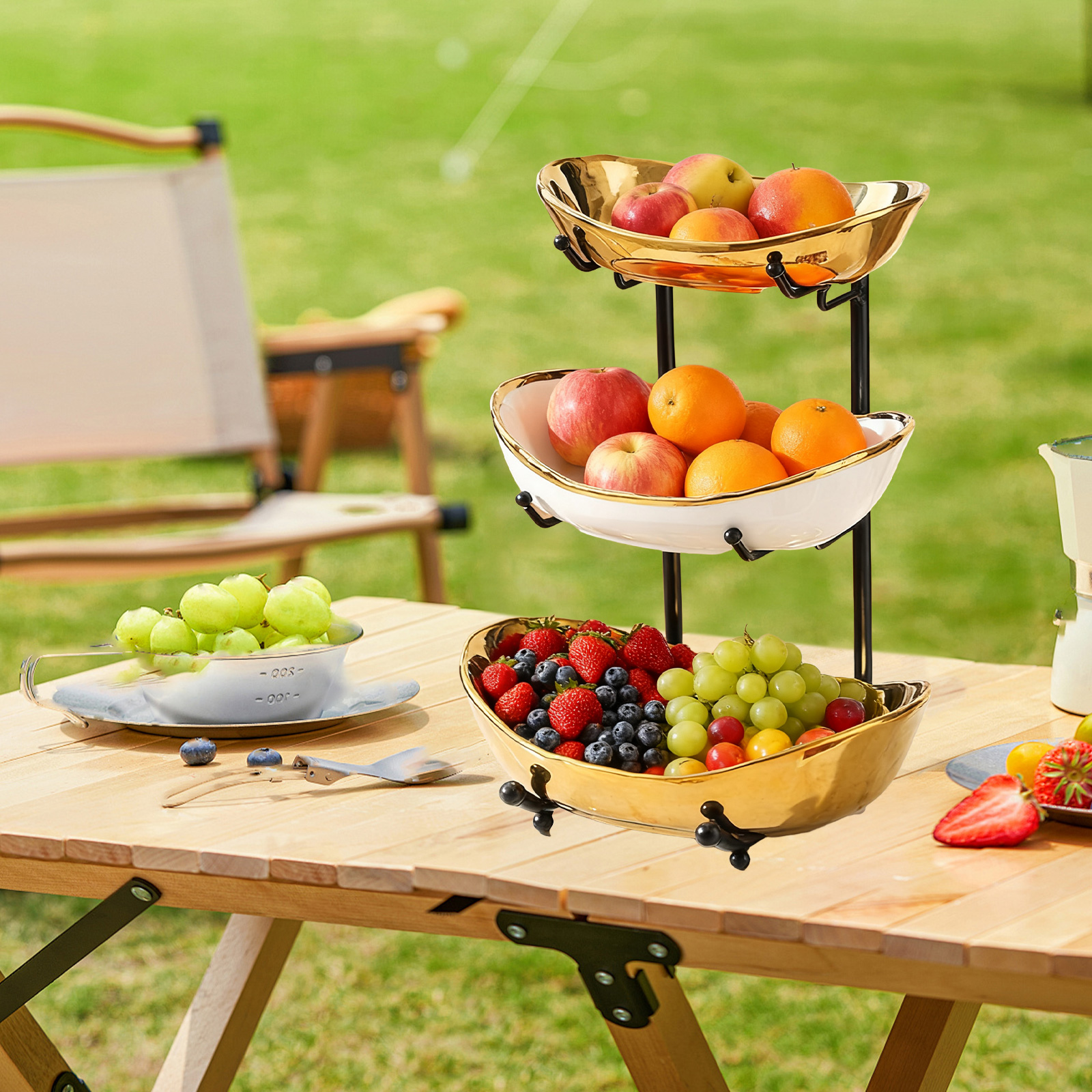 Porcelain & Iron Fruit Baskets Solid Set