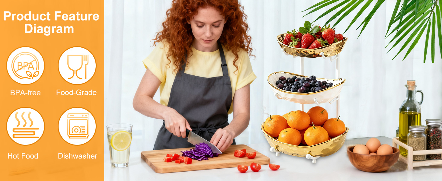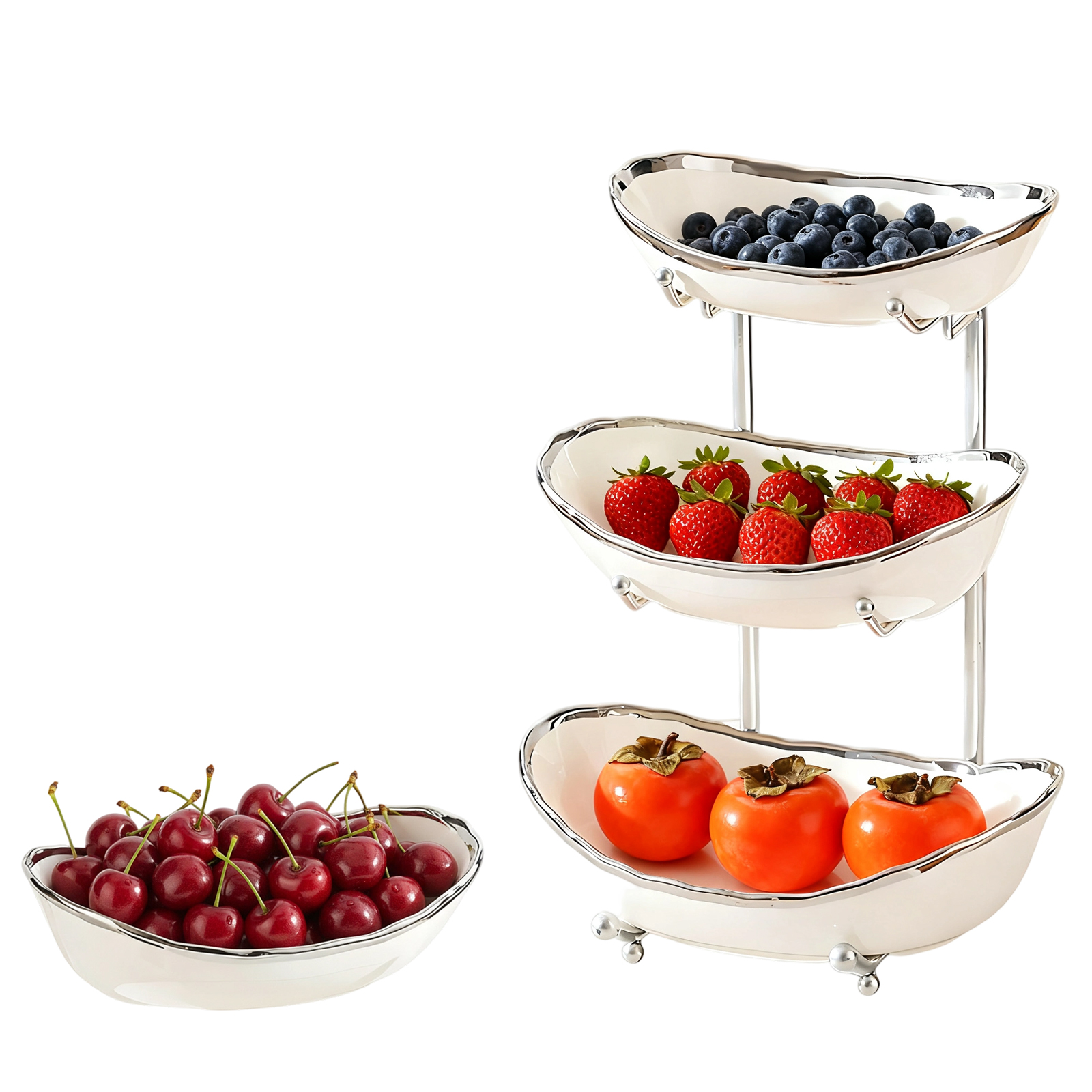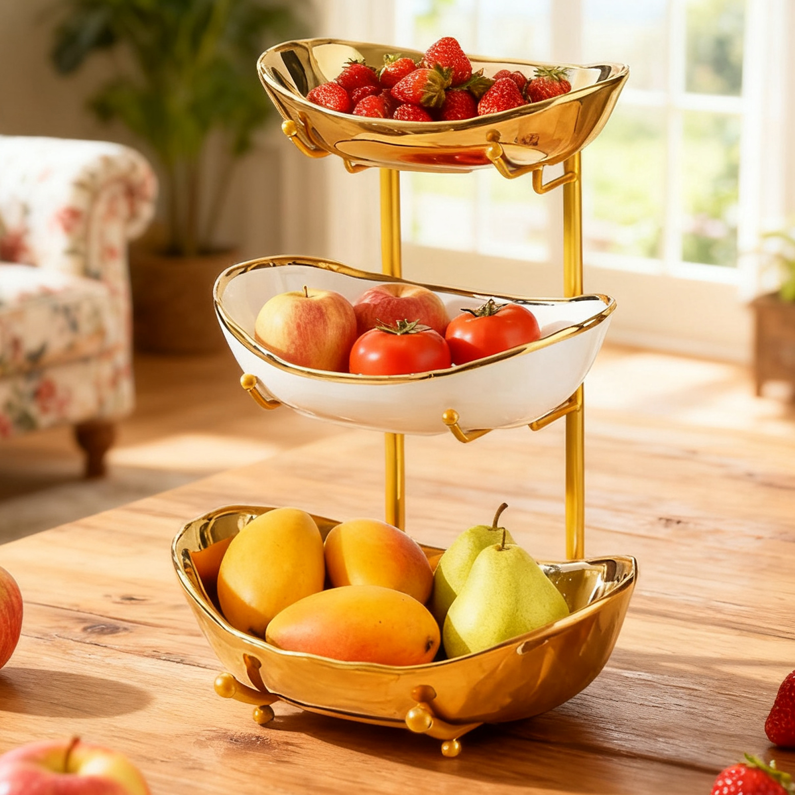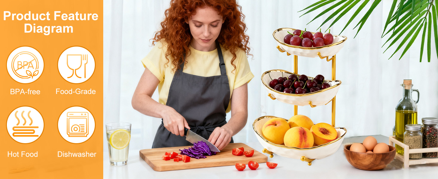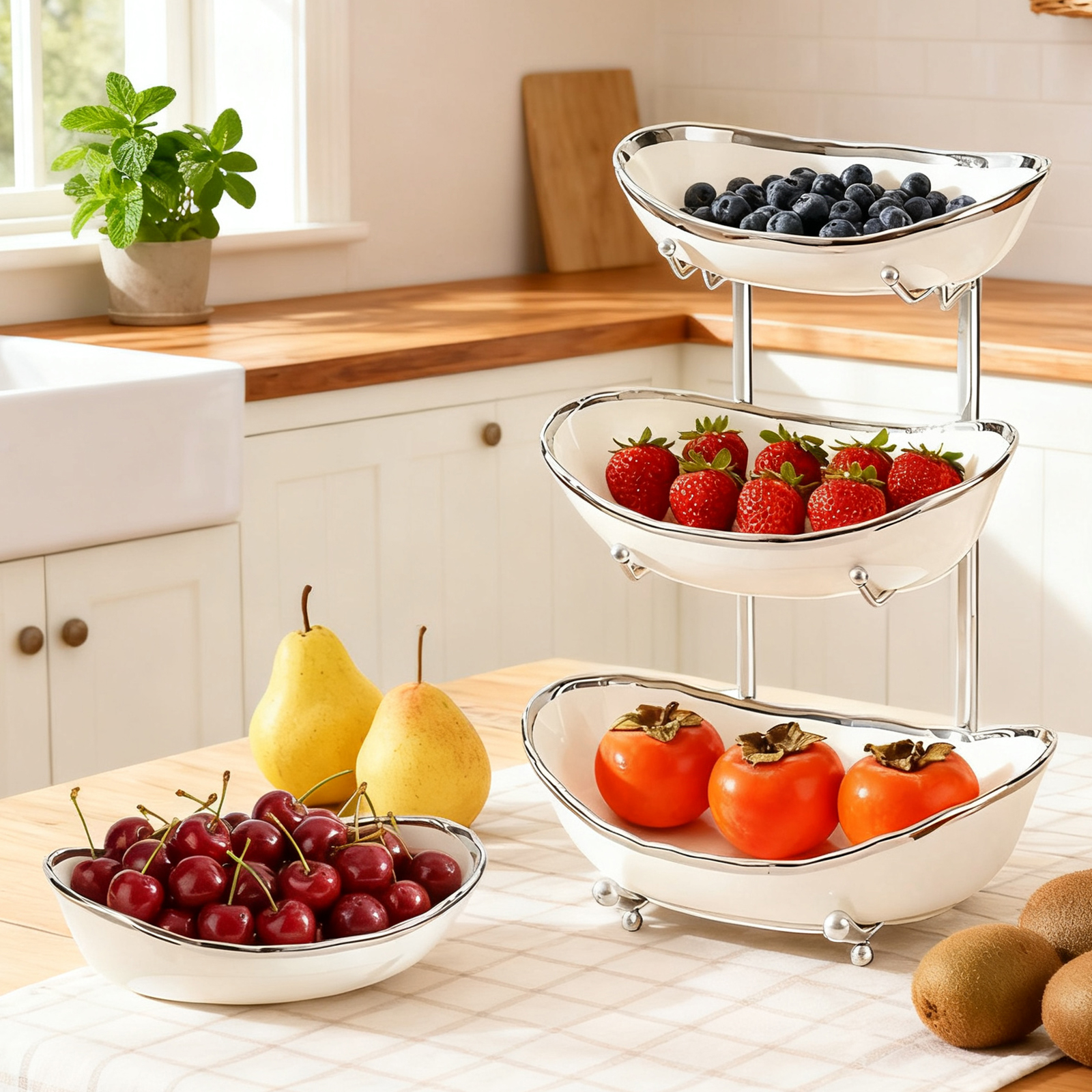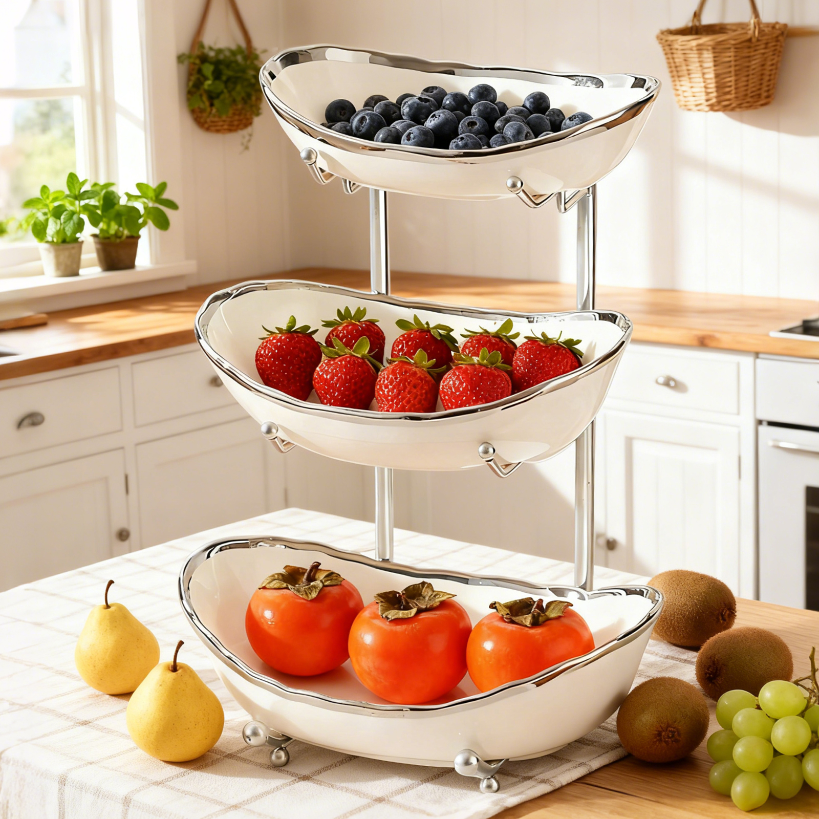 Porcelain & Iron Fruit Baskets Solid Set