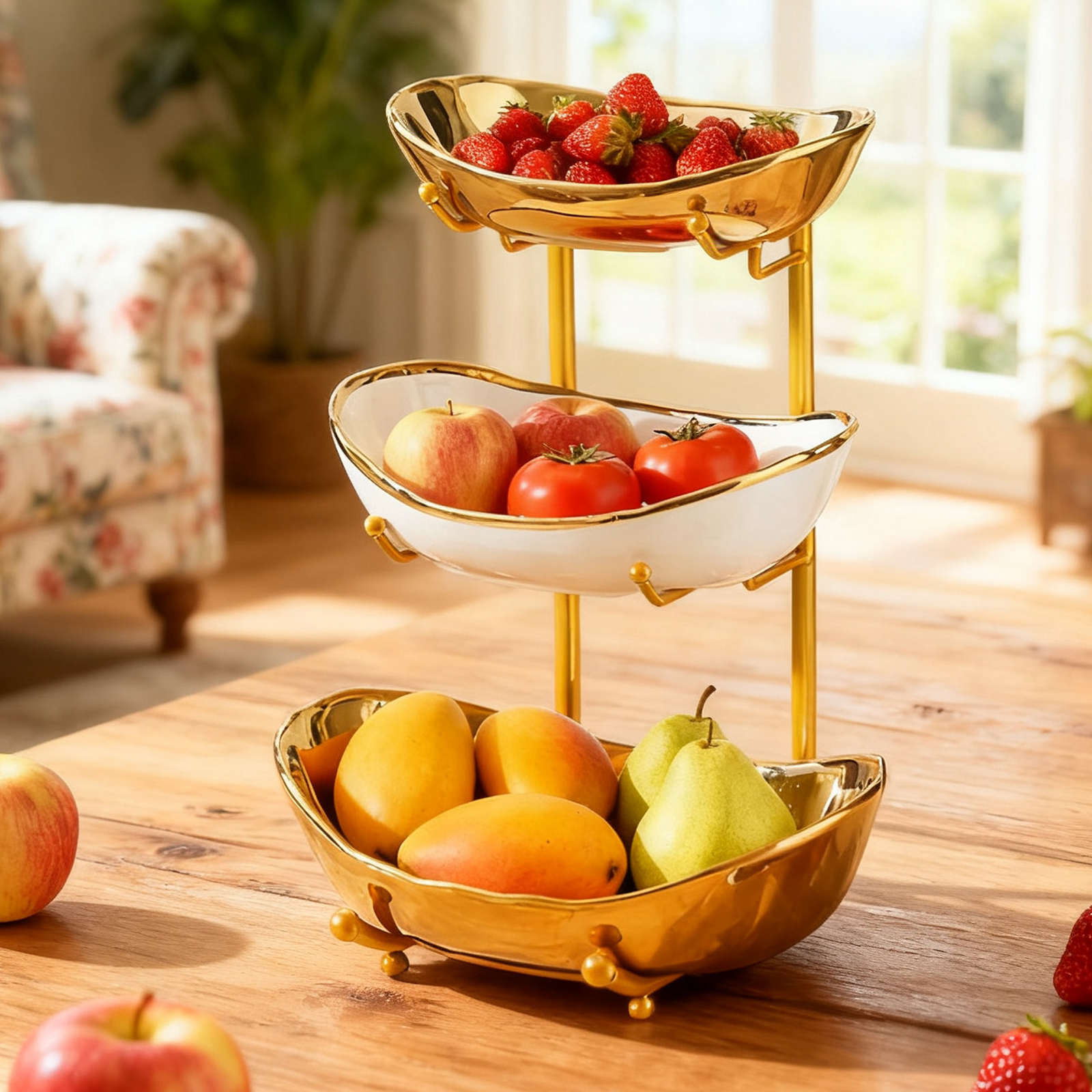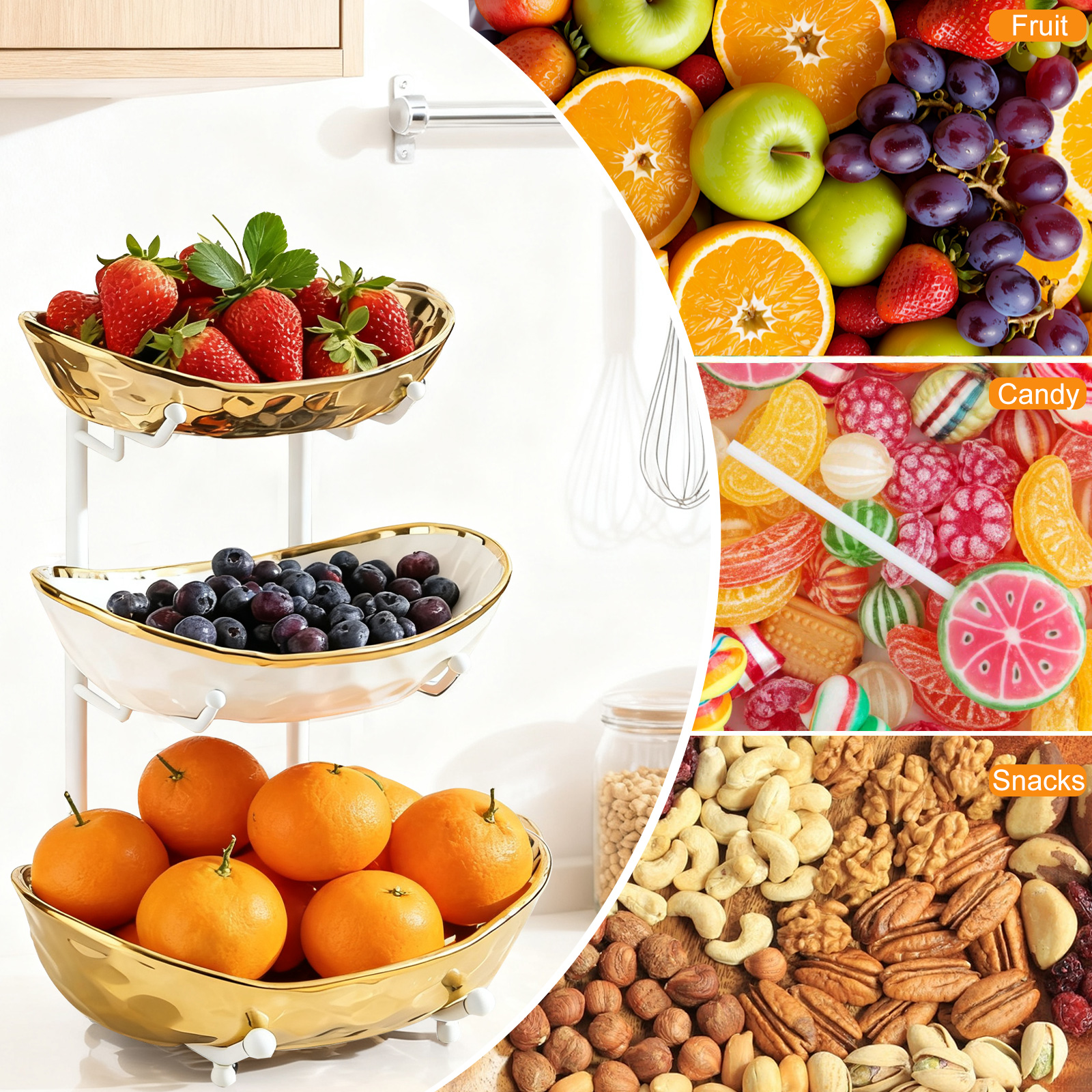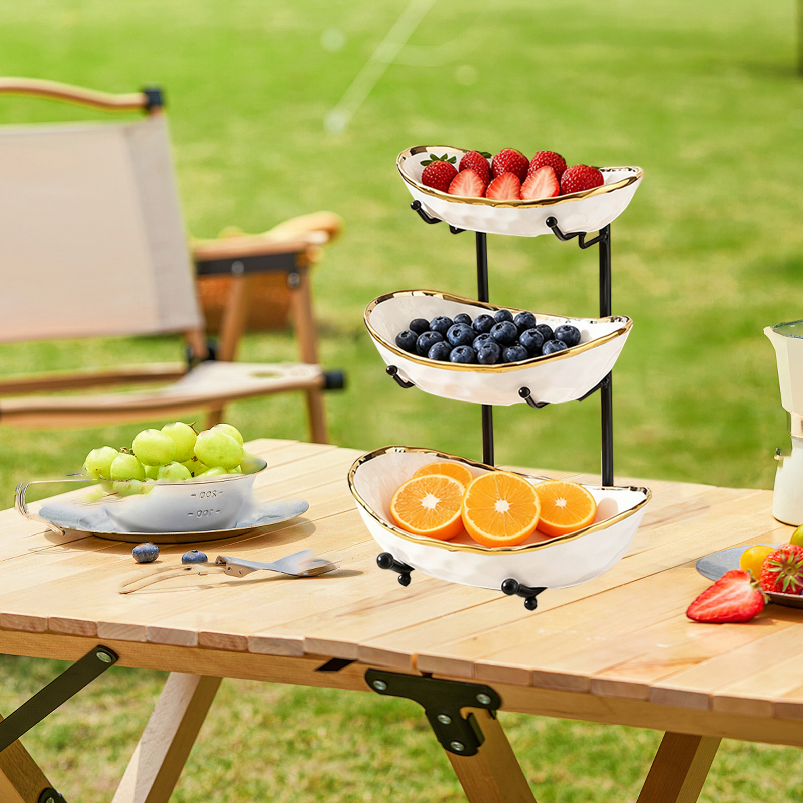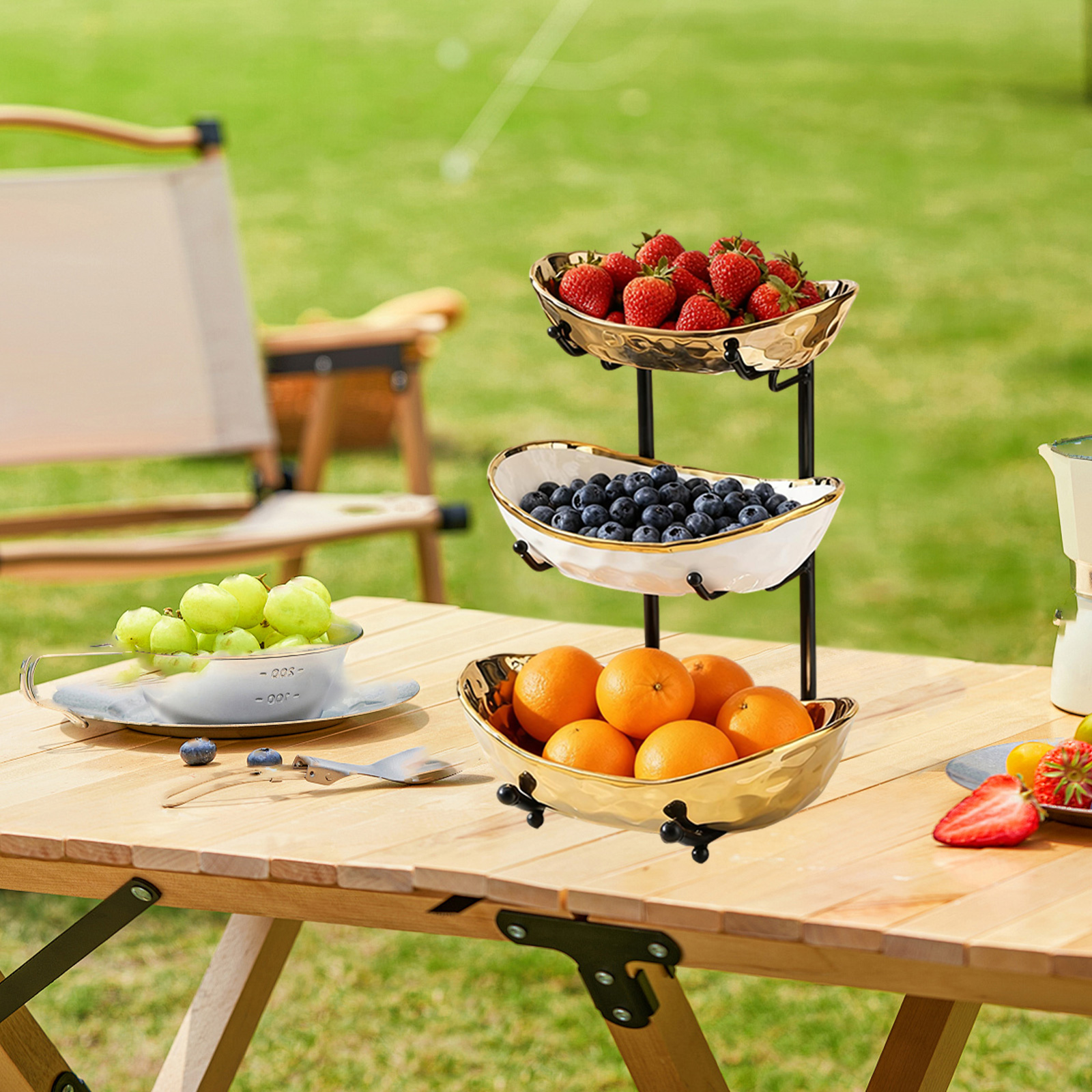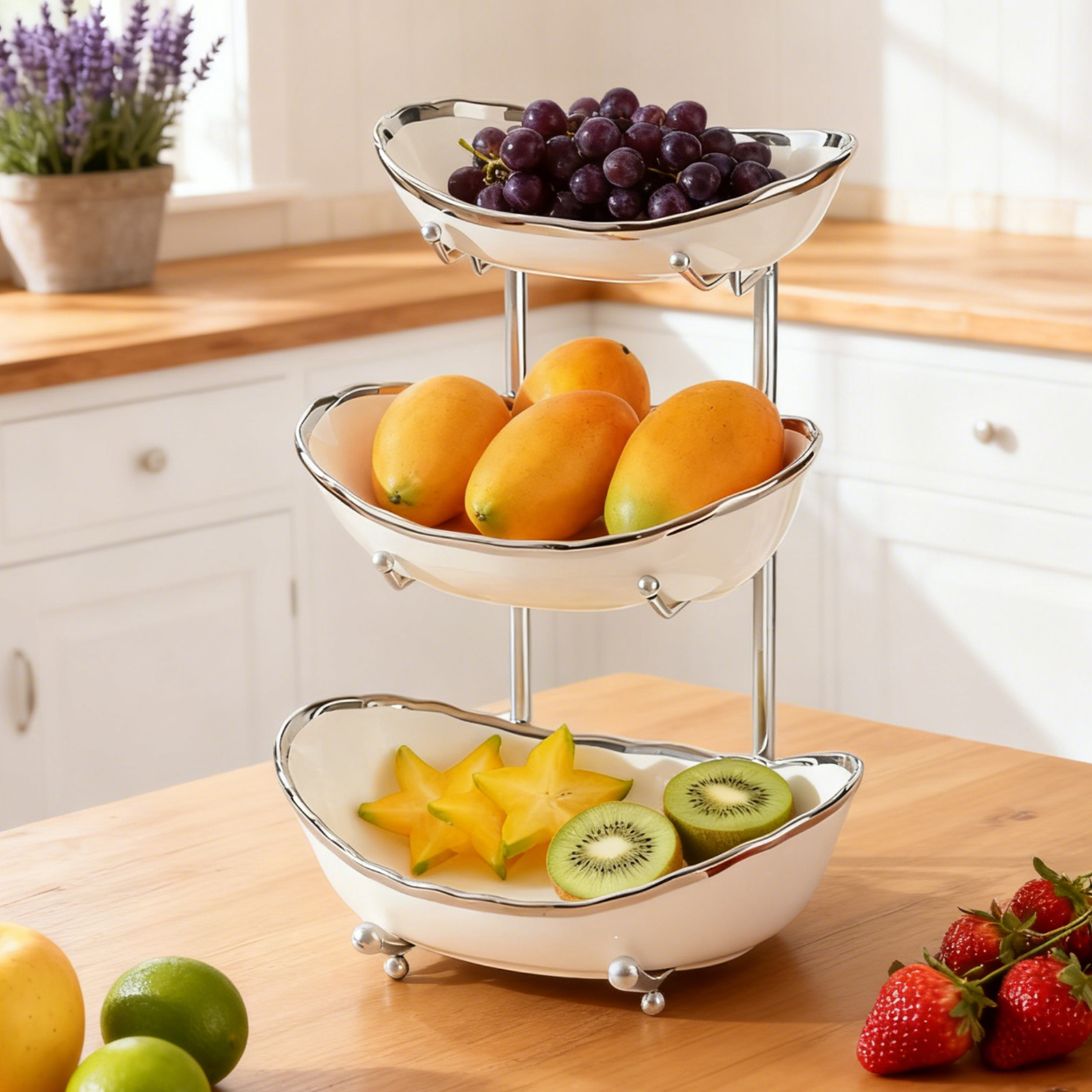 Porcelain & Iron Fruit Baskets Solid Set