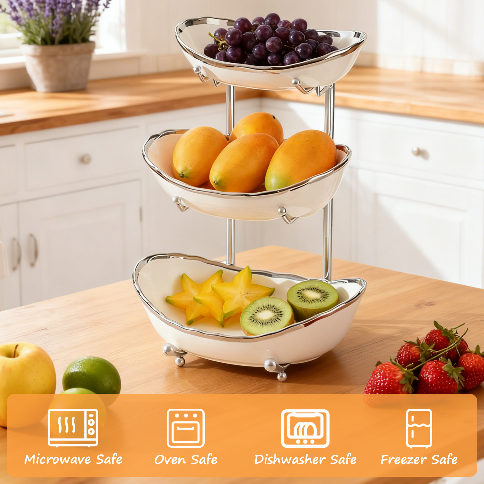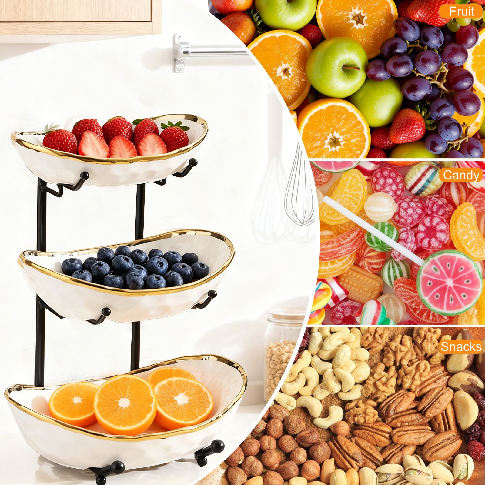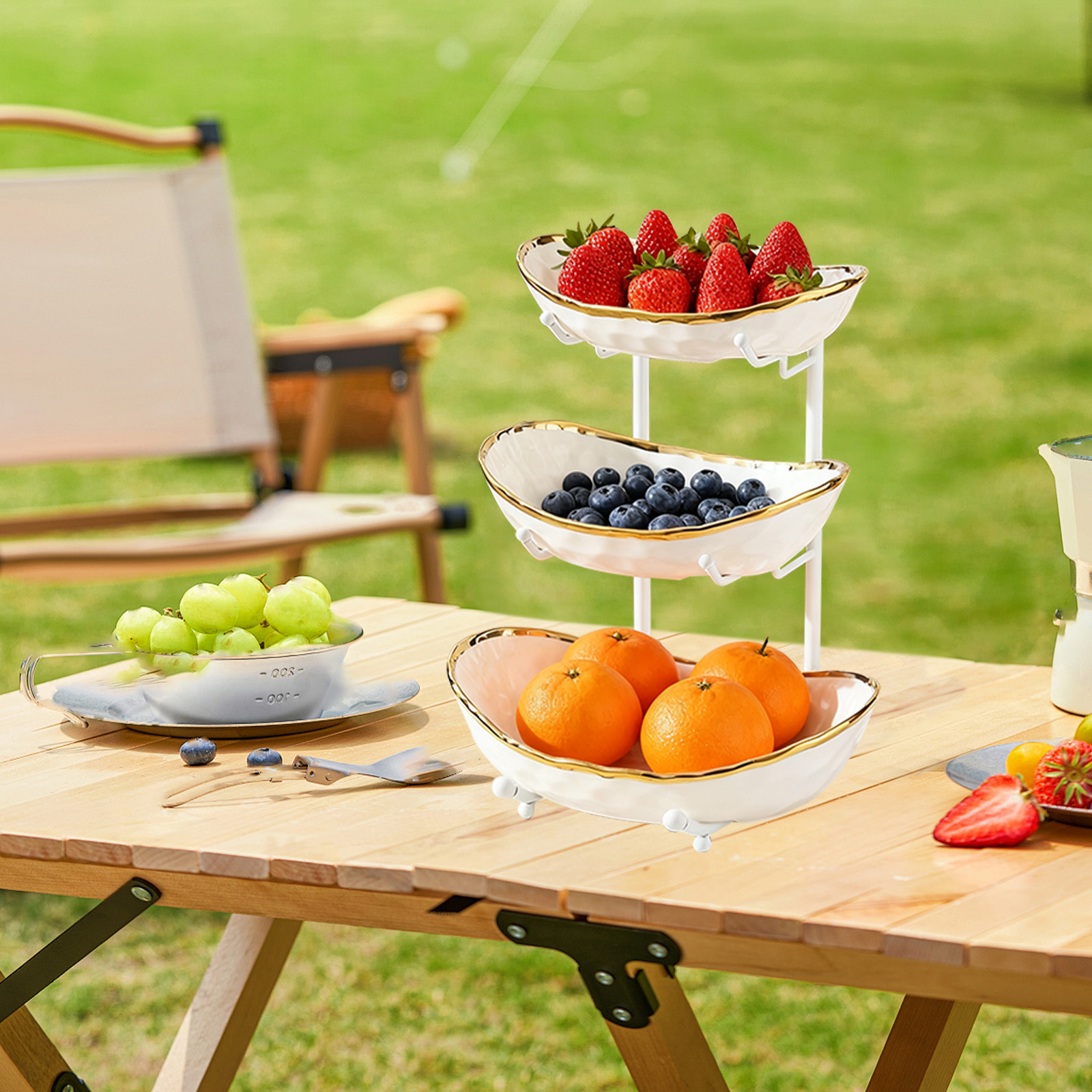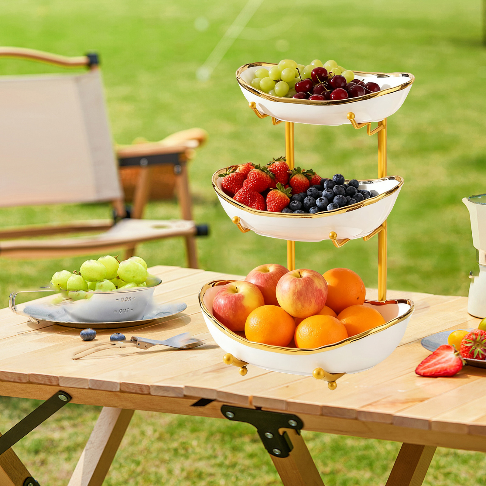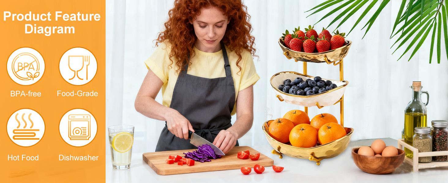Porcelain & Iron Fruit Baskets Solid Set