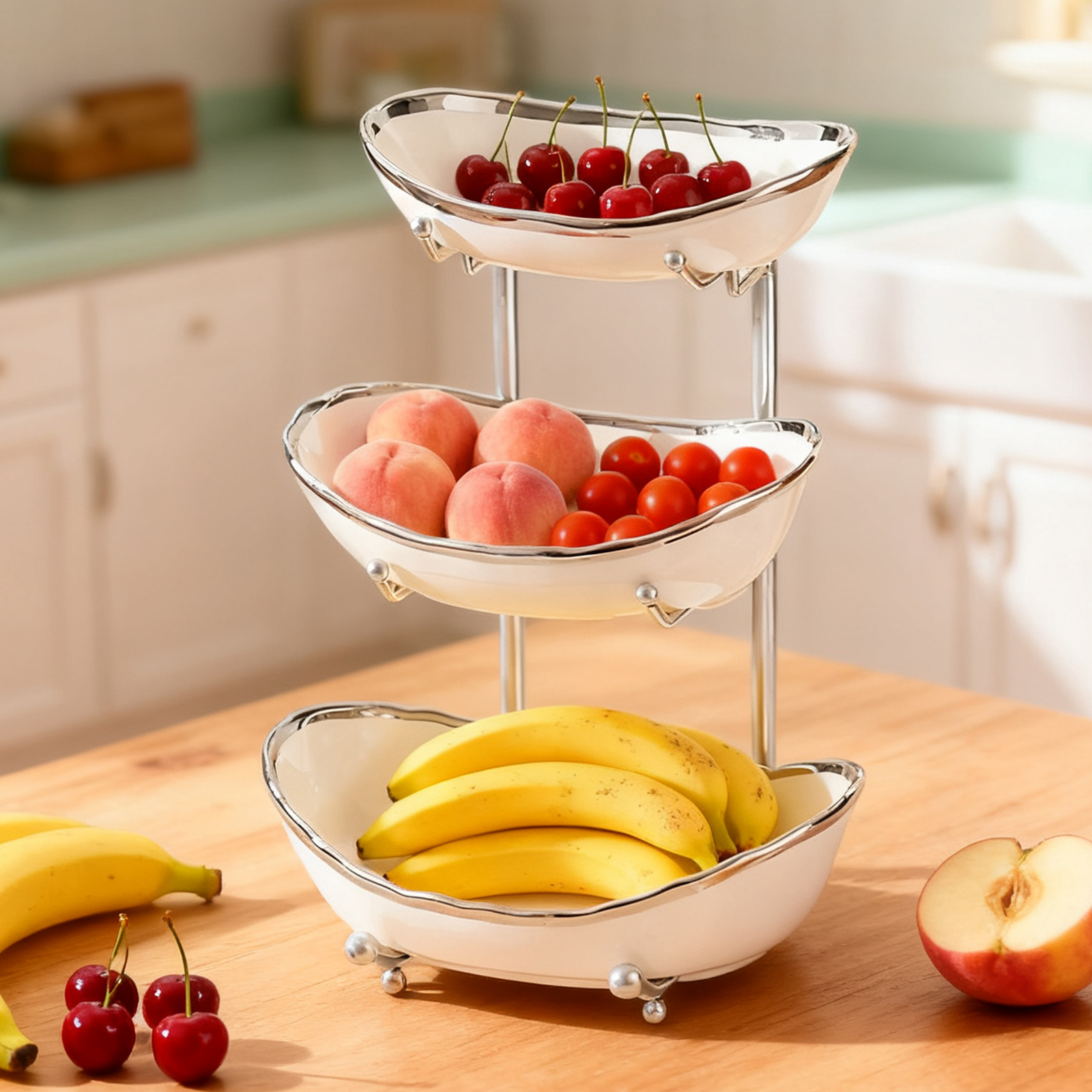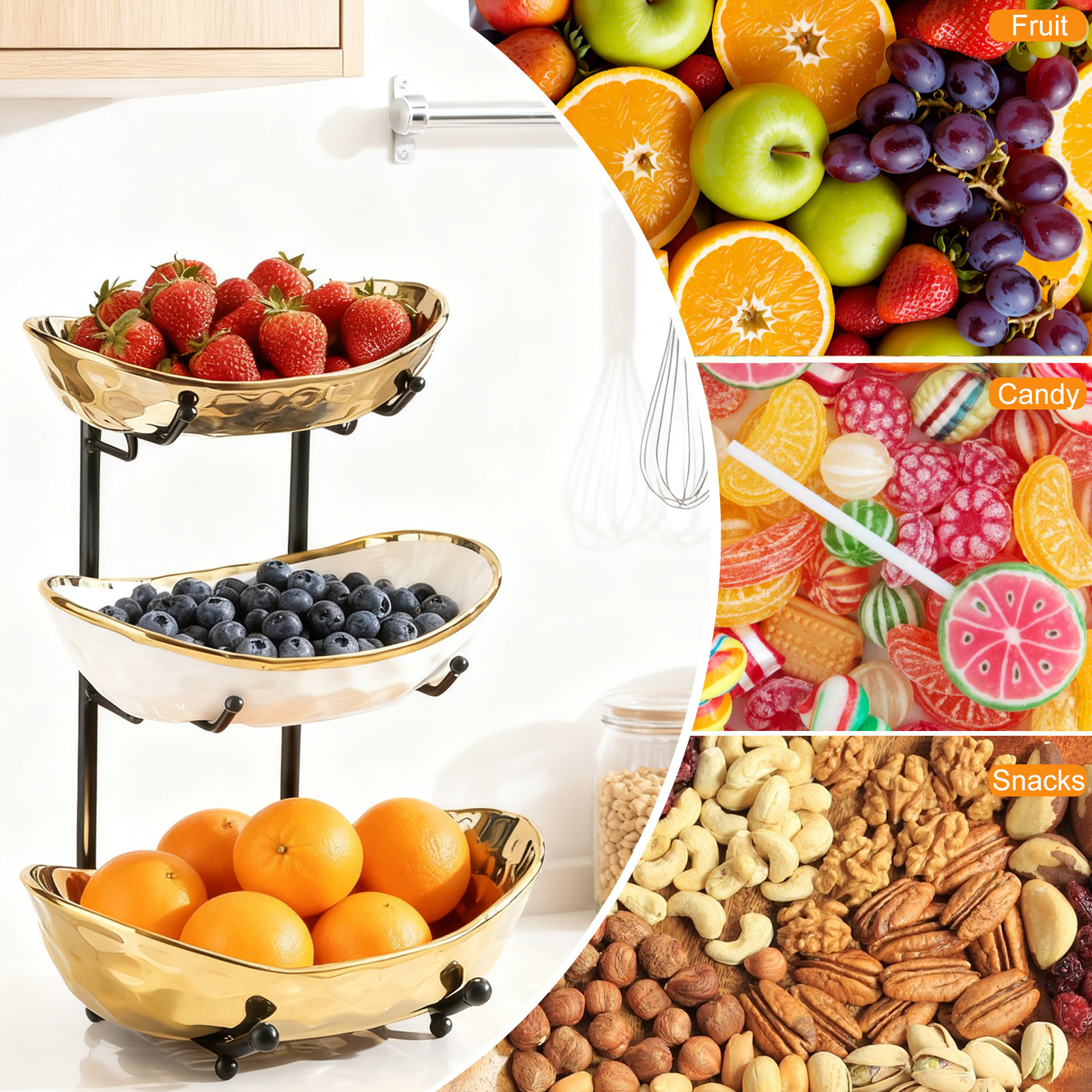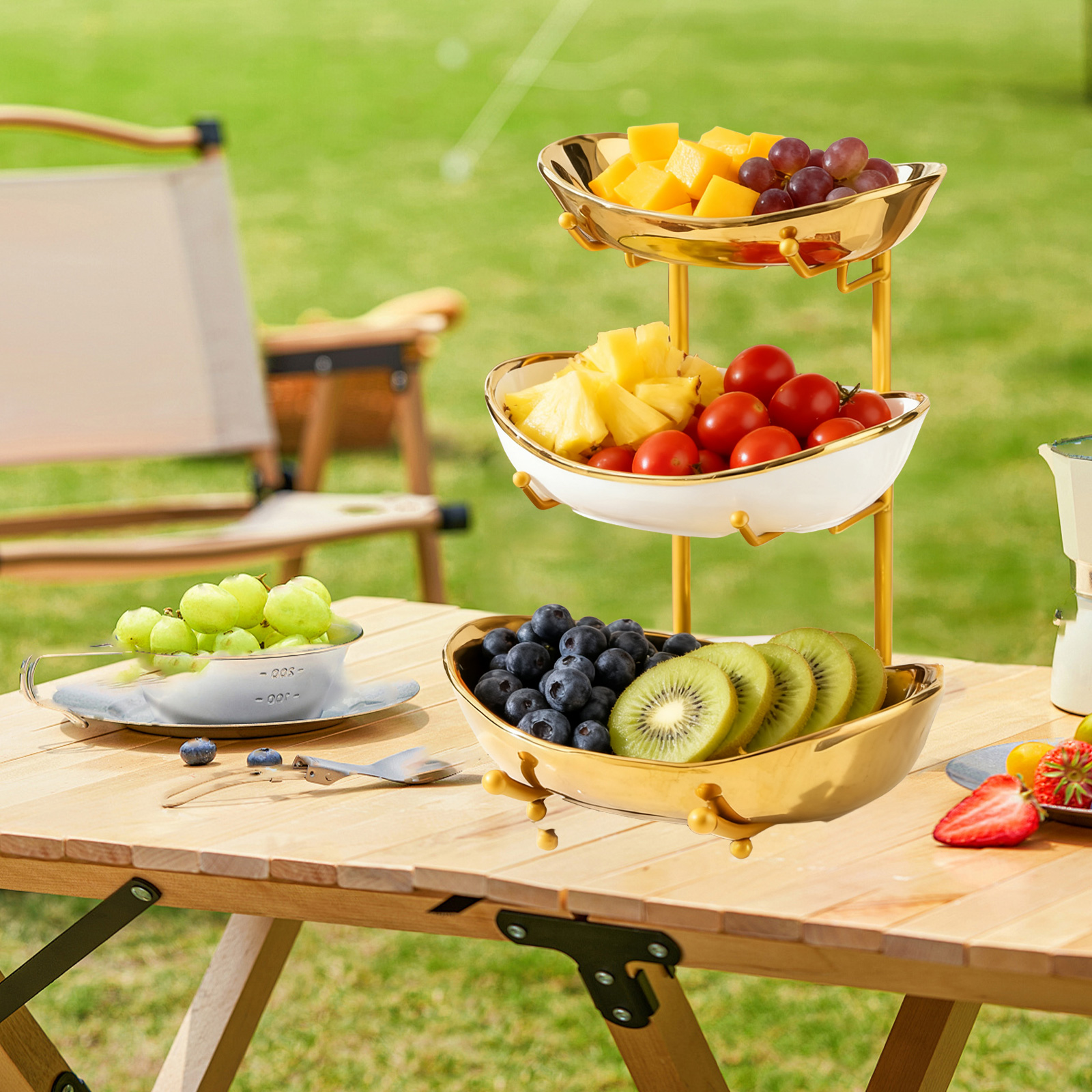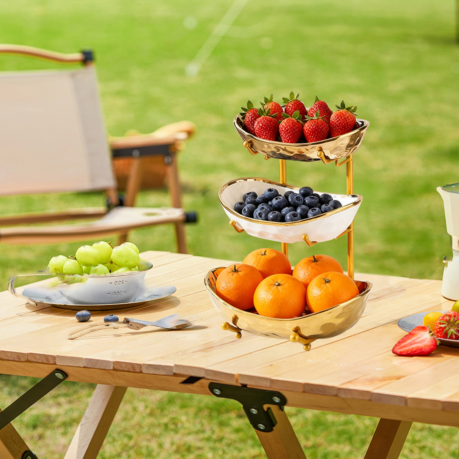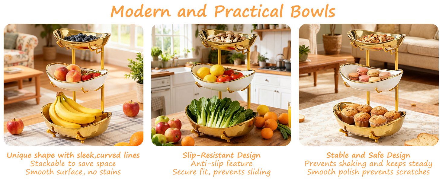 Porcelain & Iron Fruit Baskets Solid Set
