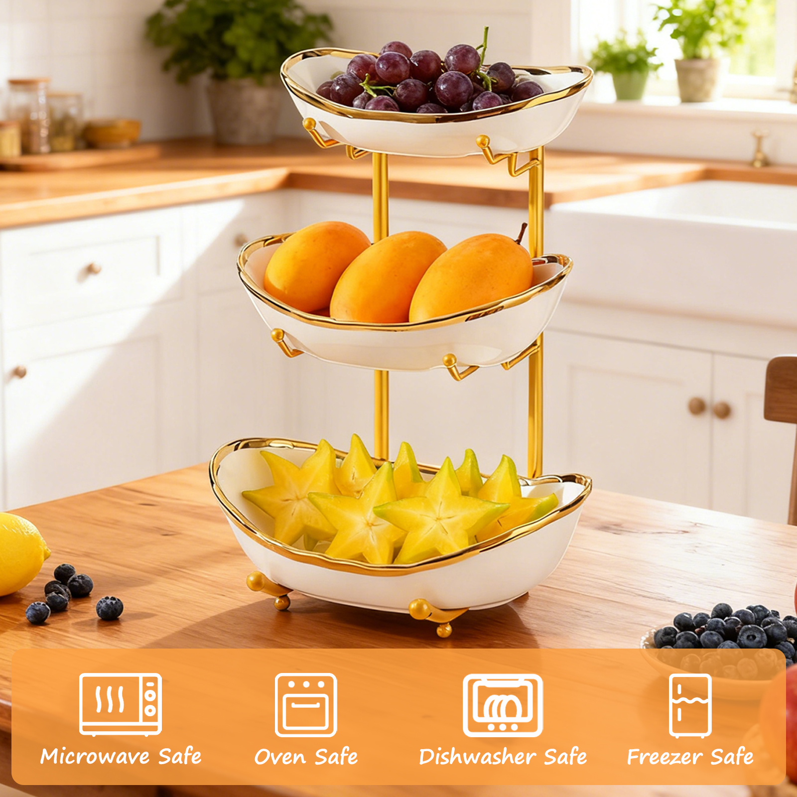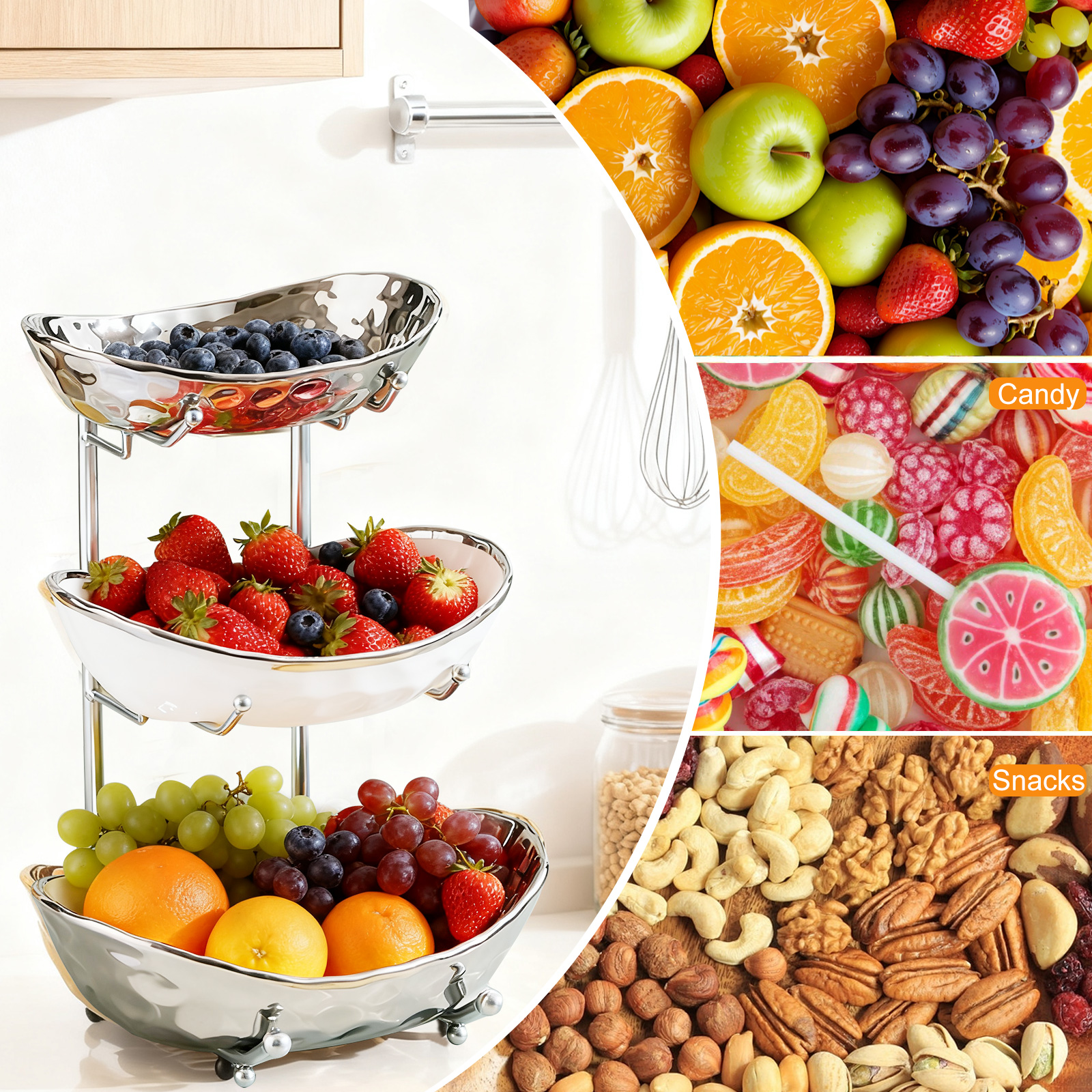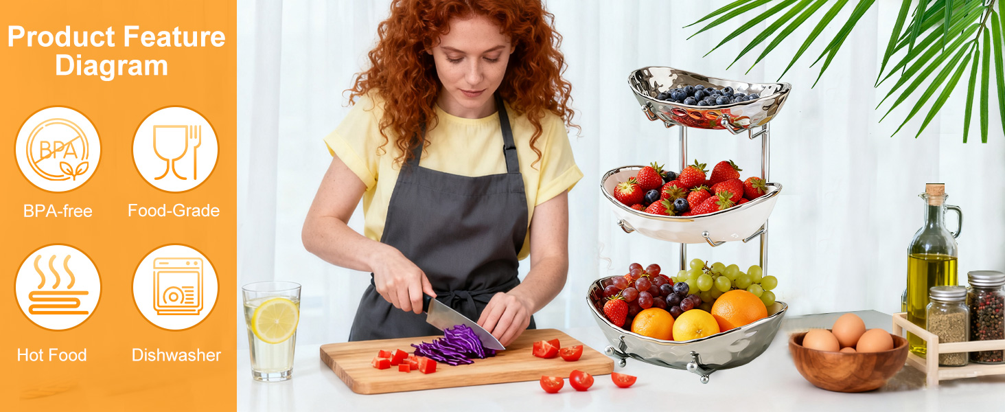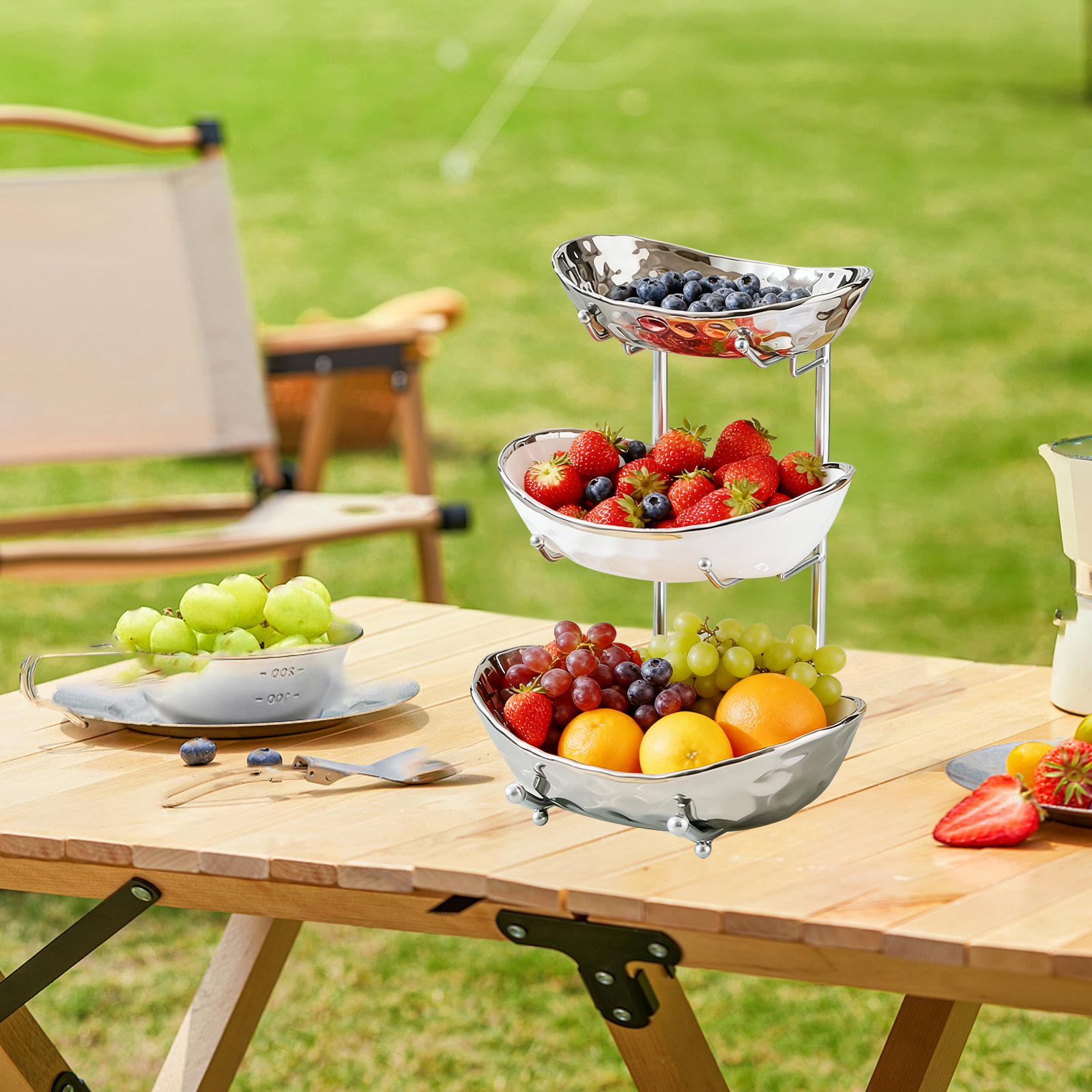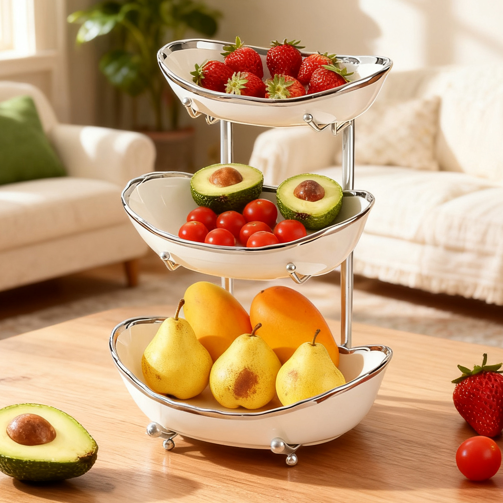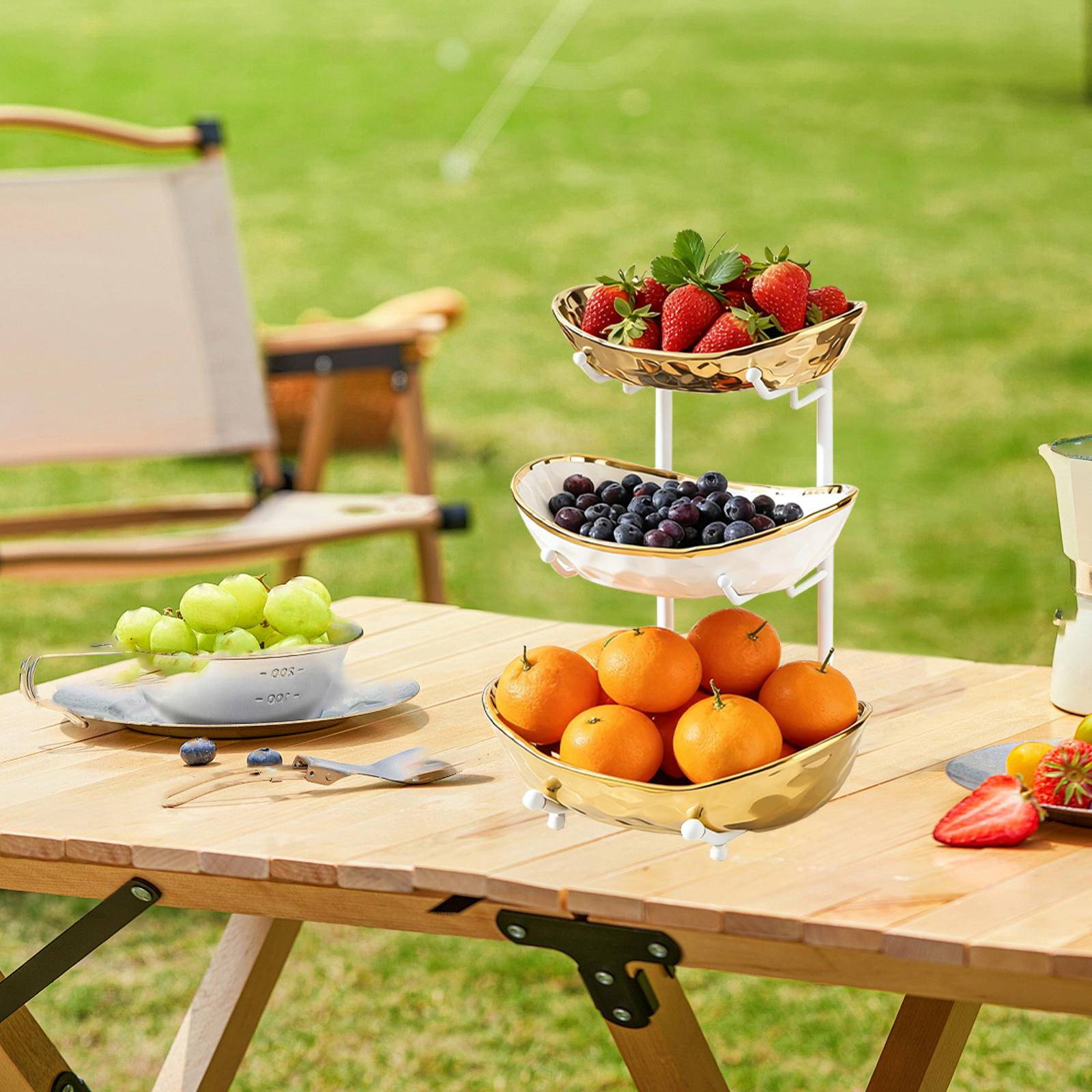 Porcelain & Iron Fruit Baskets Solid Set