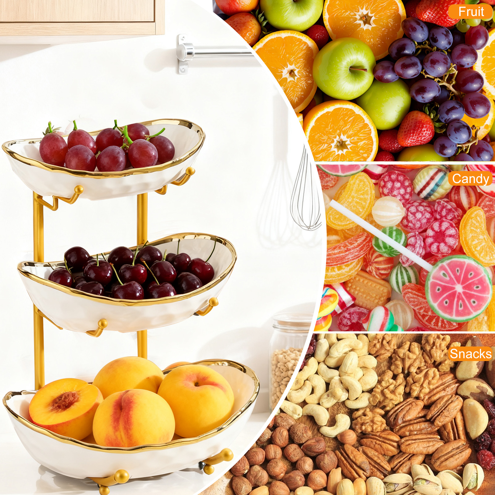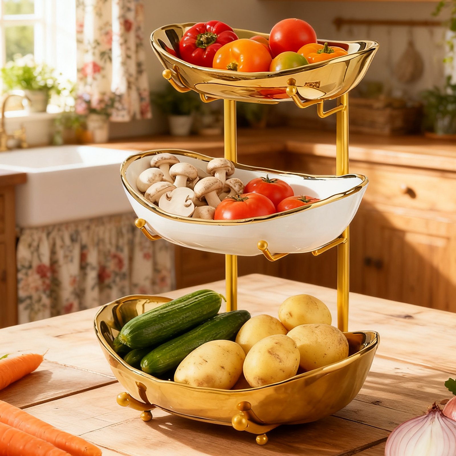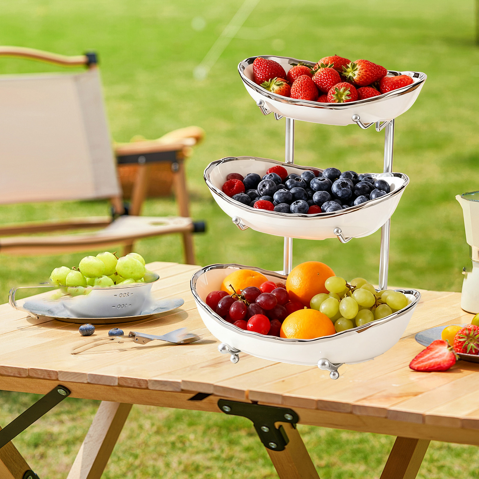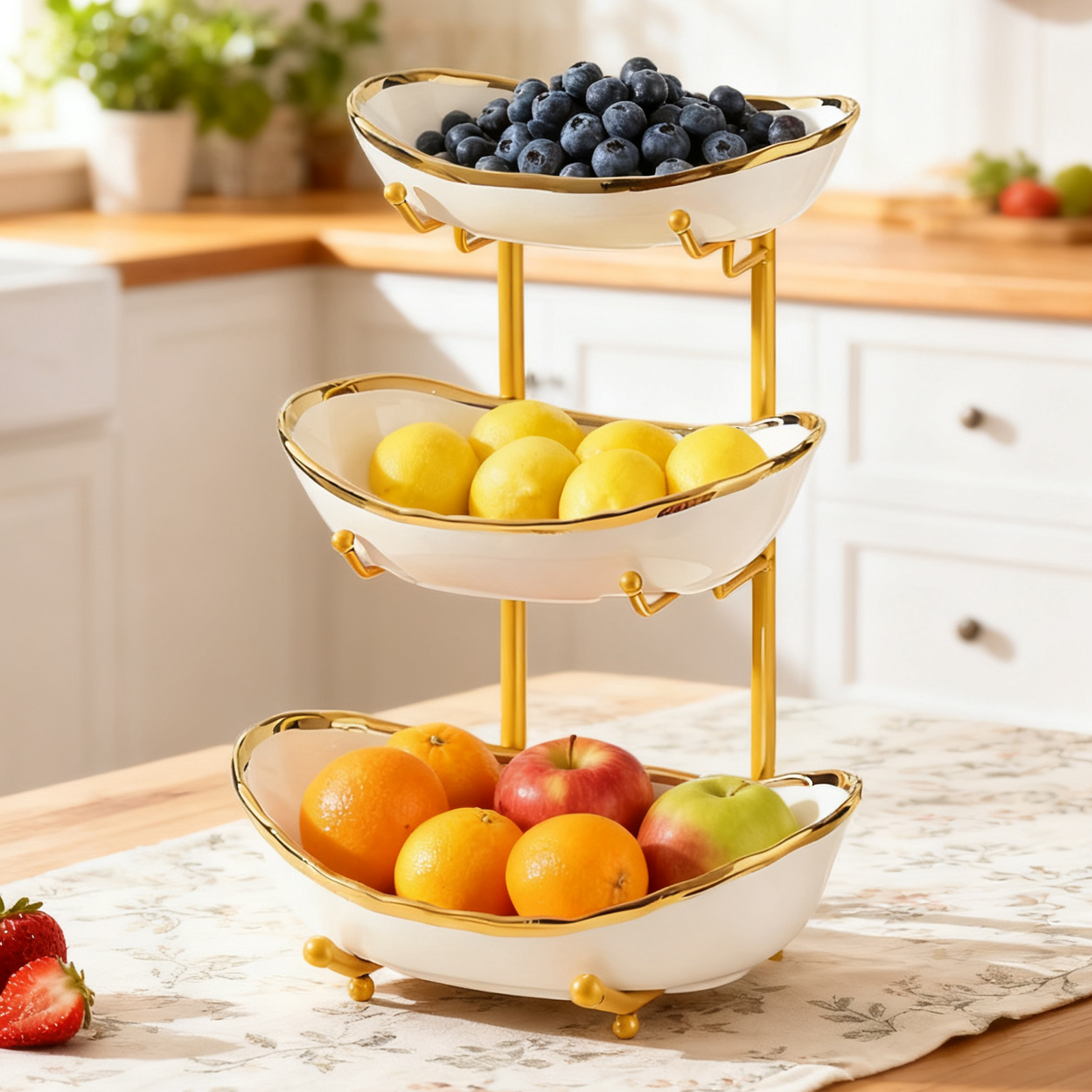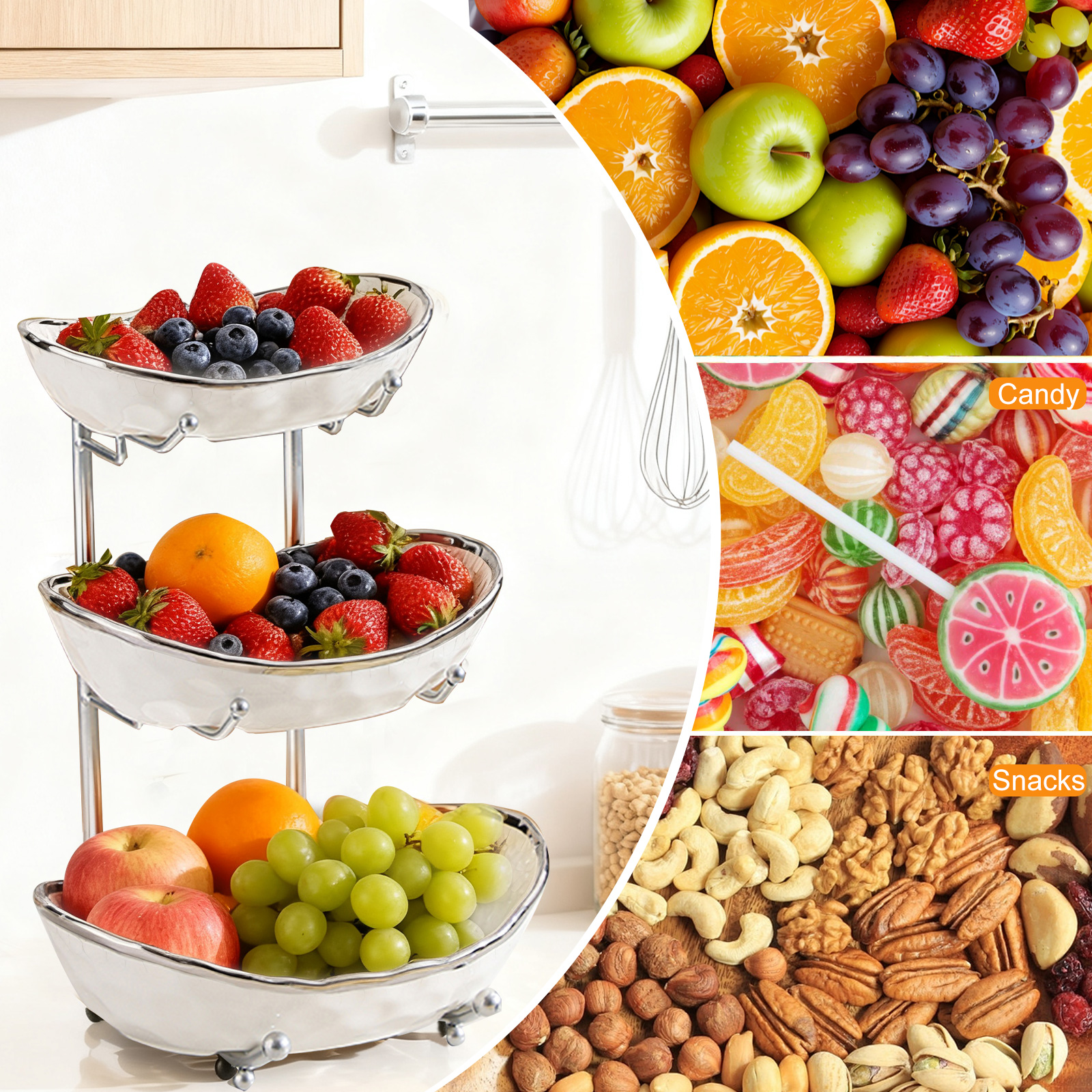 Porcelain & Iron Fruit Baskets Solid Set