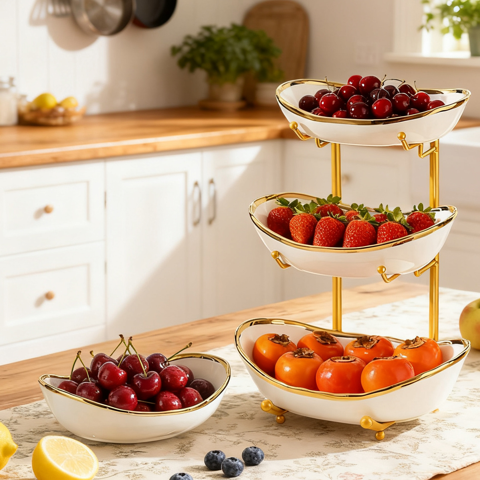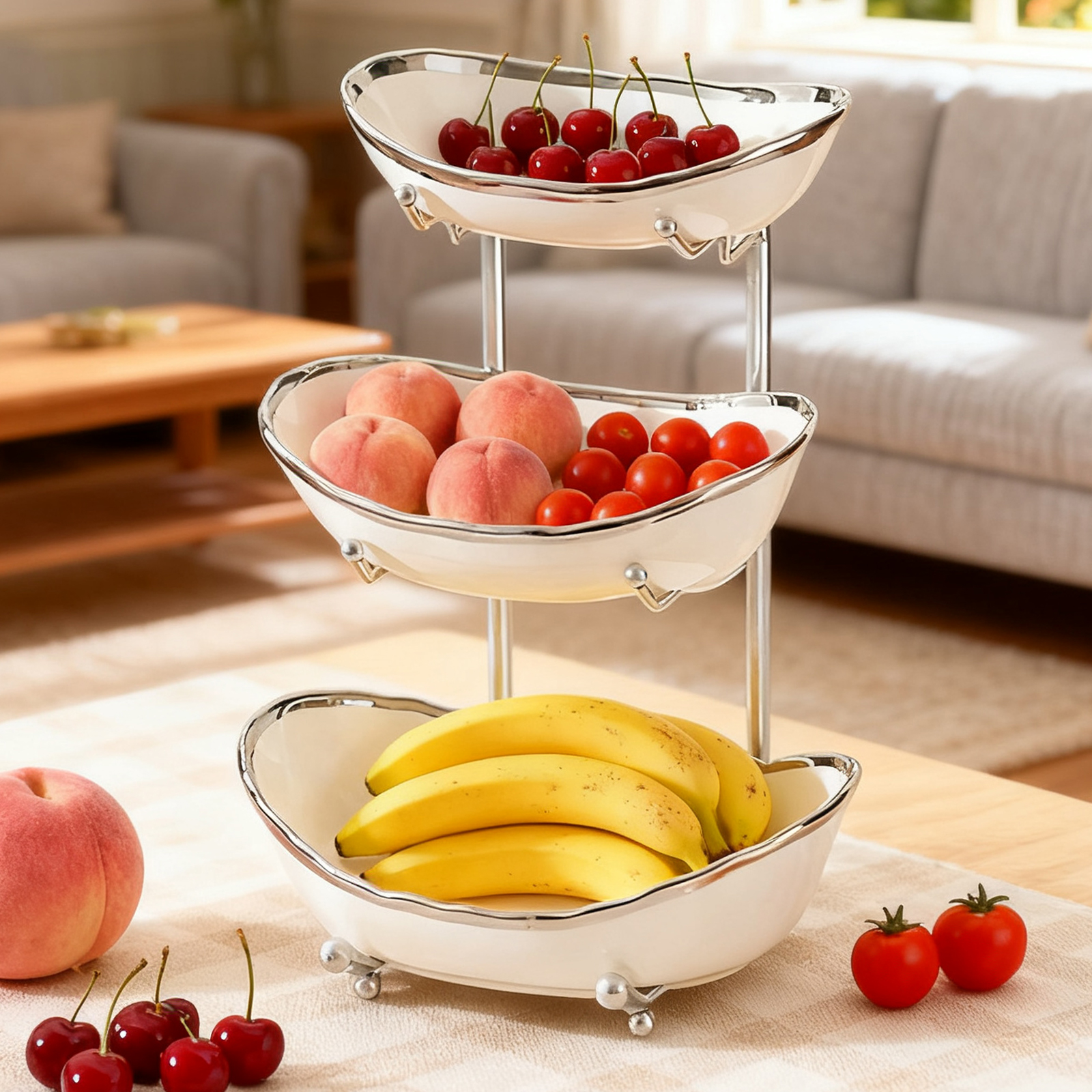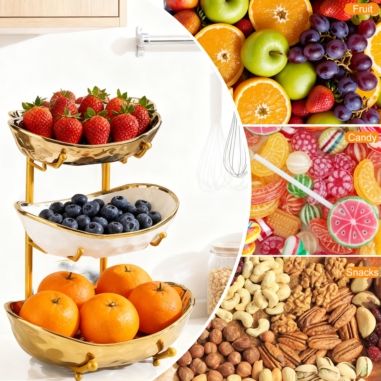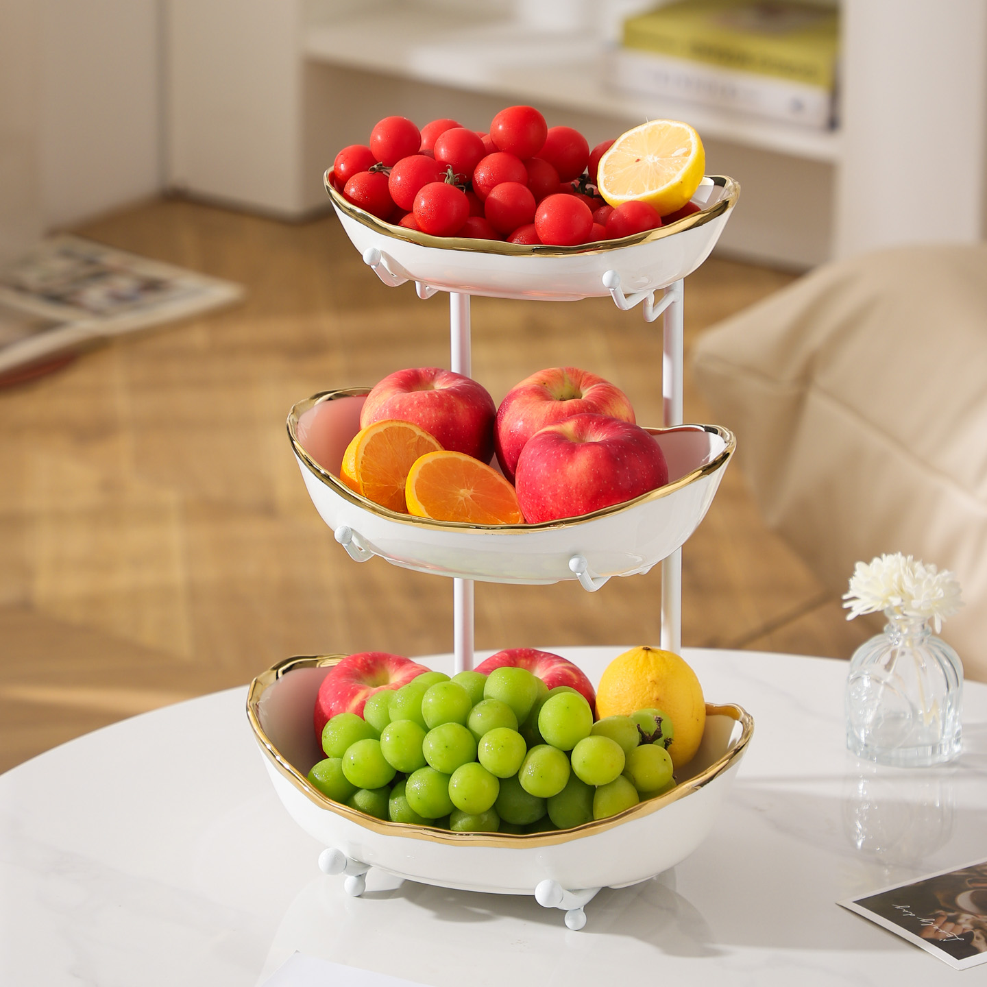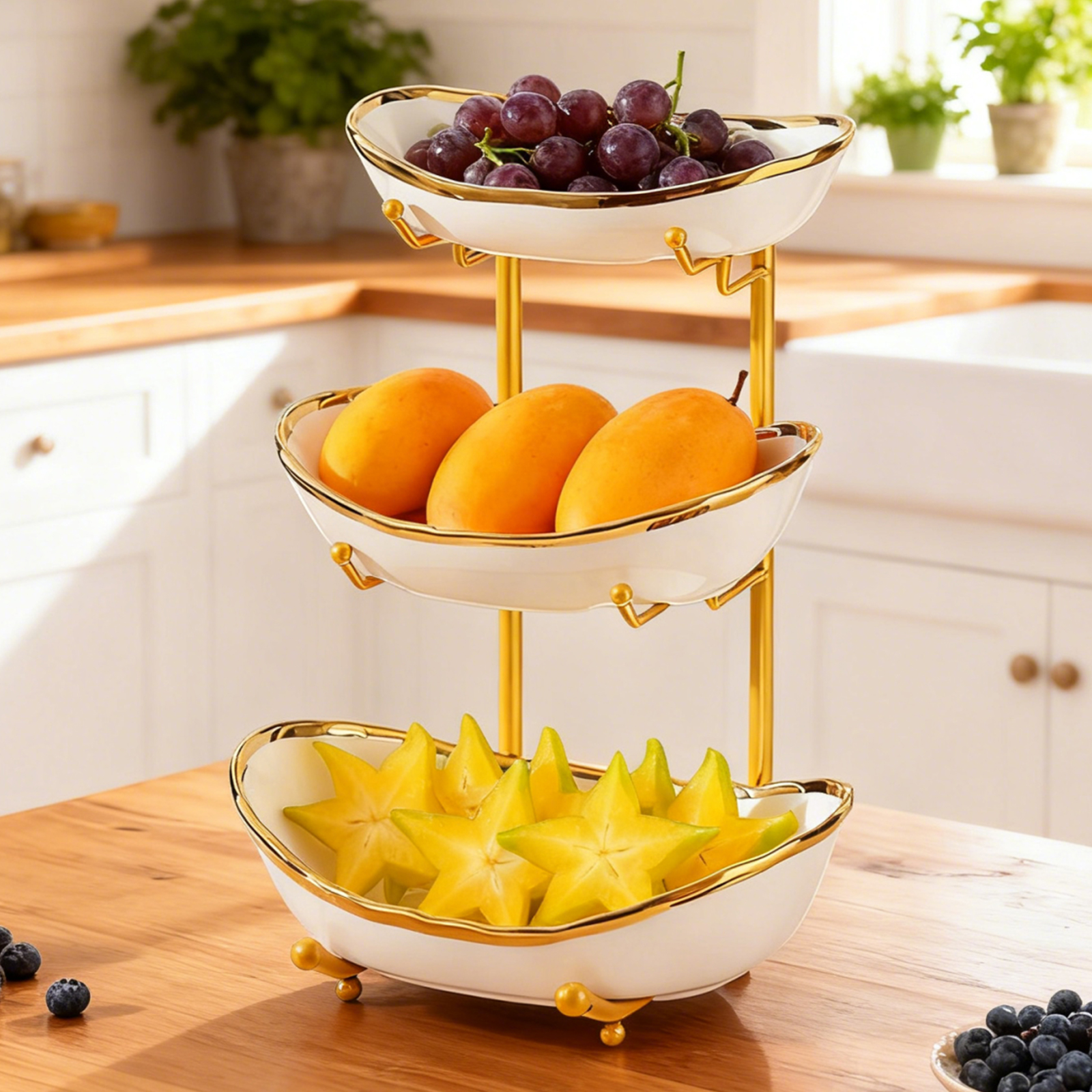Porcelain & Iron Fruit Baskets Solid Set