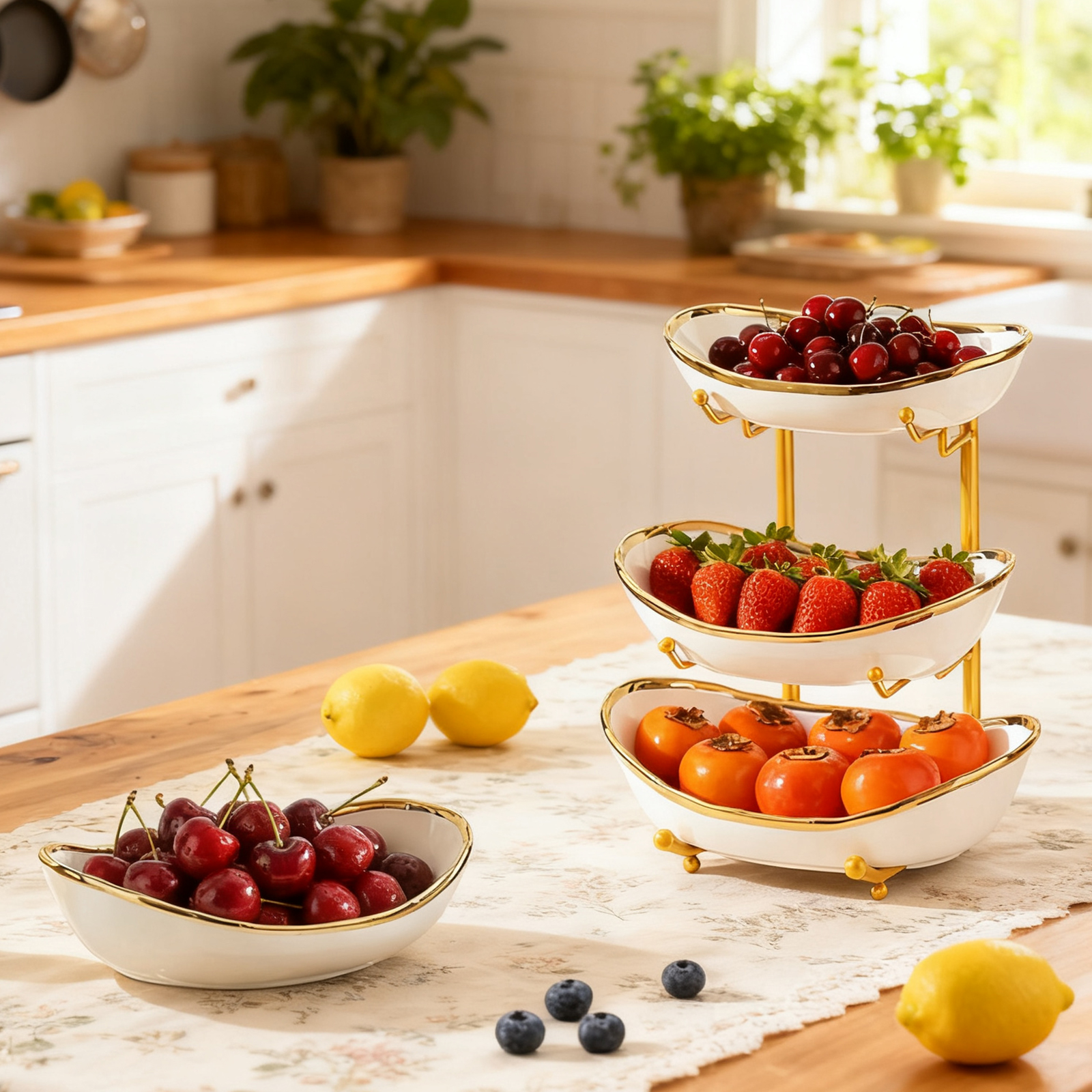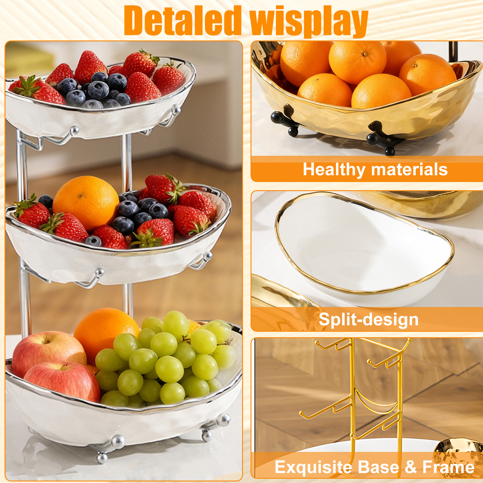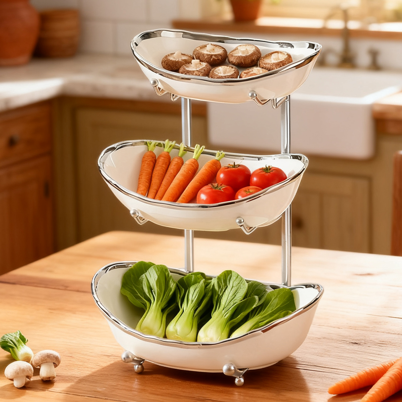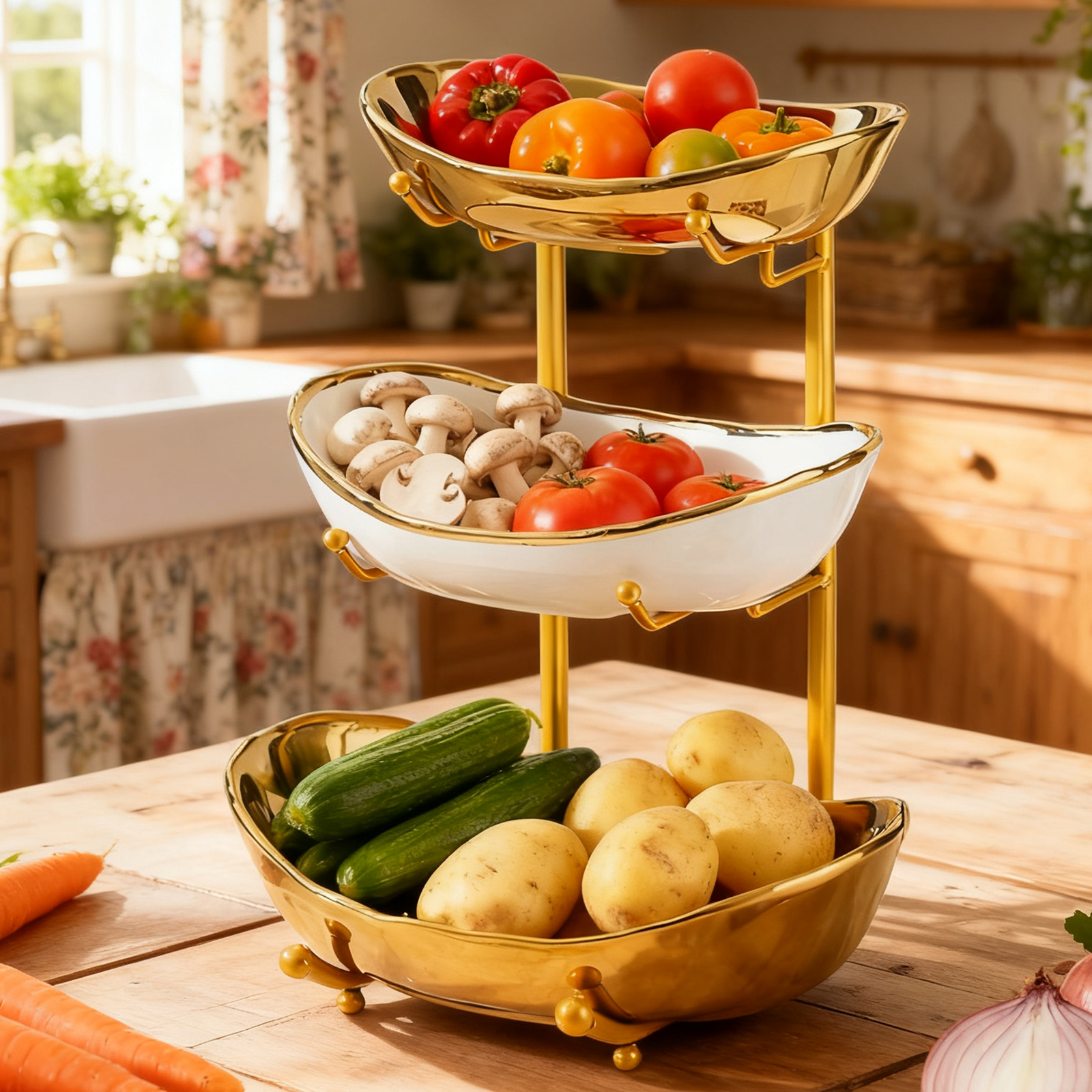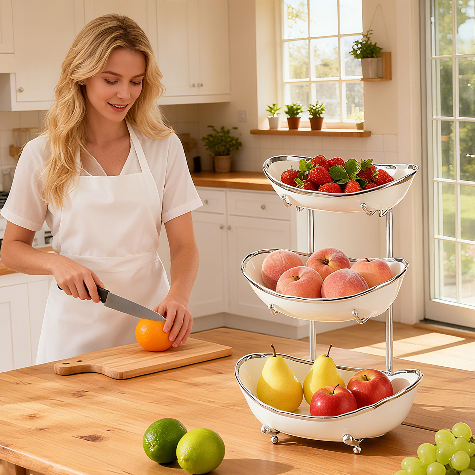 Porcelain & Iron Fruit Baskets Solid Set