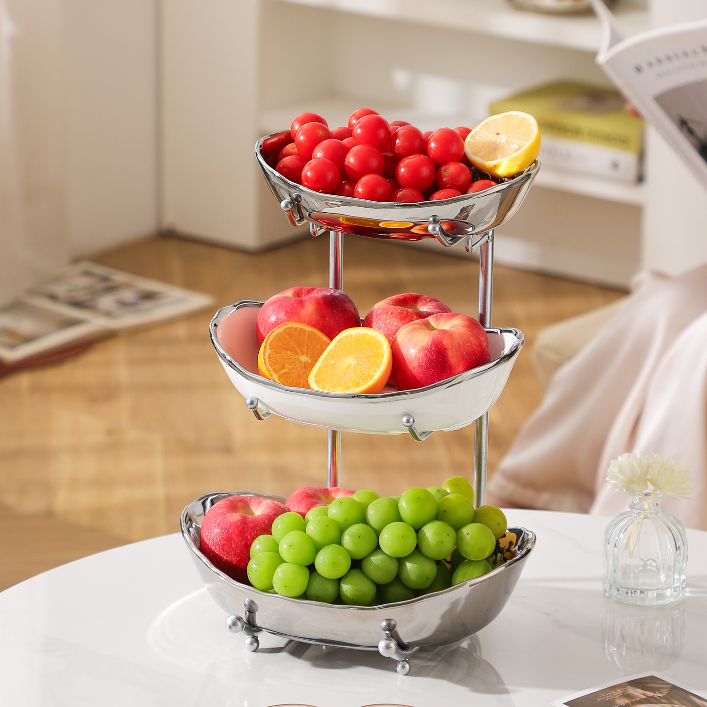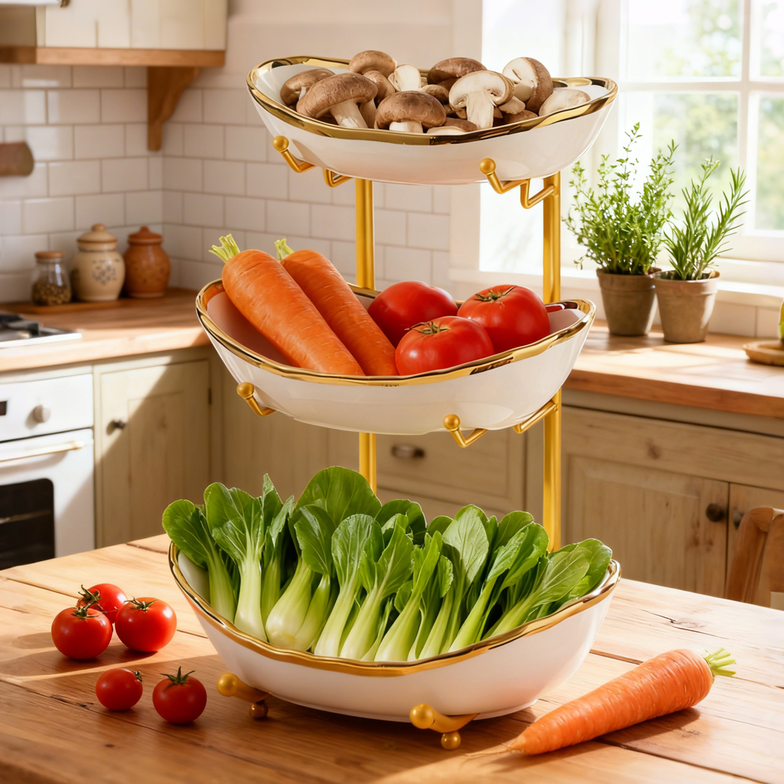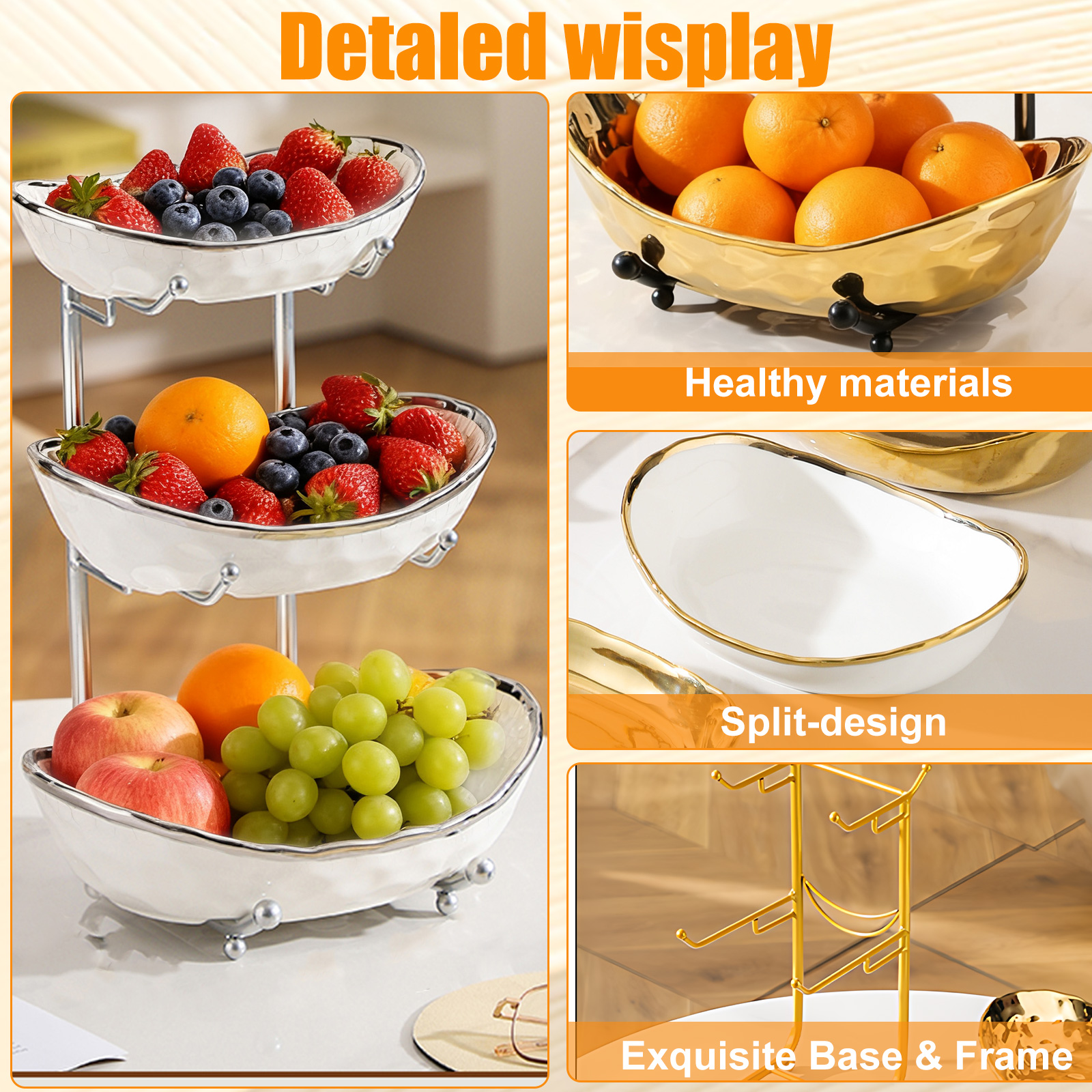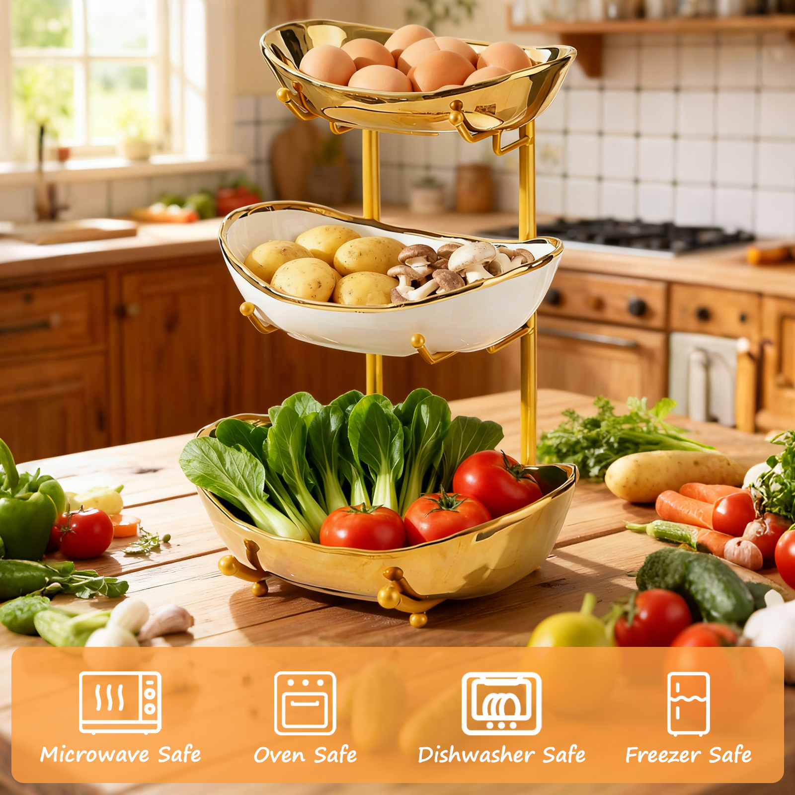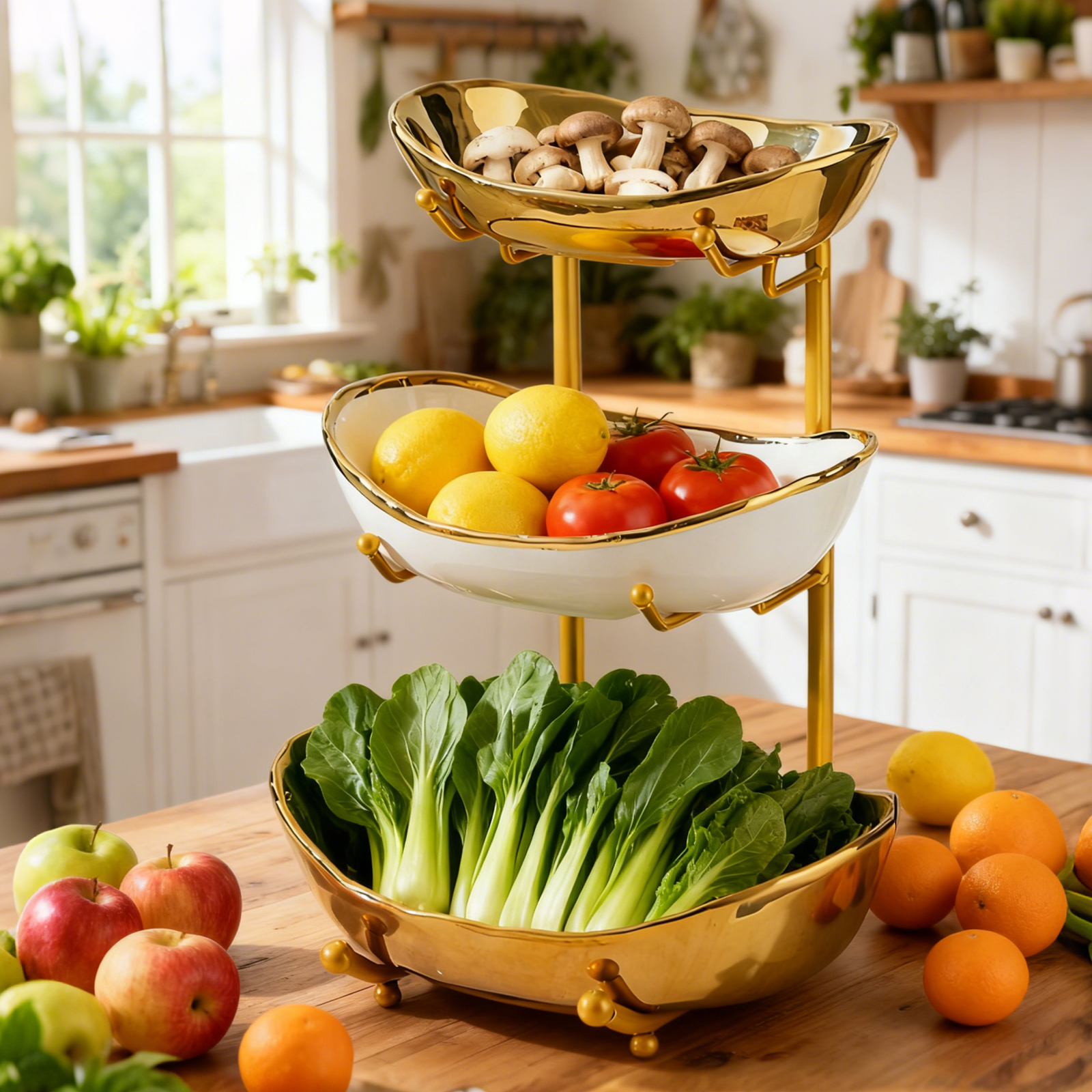 Porcelain & Iron Fruit Baskets Solid Set