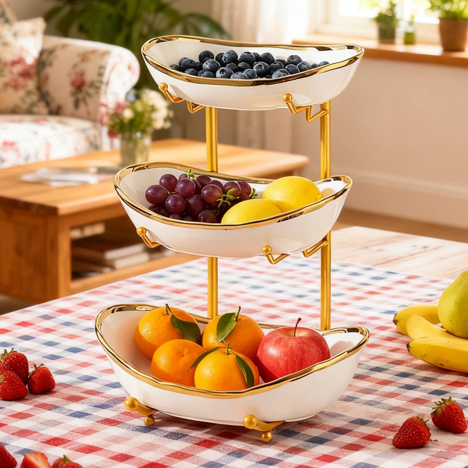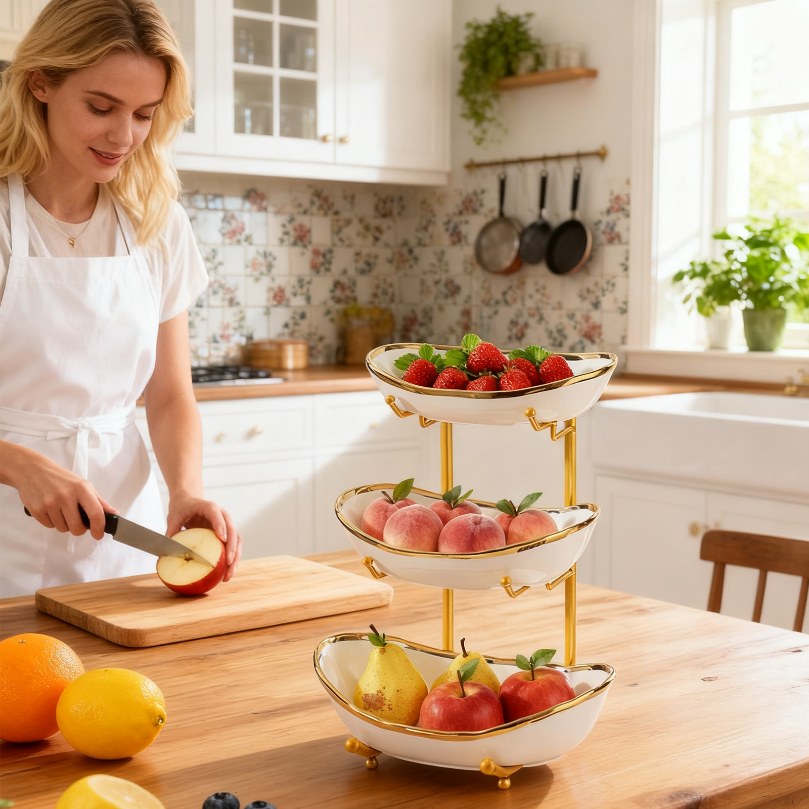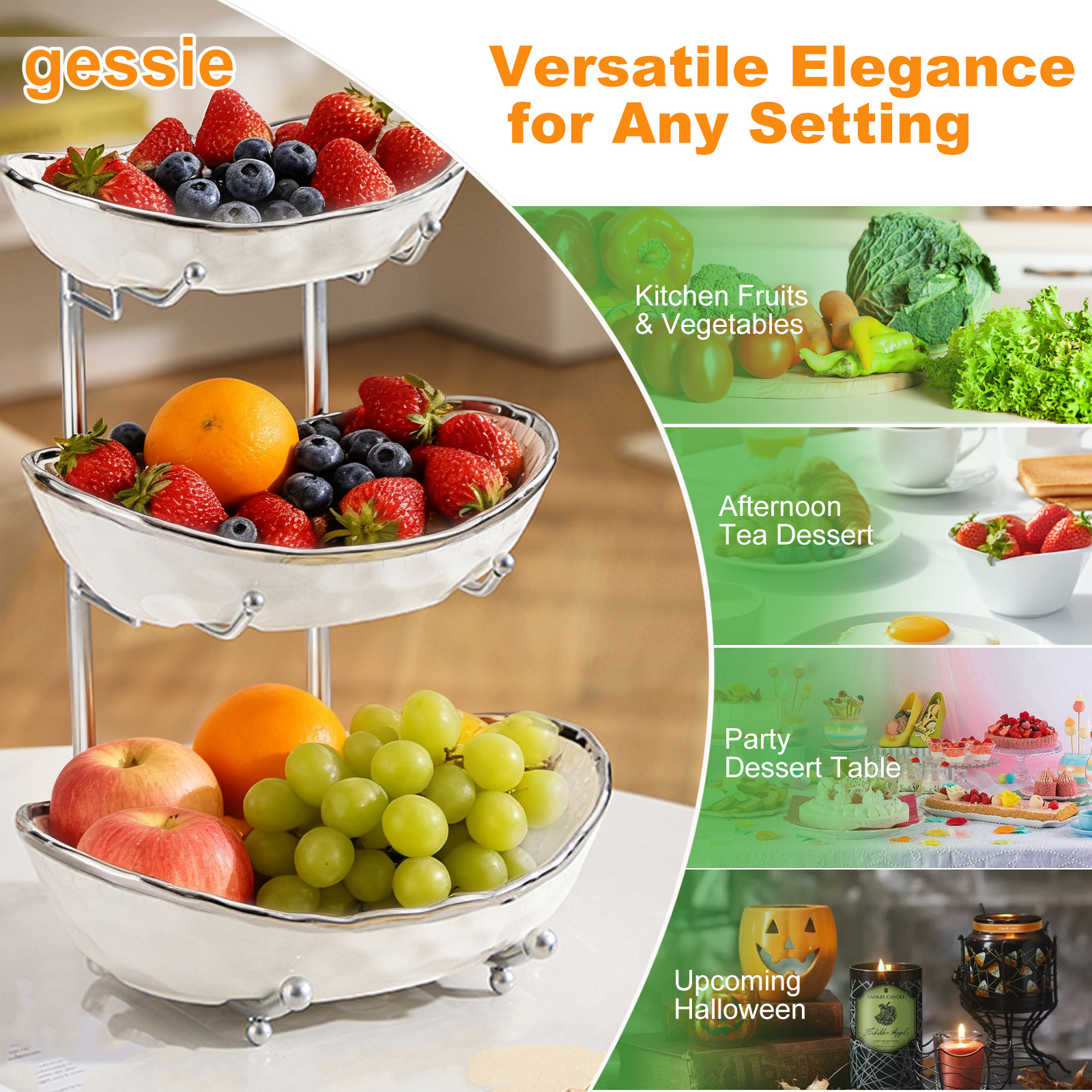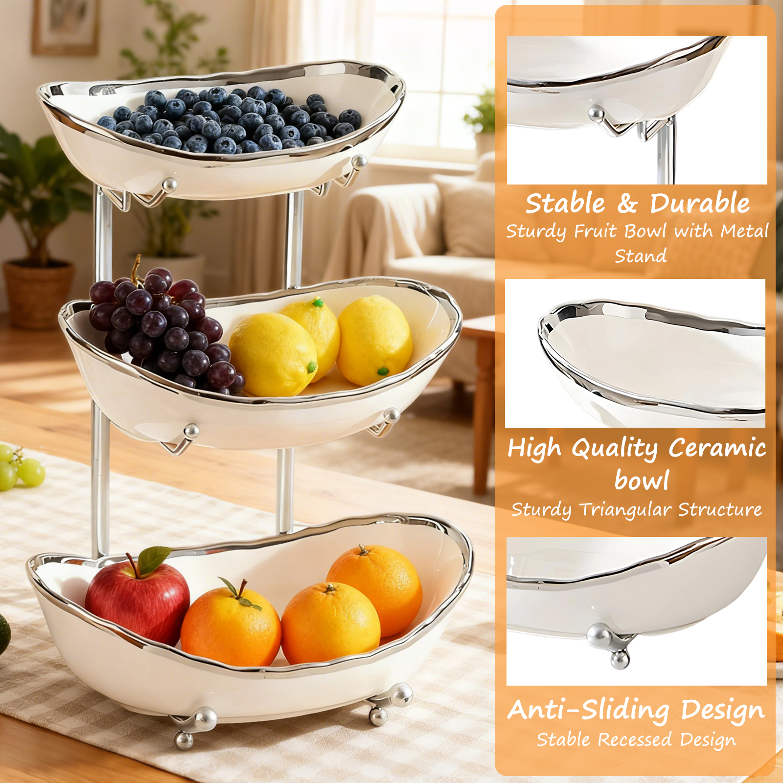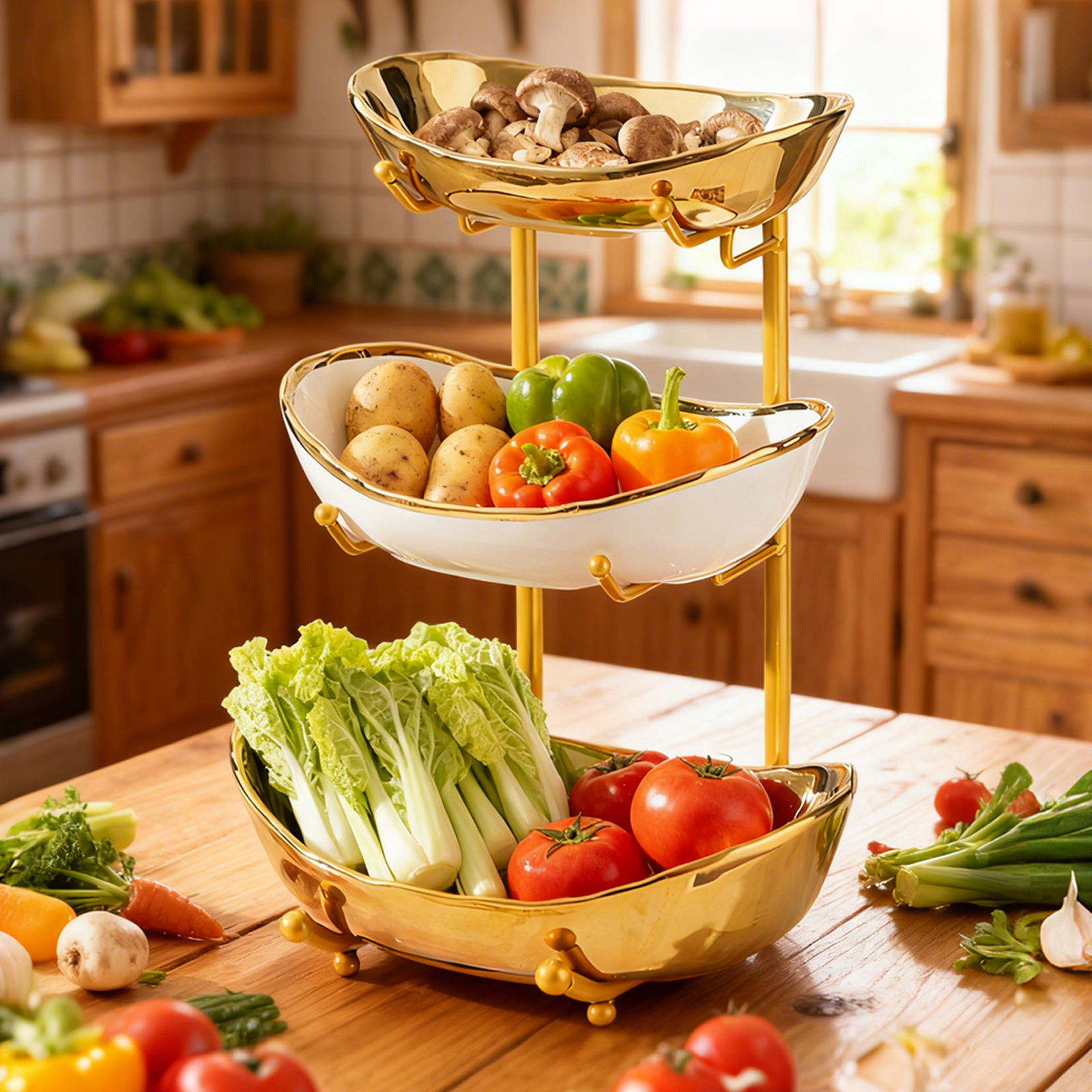 Porcelain & Iron Fruit Baskets Solid Set
