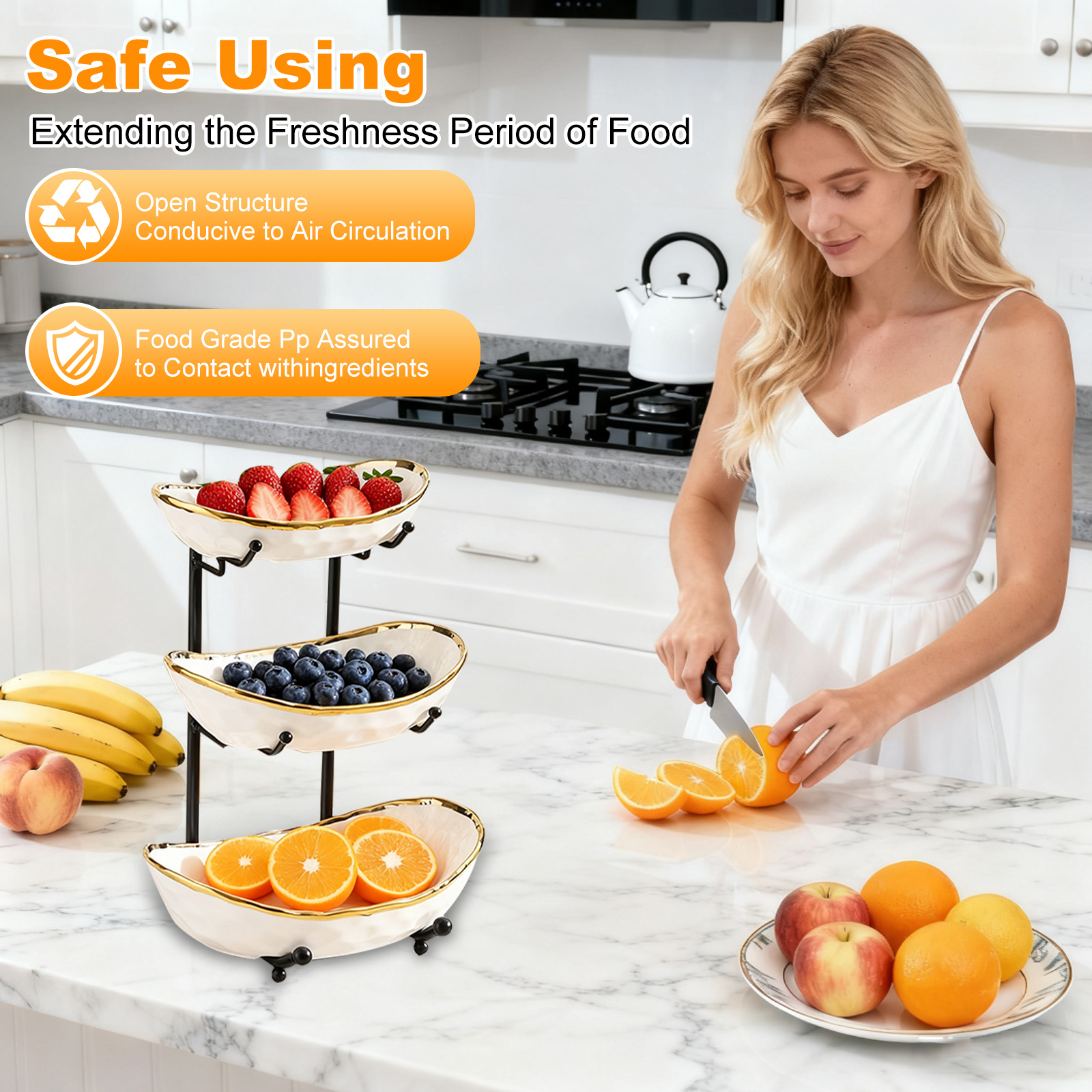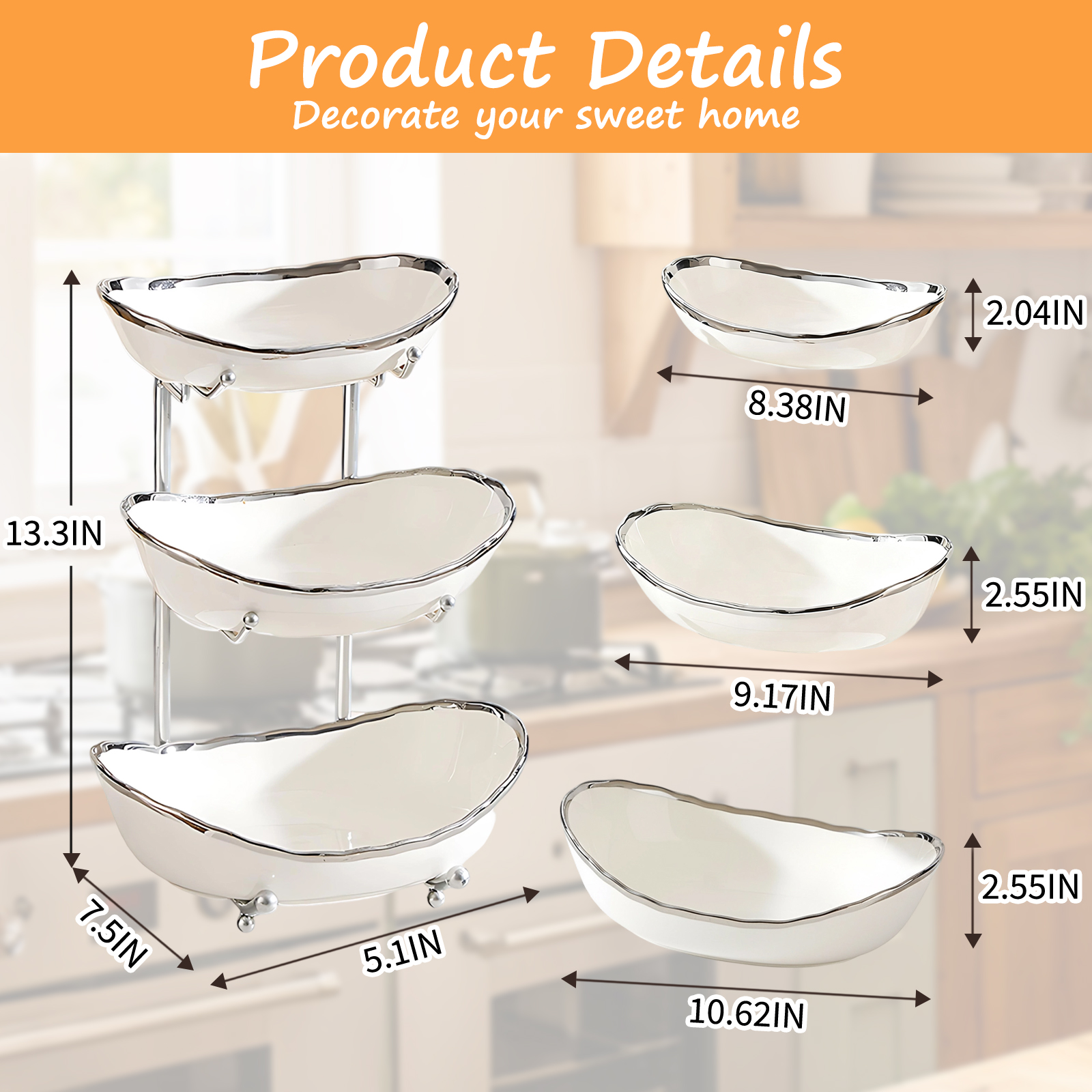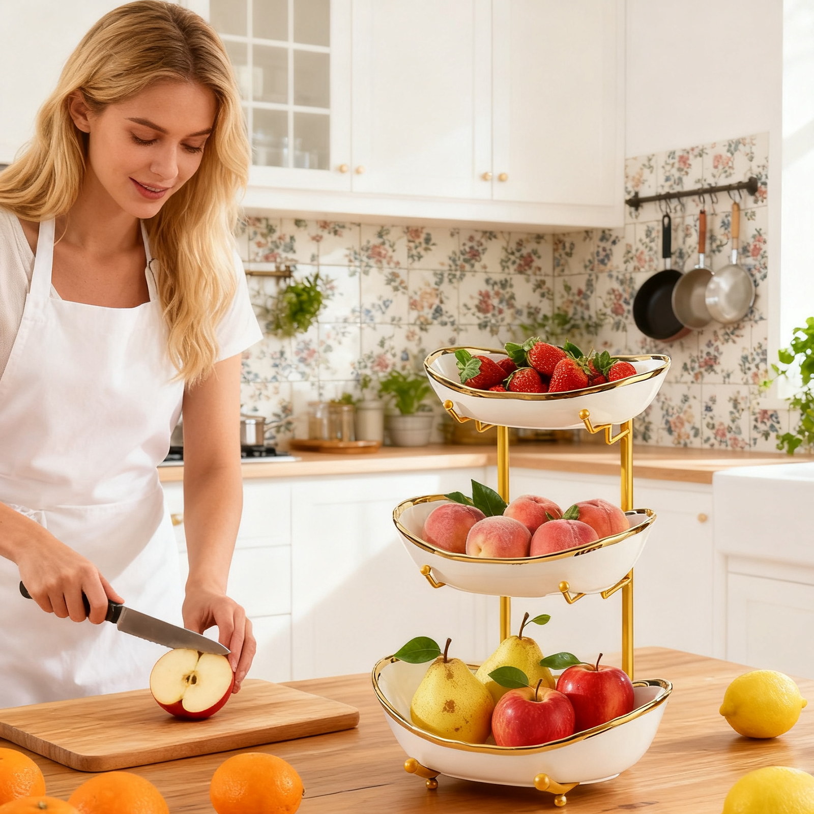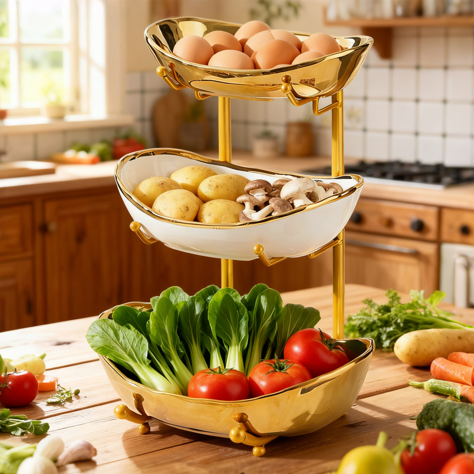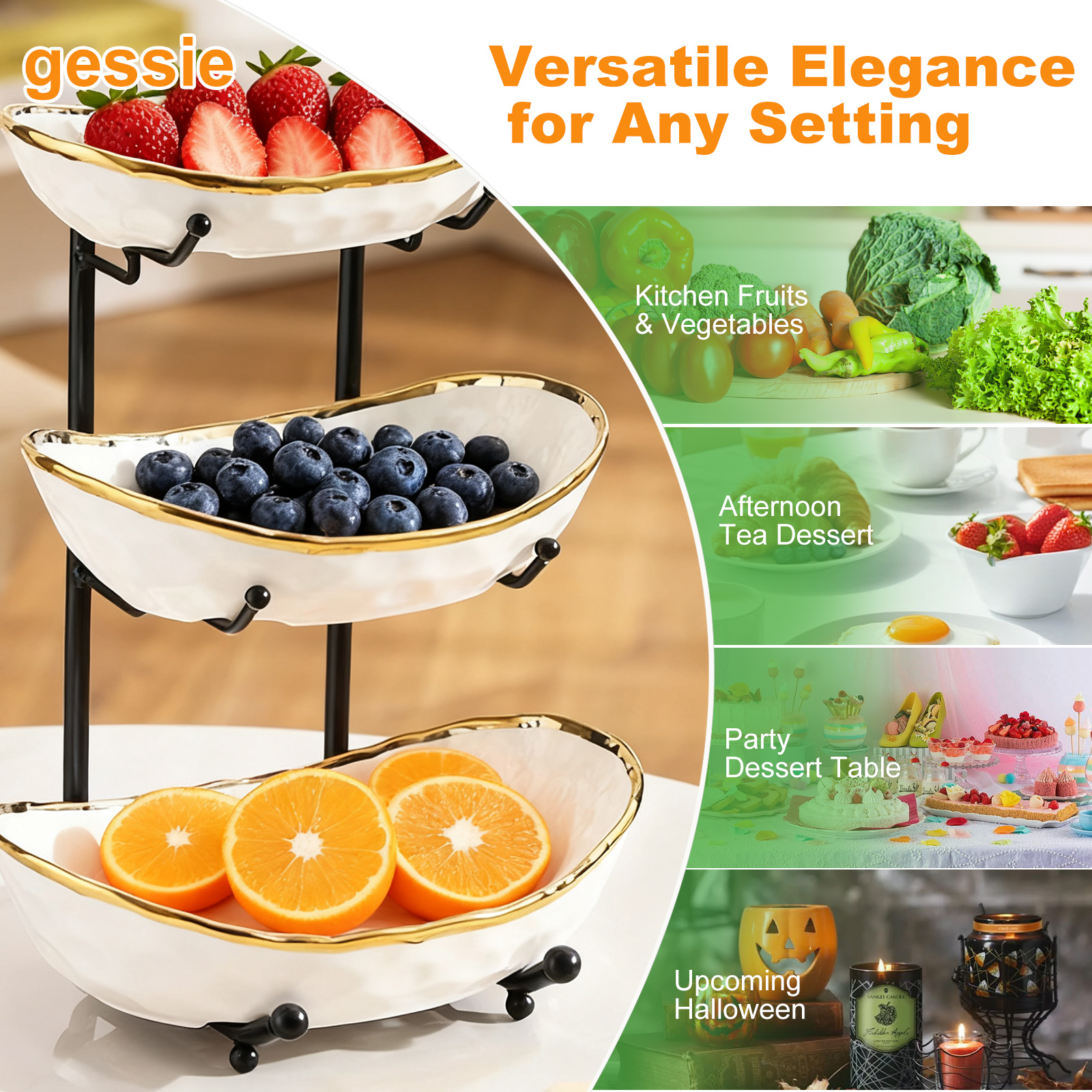 Porcelain & Iron Fruit Baskets Solid Set