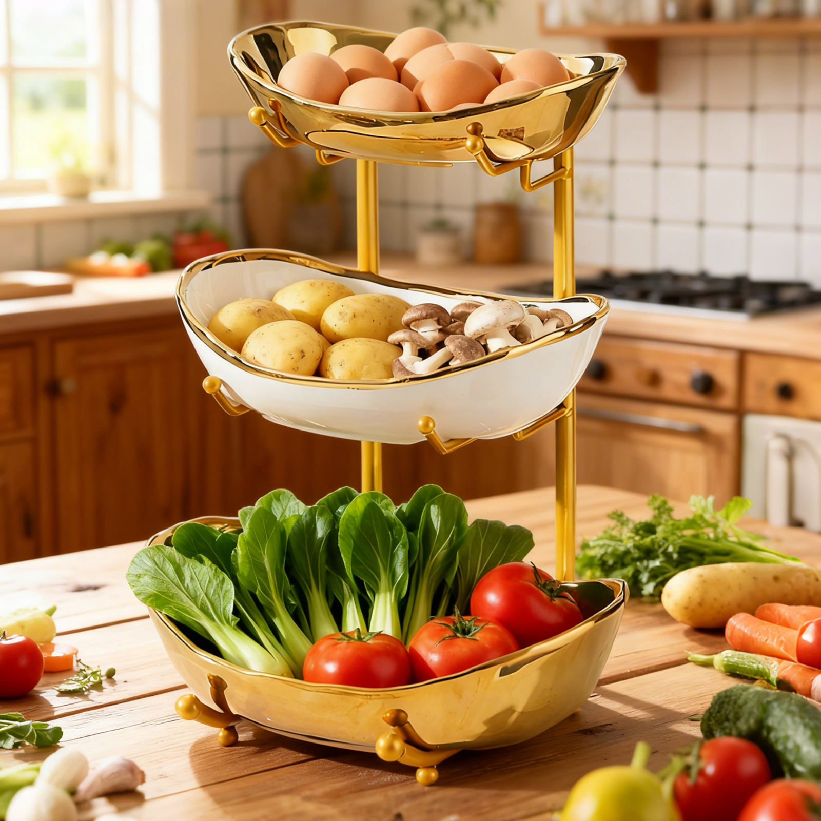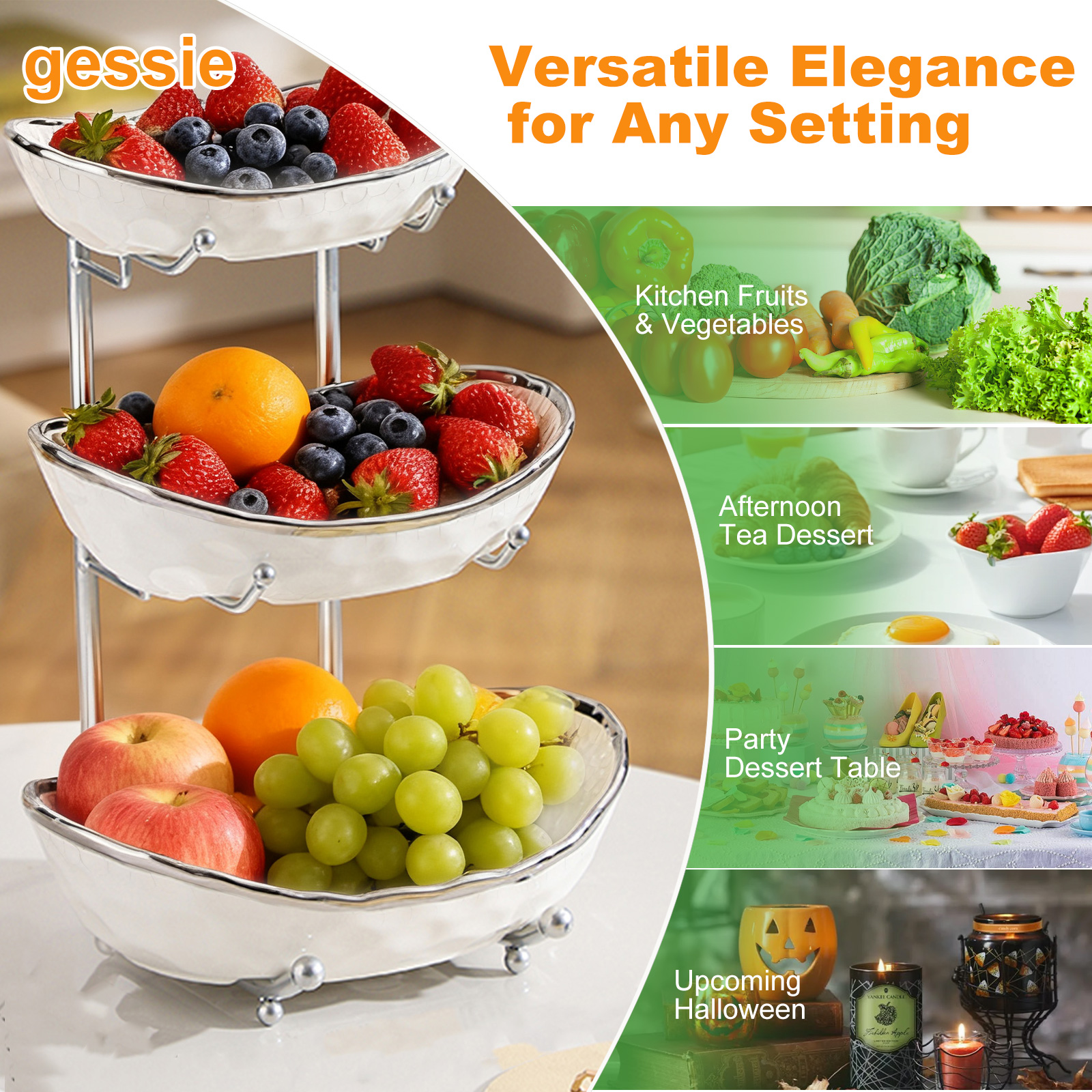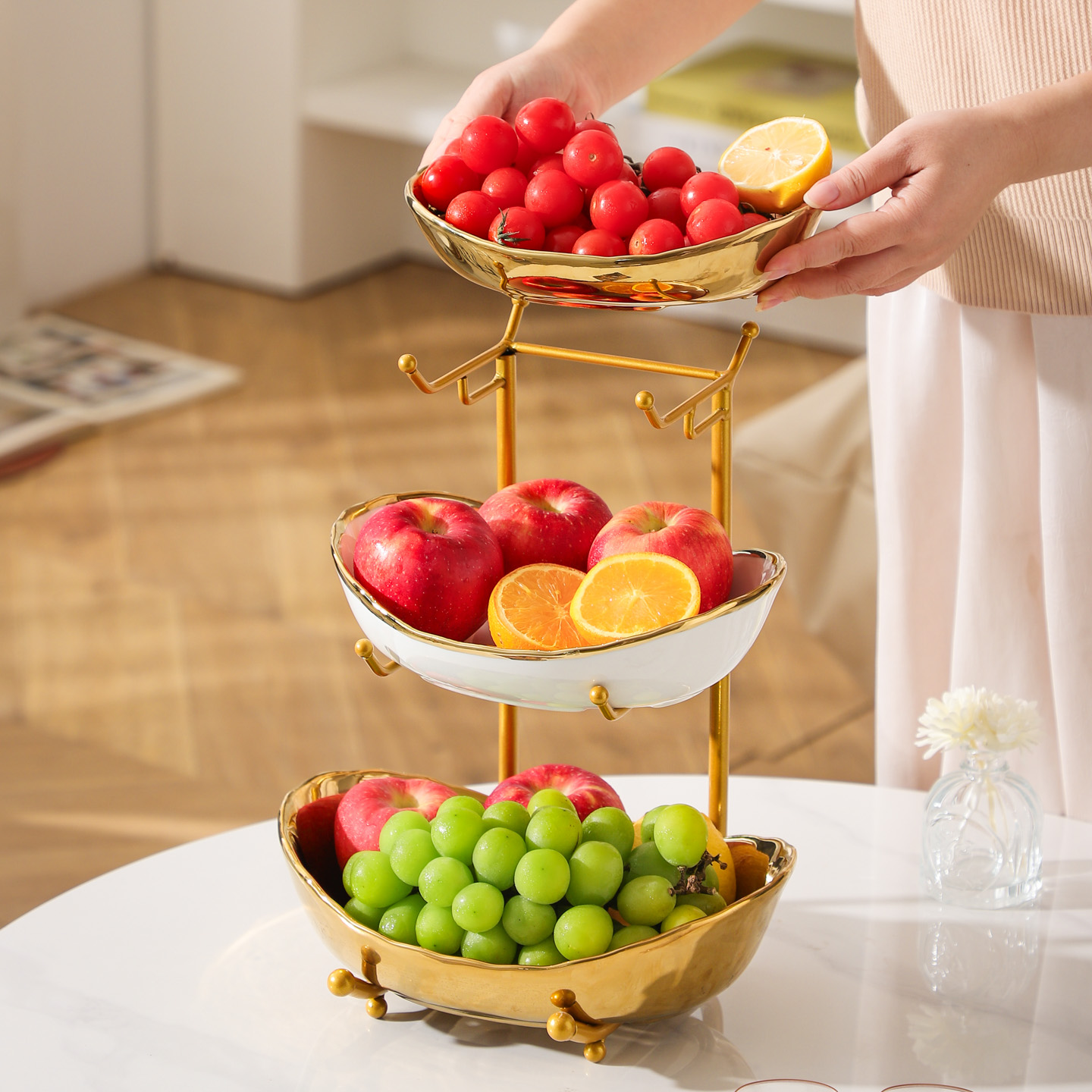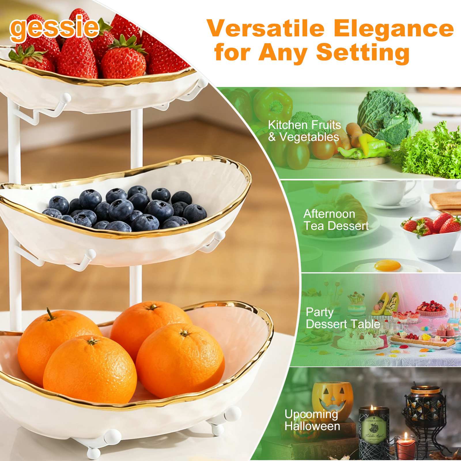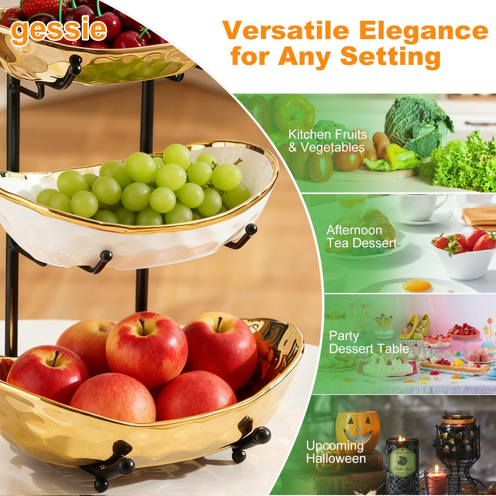 Porcelain & Iron Fruit Baskets Solid Set