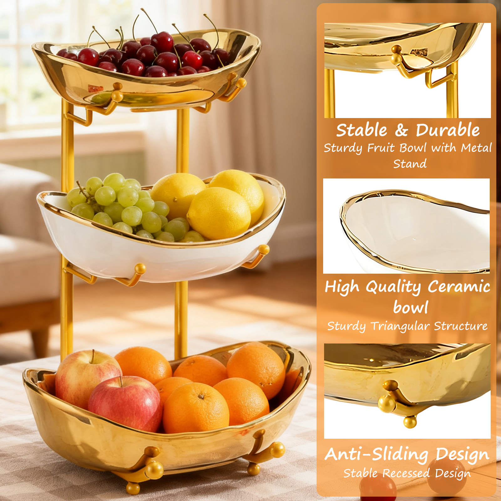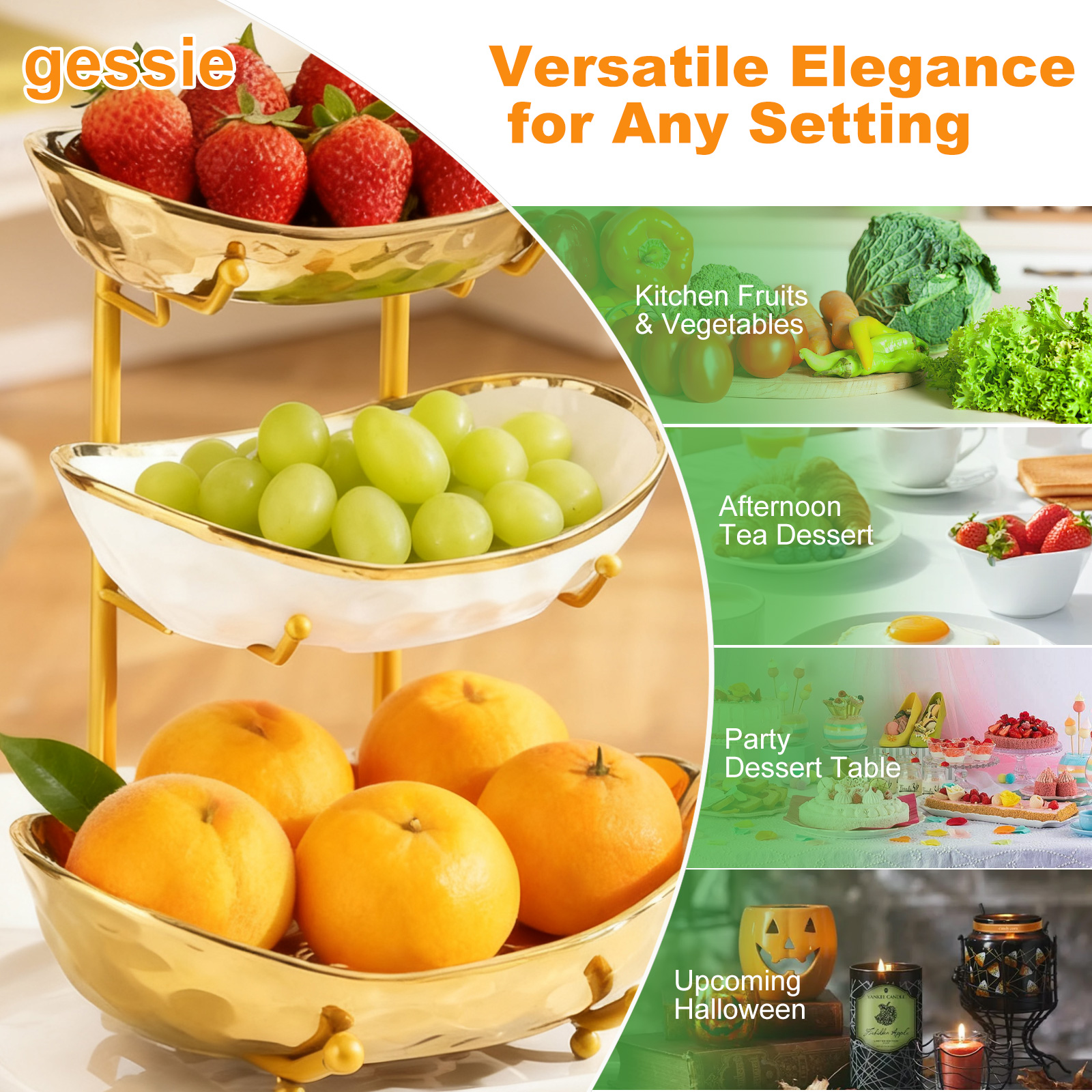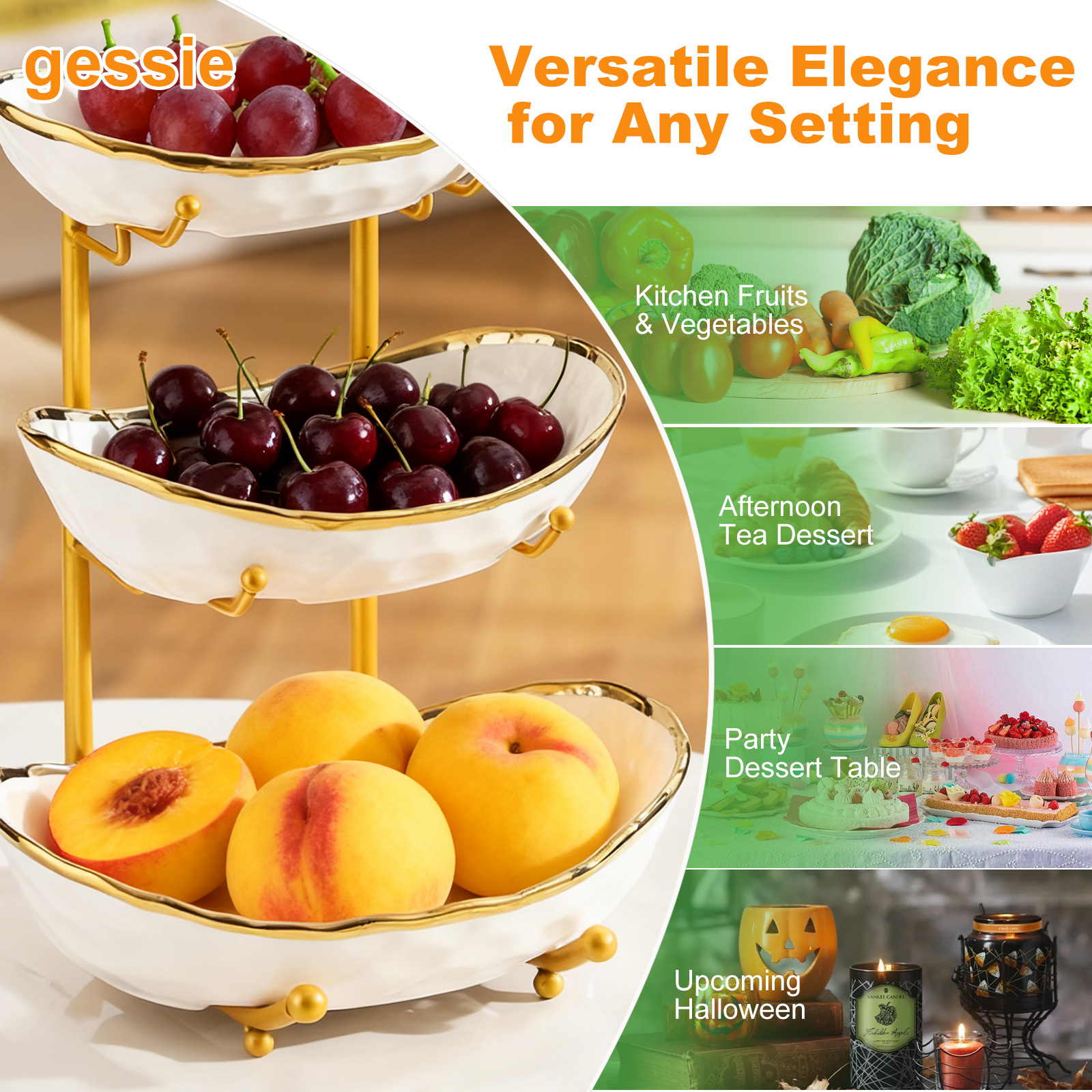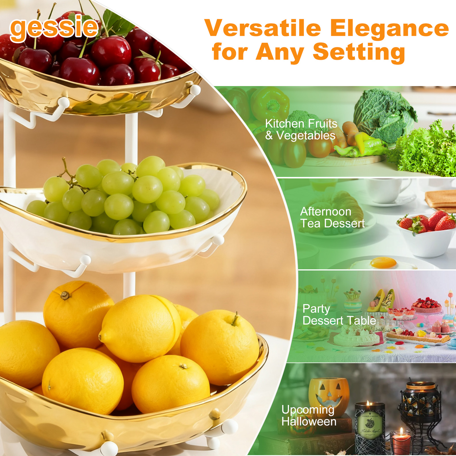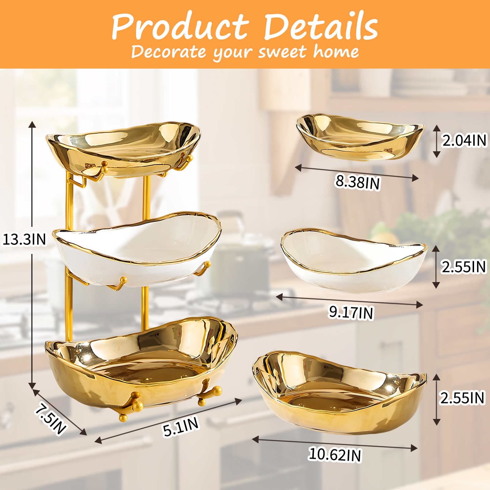 Porcelain & Iron Fruit Baskets Solid Set