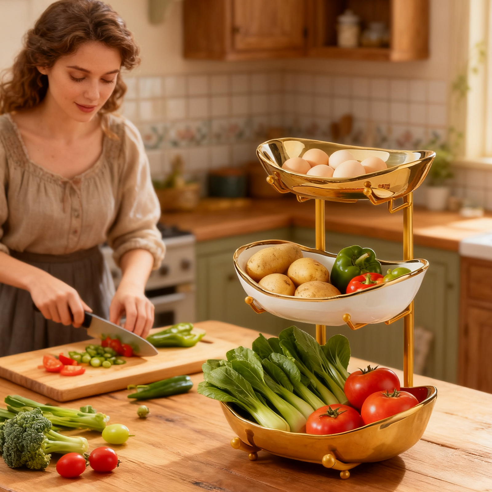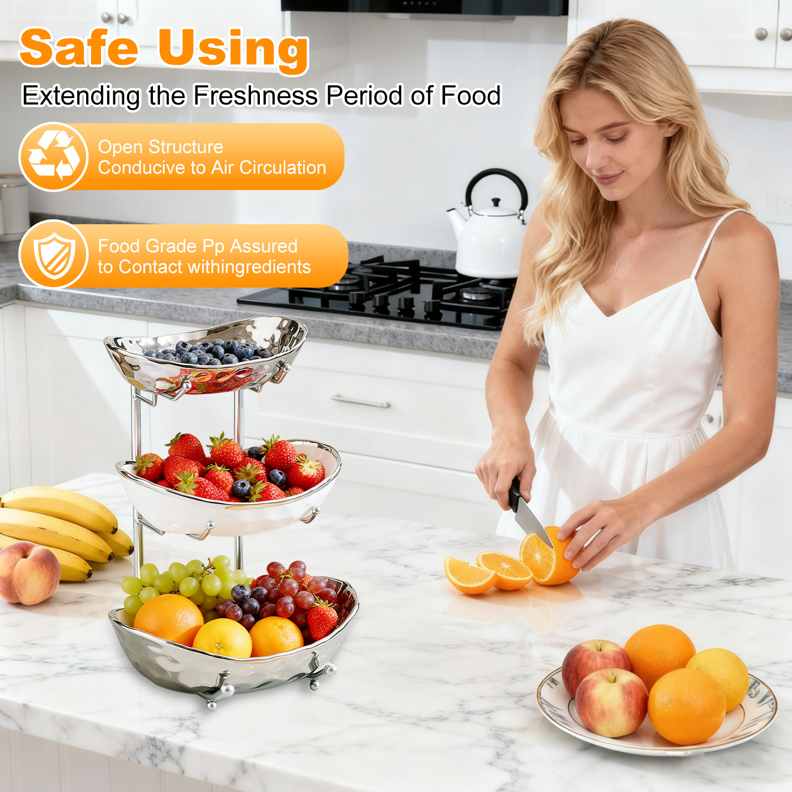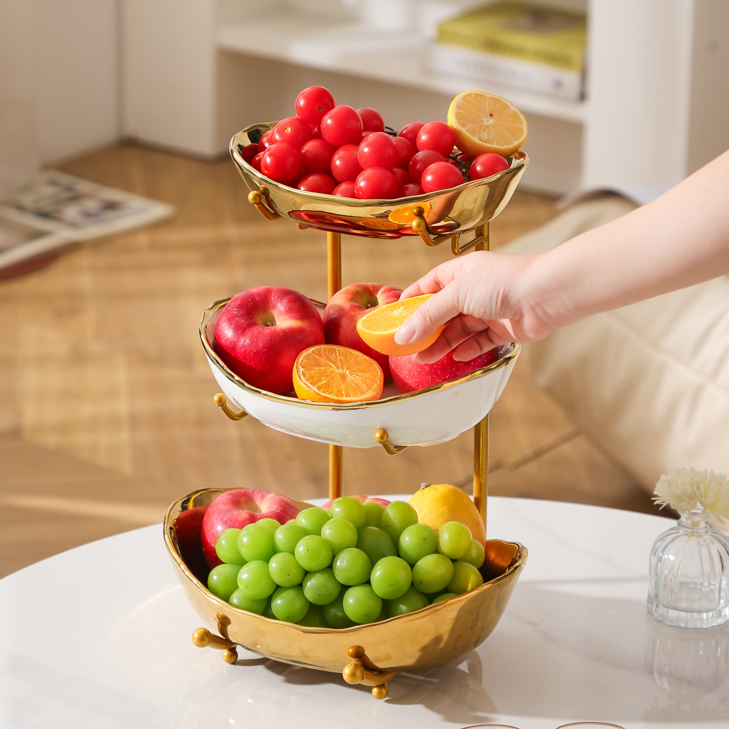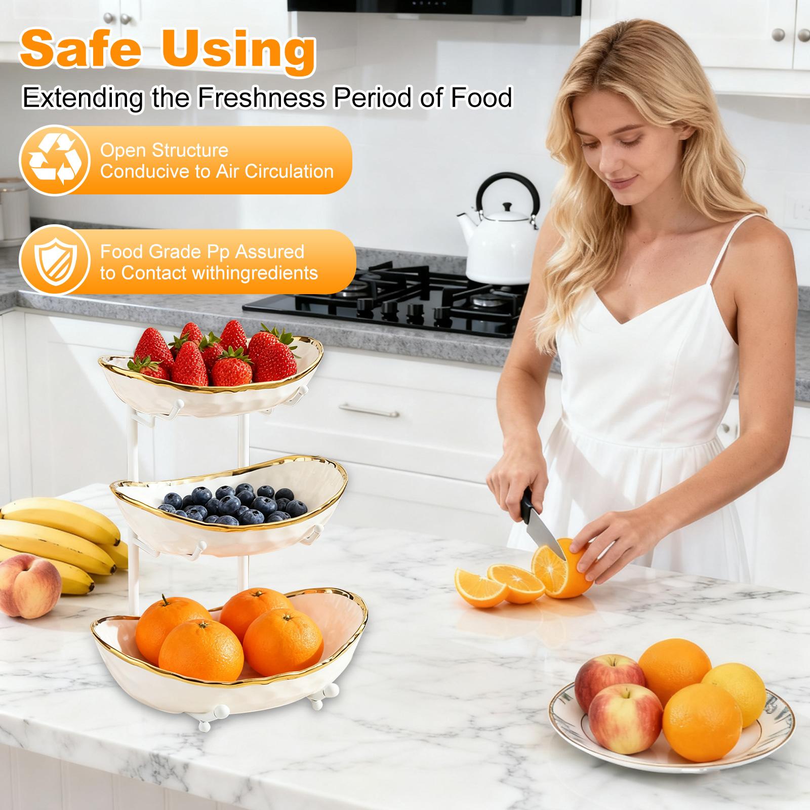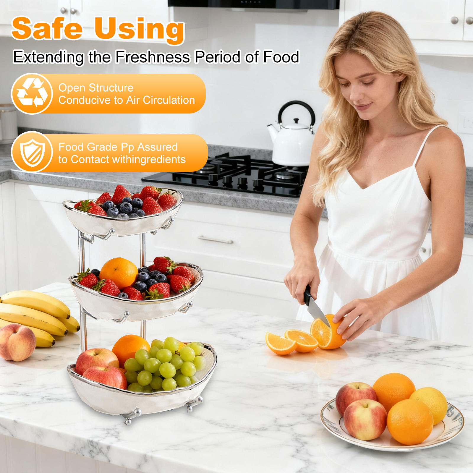 Porcelain & Iron Fruit Baskets Solid Set