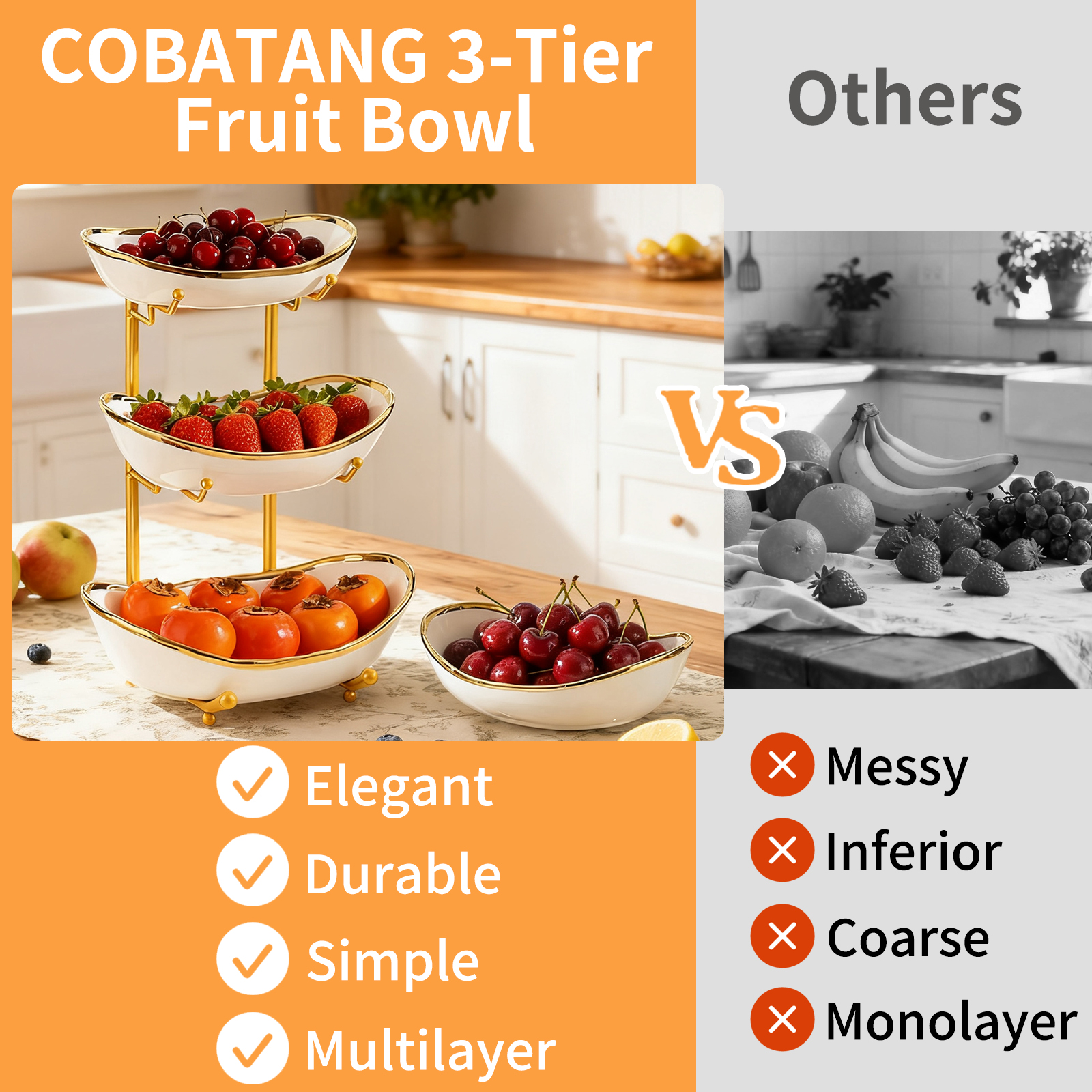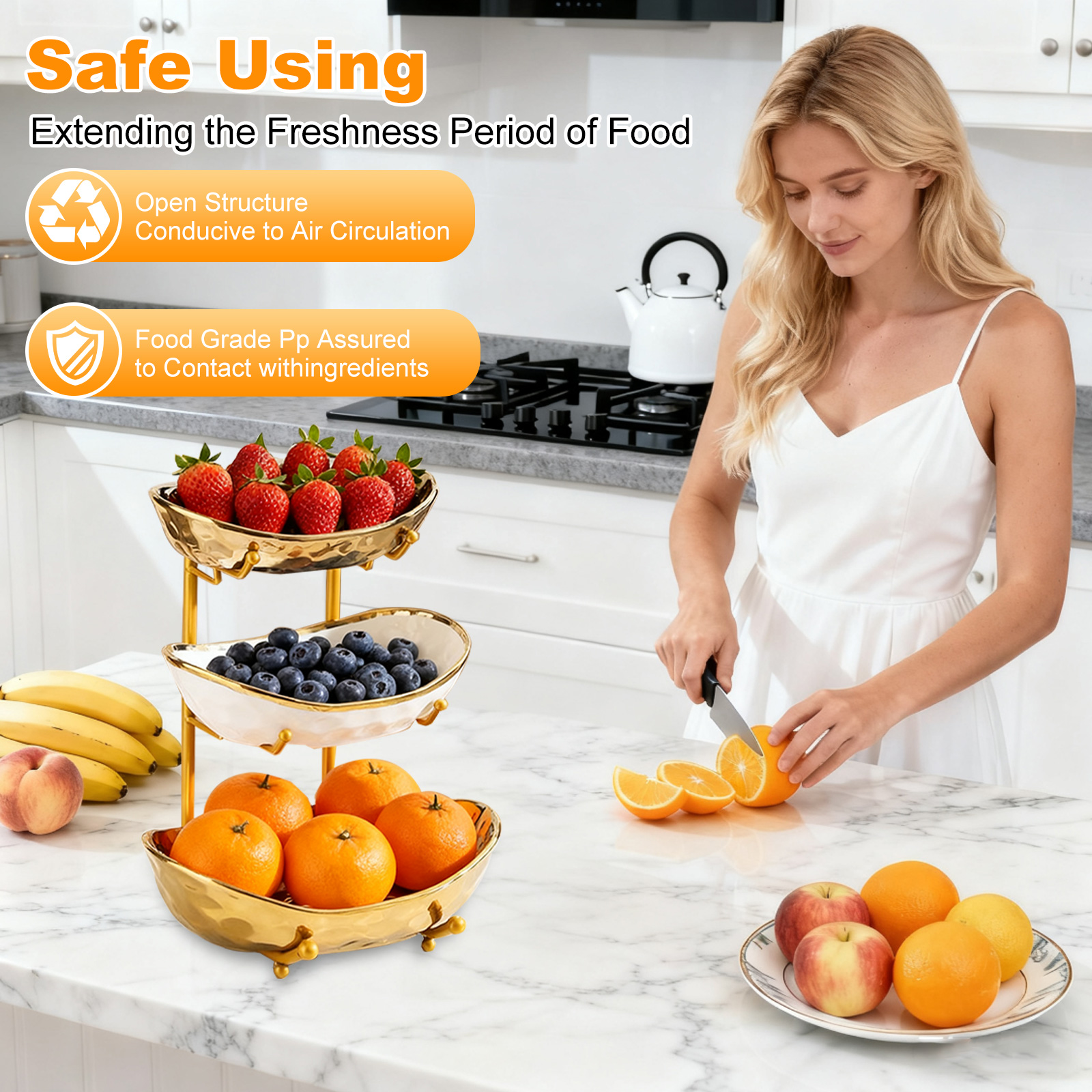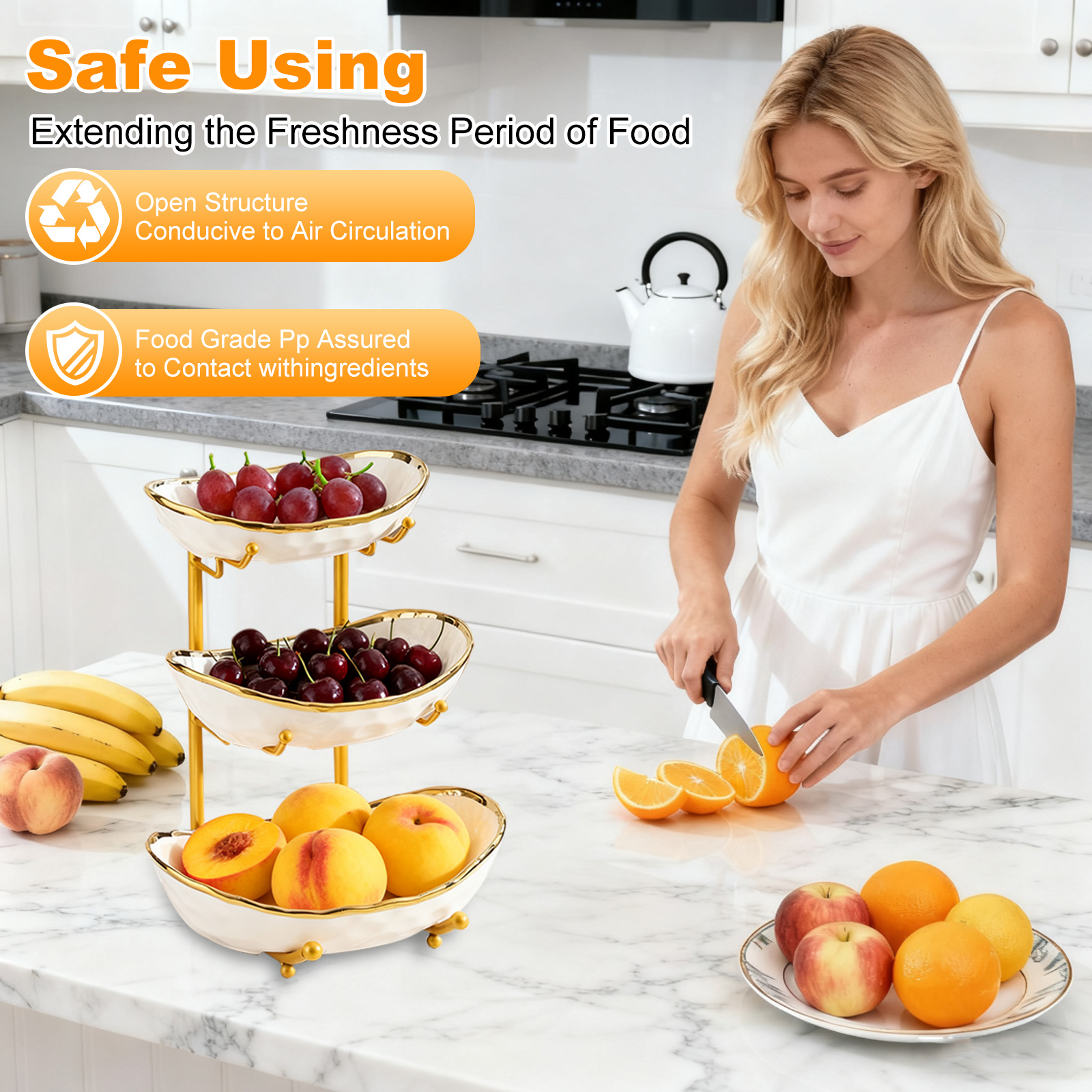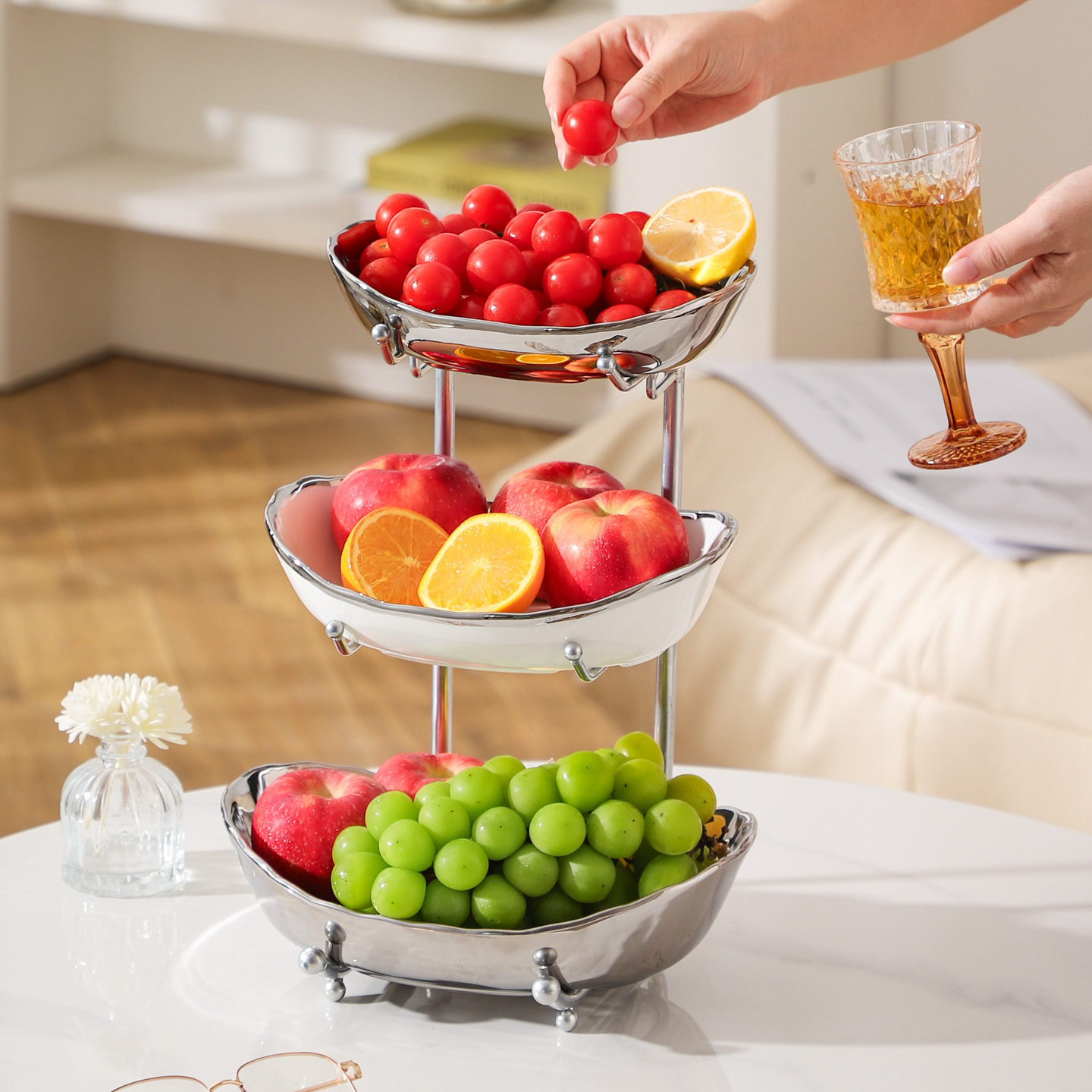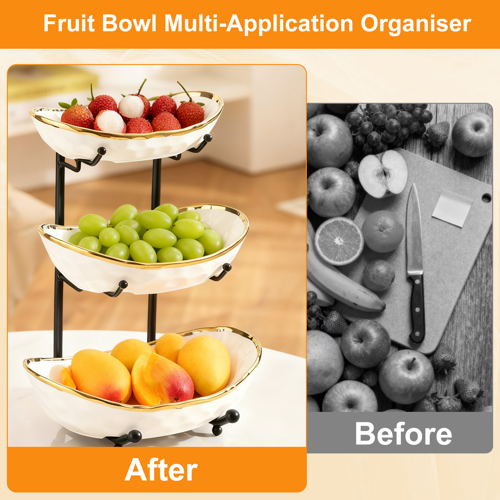 Porcelain & Iron Fruit Baskets Solid Set