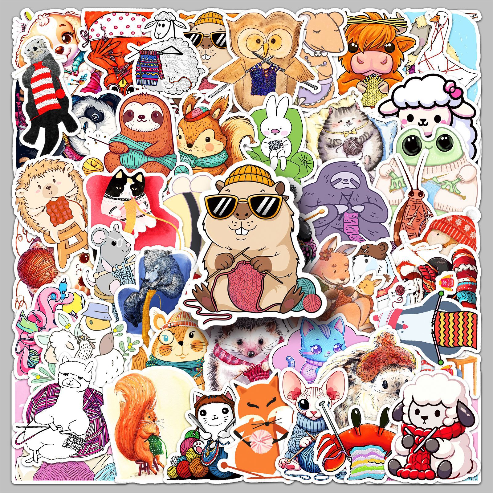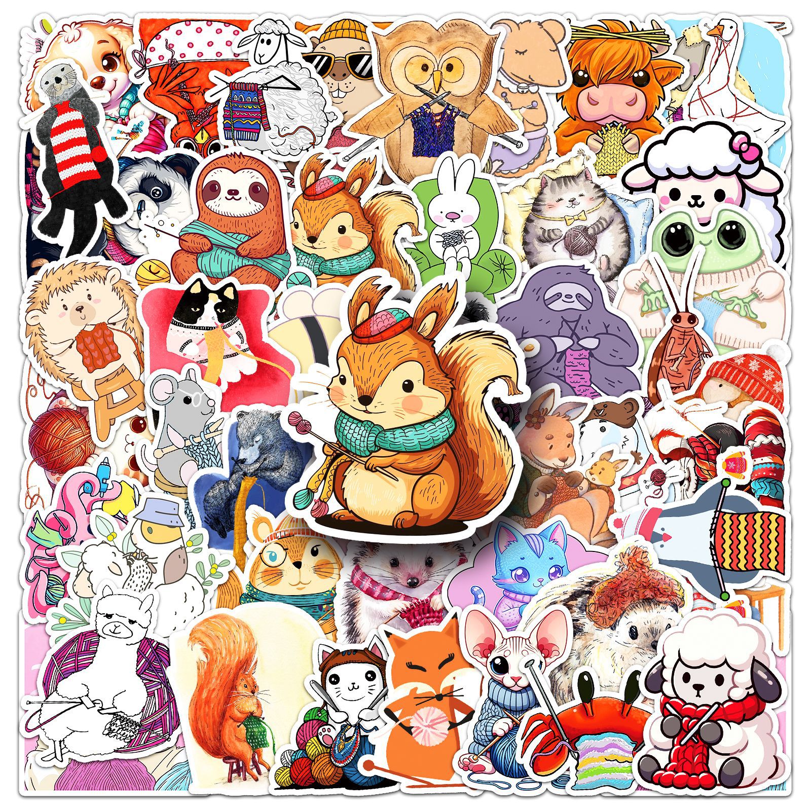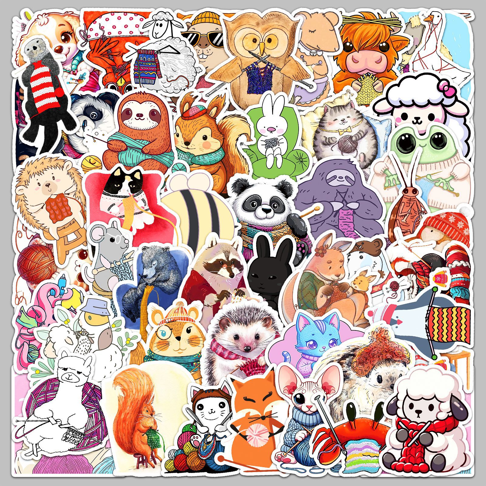 50 Animal Knitted Stickers Cartoon Cute Creative Graffiti Waterproof Decorative Sticker