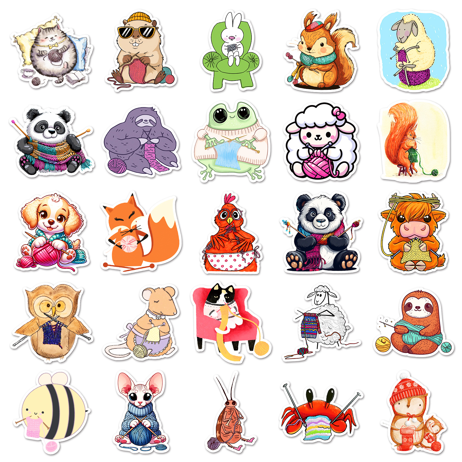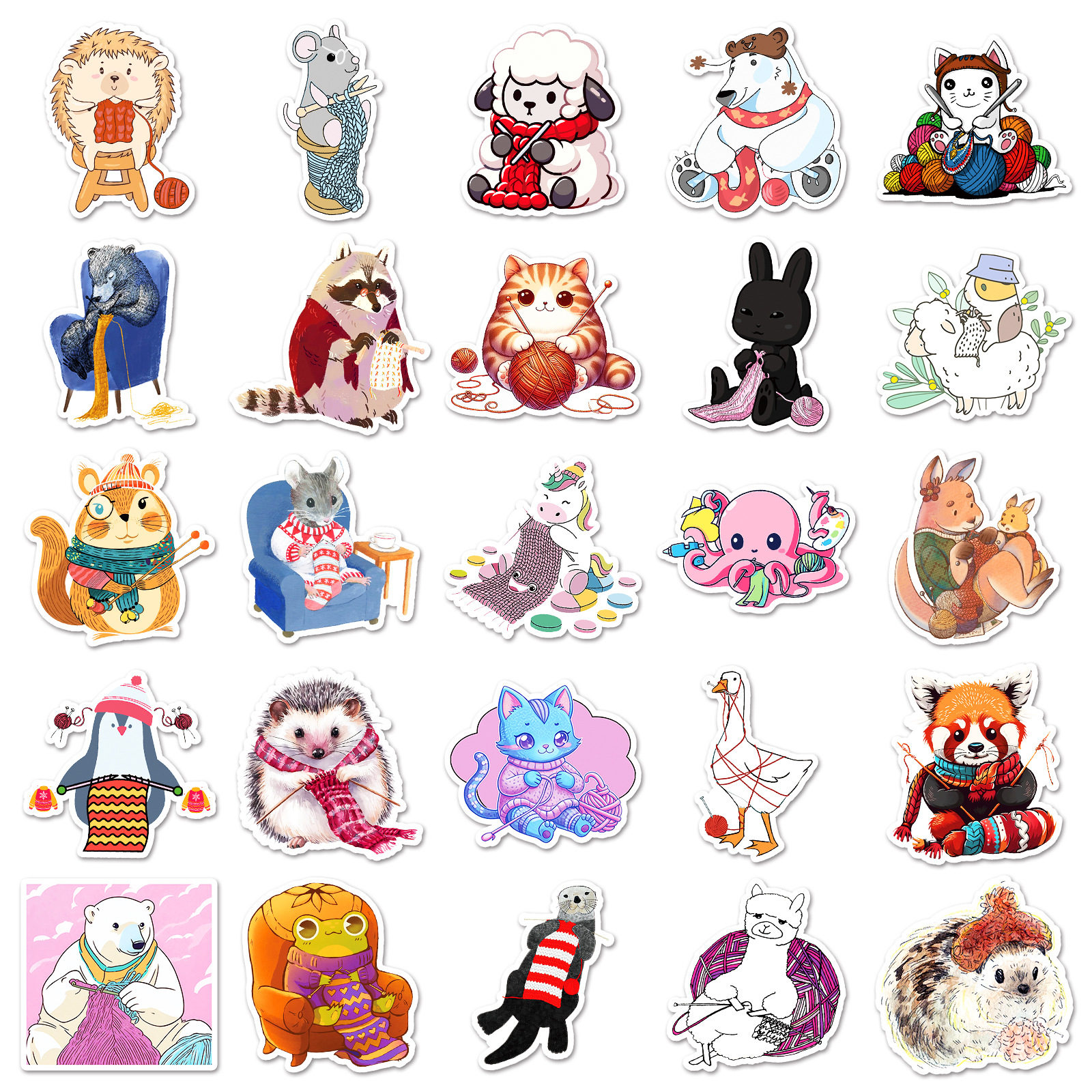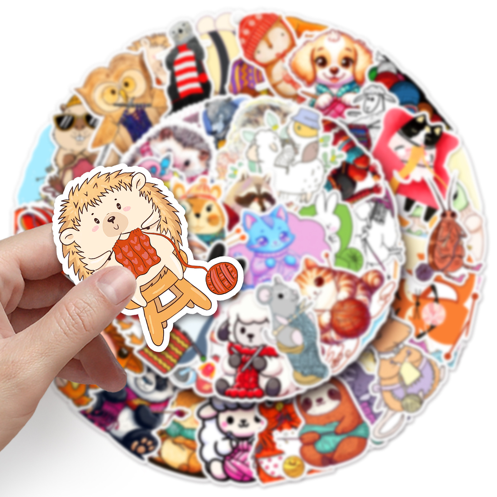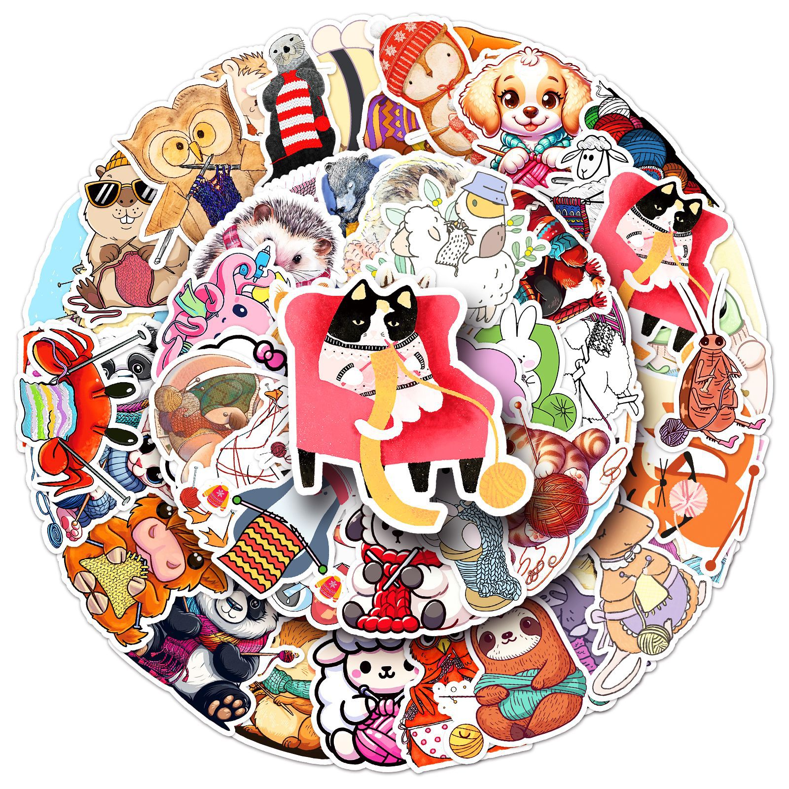 50 Animal Knitted Stickers Cartoon Cute Creative Graffiti Waterproof Decorative Sticker