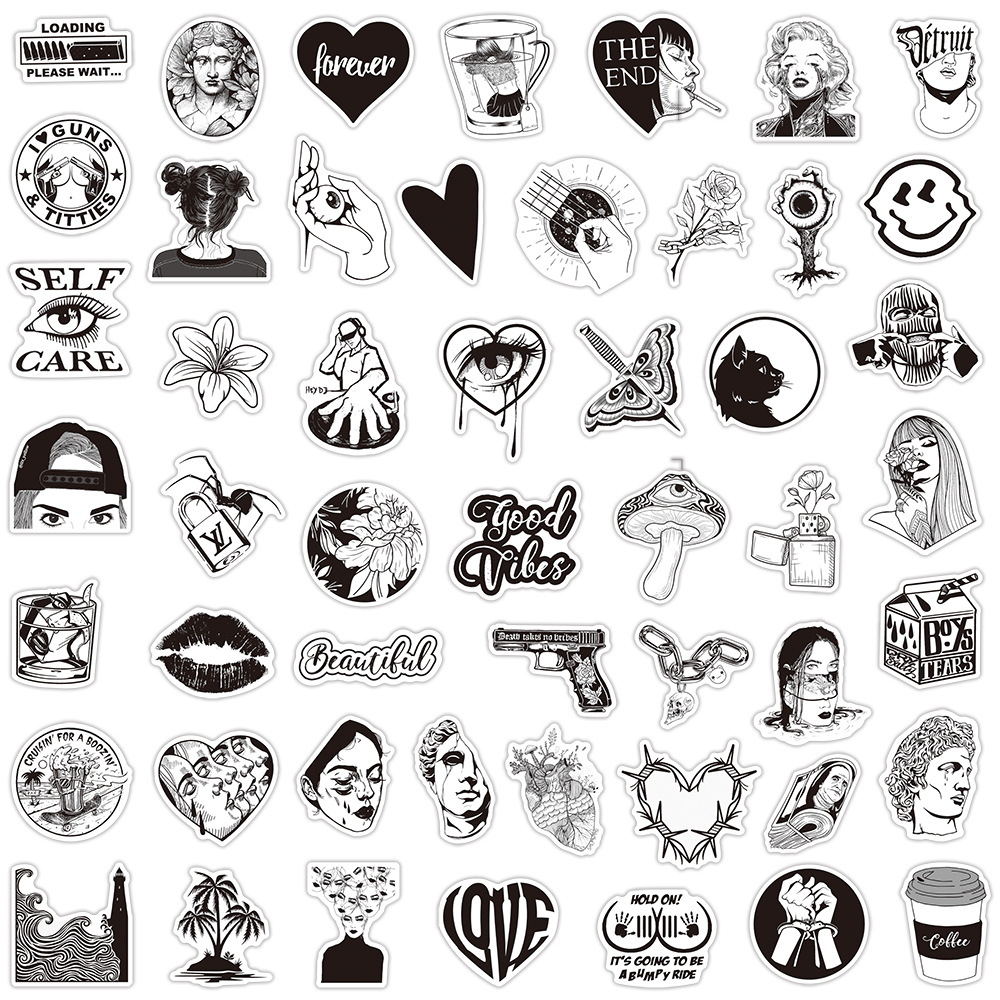 Pressure-Sensitive Adhesive & PVC Decorative Sticker waterproof printed white and black Bag