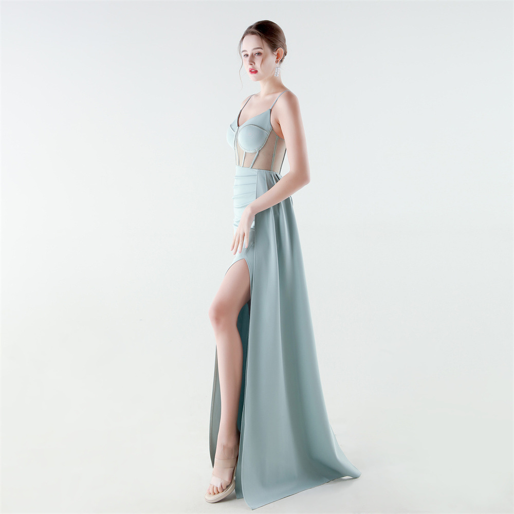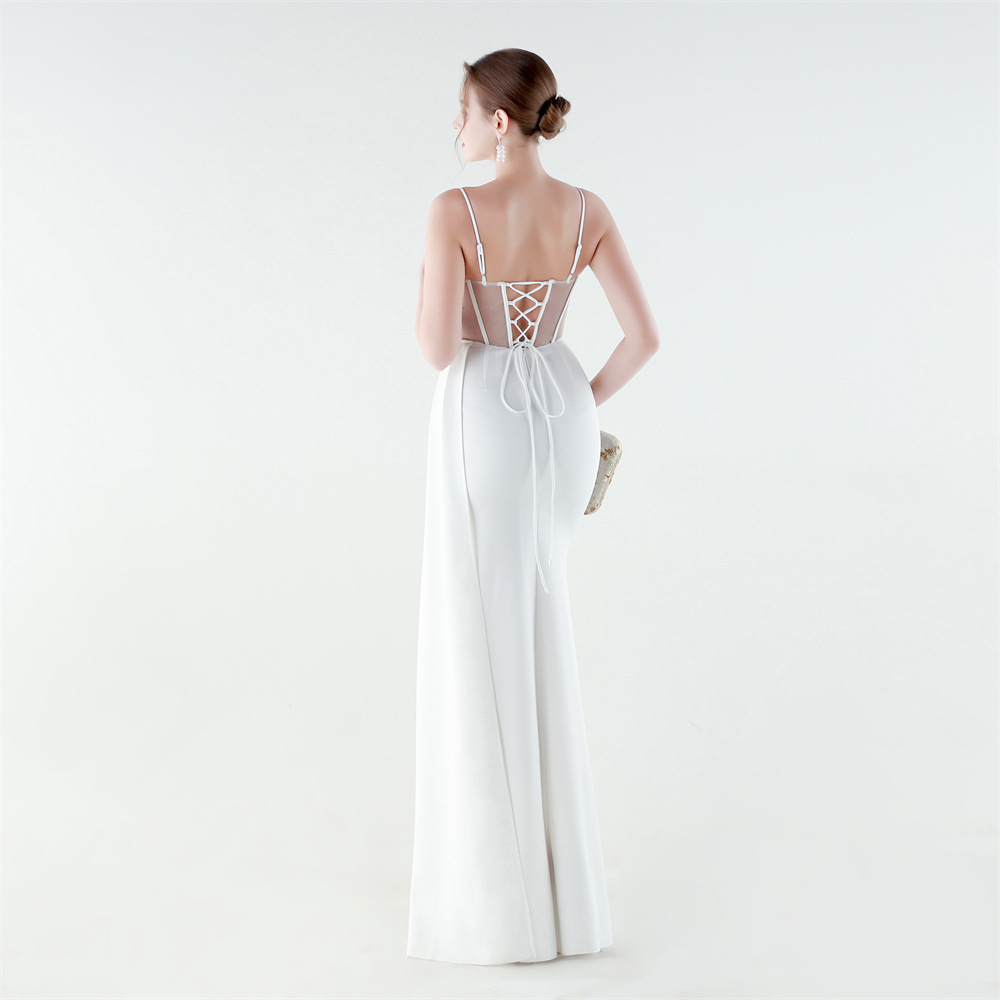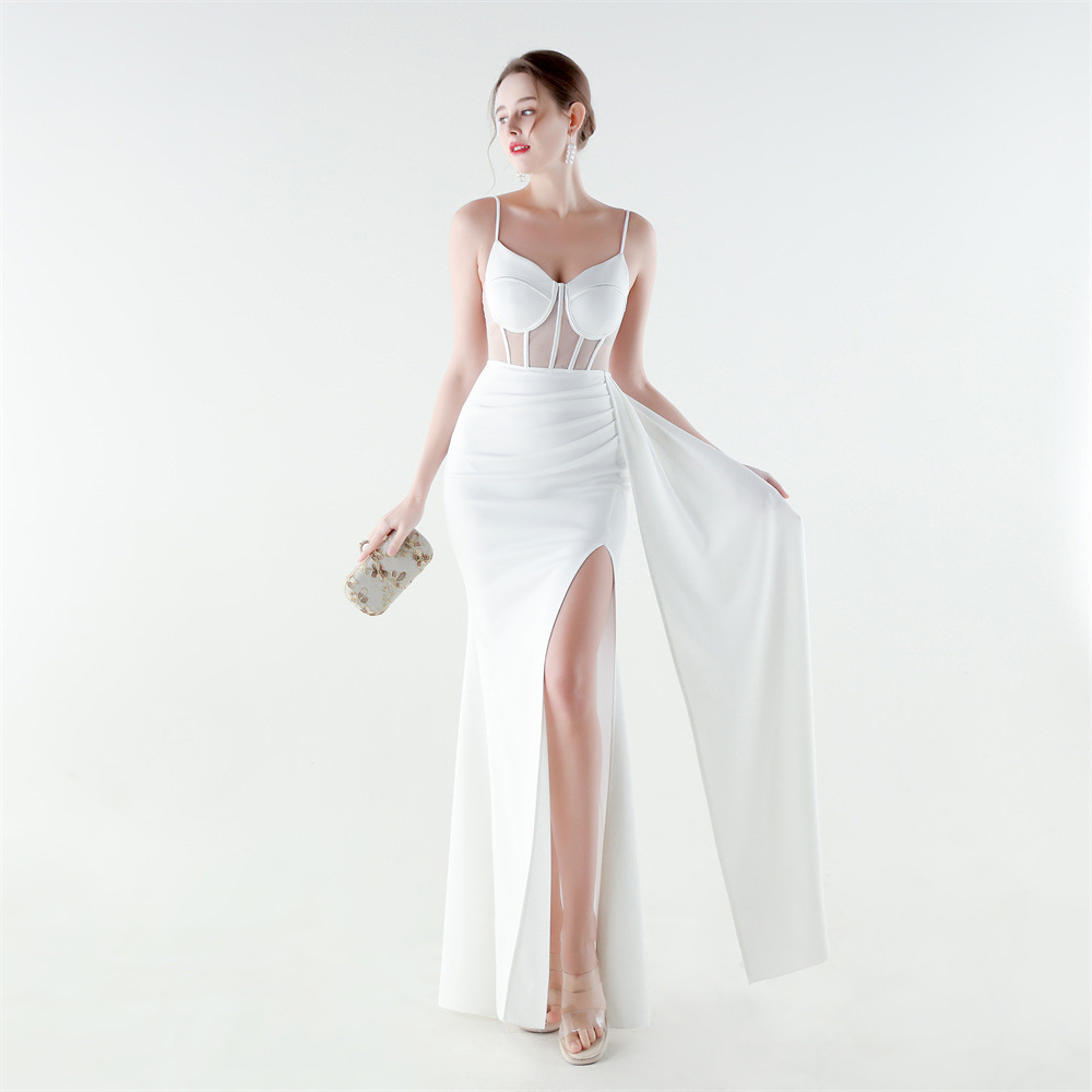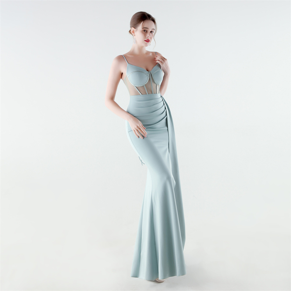 Satin & Gauze Waist-controlled & Mermaid Long Evening Dress side slit & off shoulder & padded Solid PC