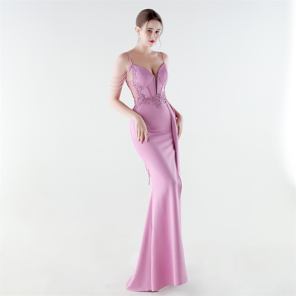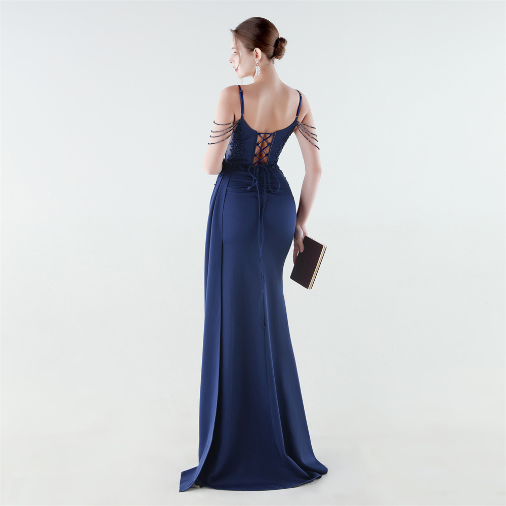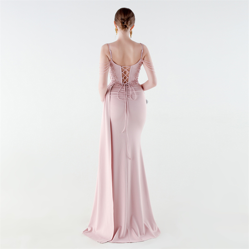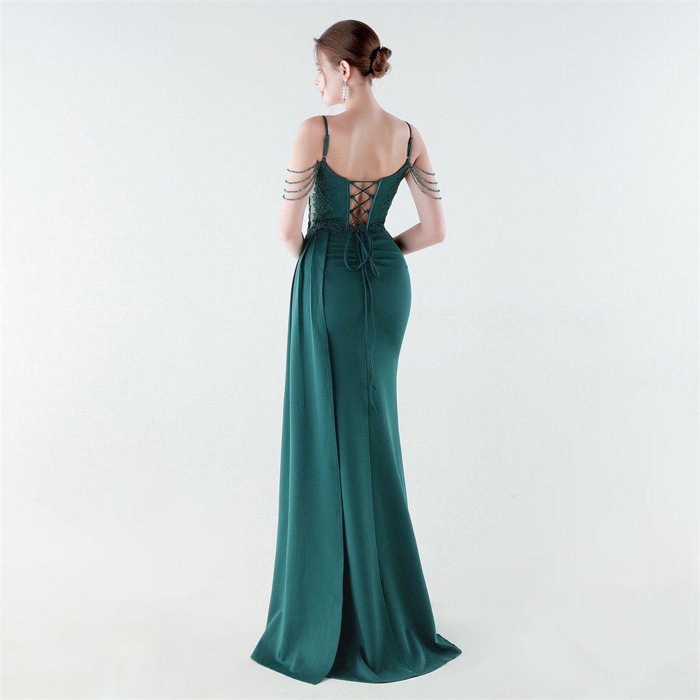 Satin Long Evening Dress side slit & backless & padded iron-on PC