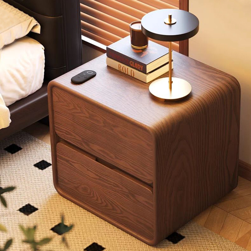 Scratch-Resistant Fabric & Wood Fiber & Solid Wood Bedside Cabinet dustproof coffee PC