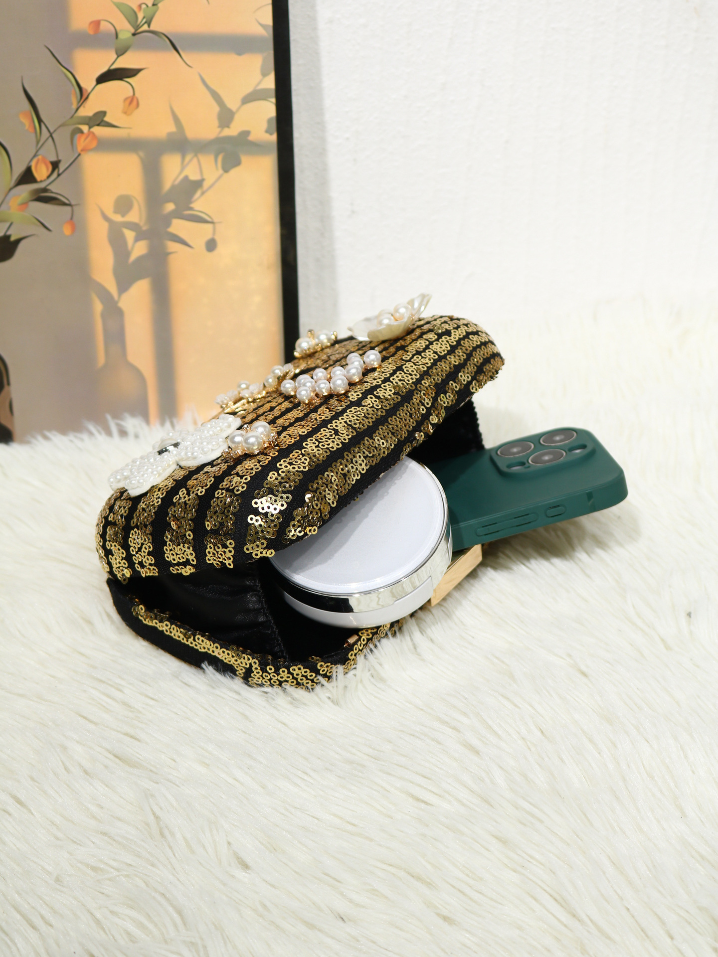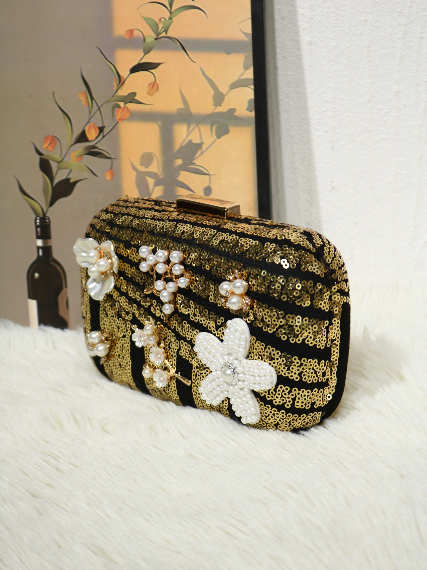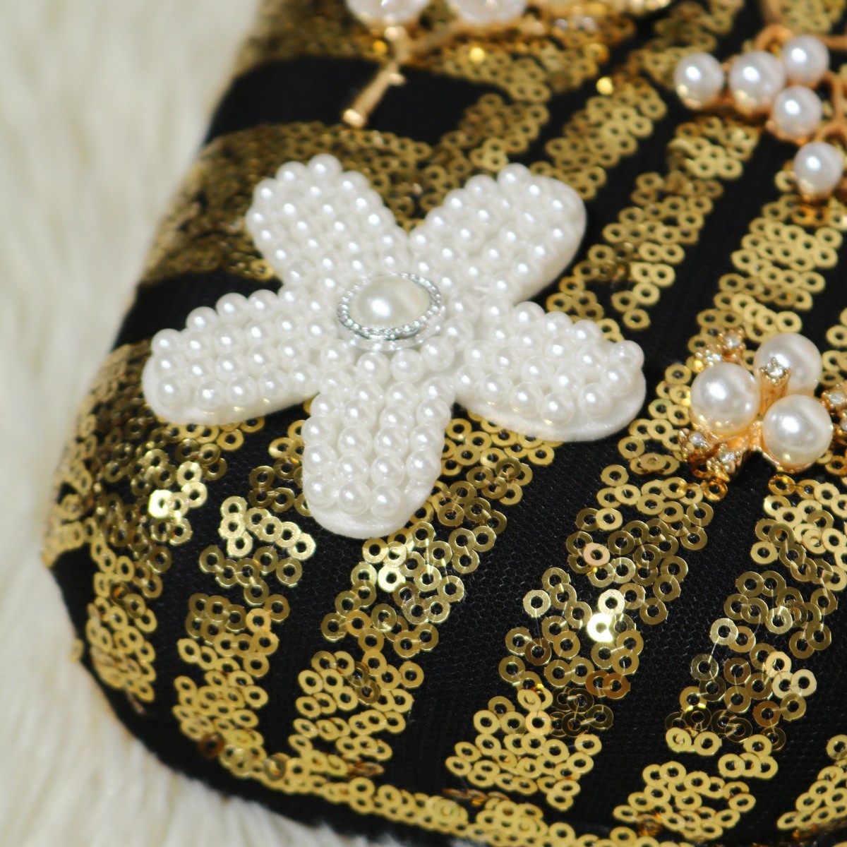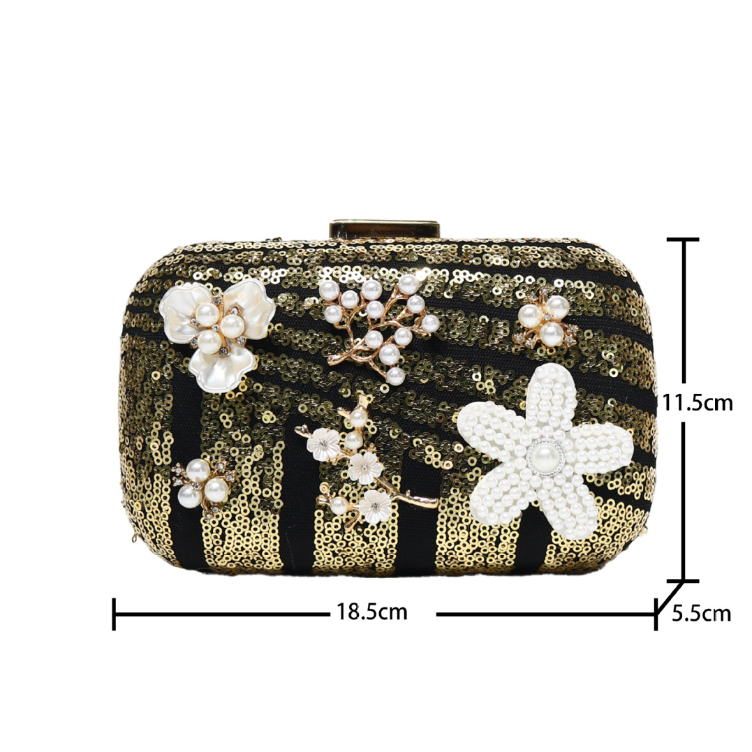 Sequin & Plastic Pearl & Polyester Clutch Bag floral PC