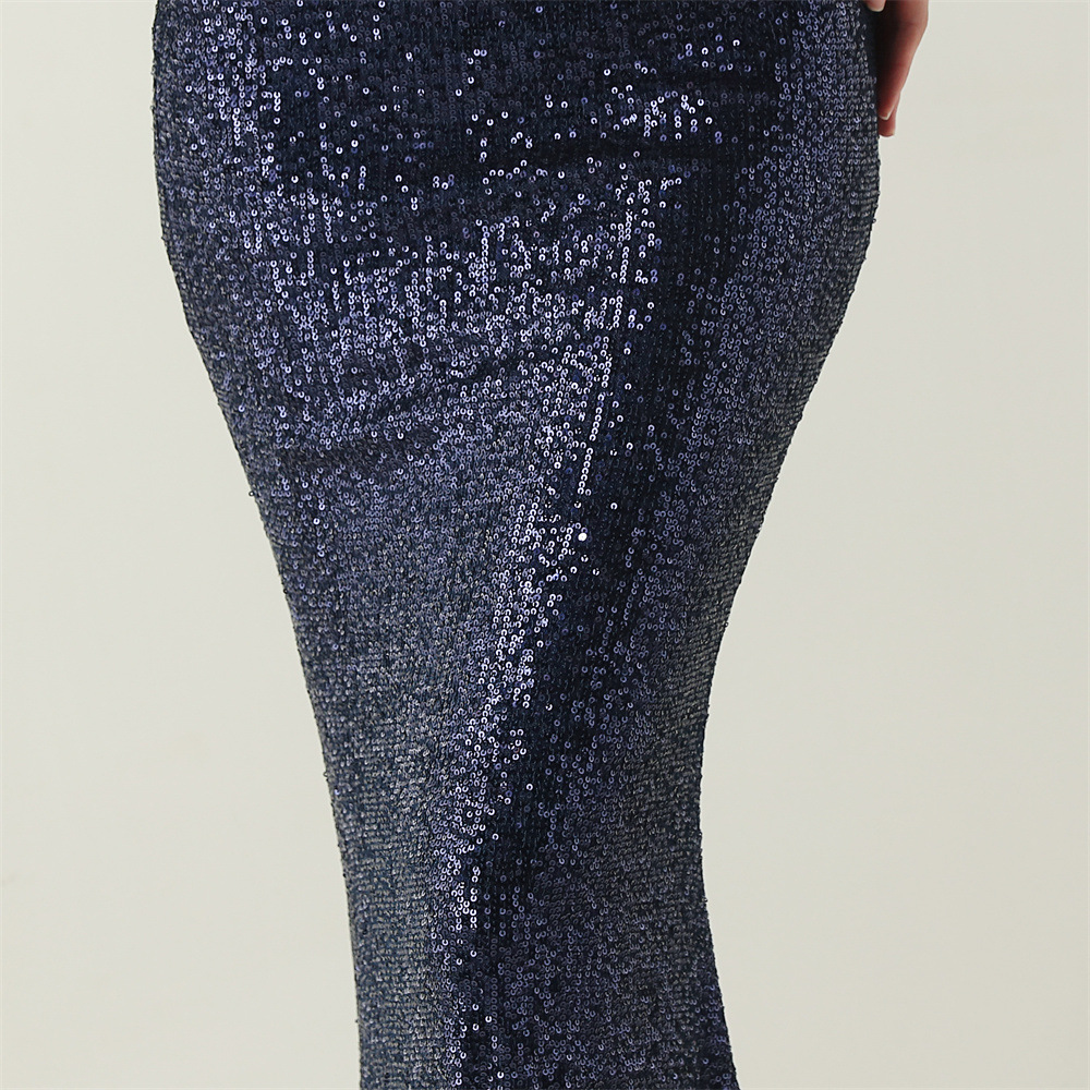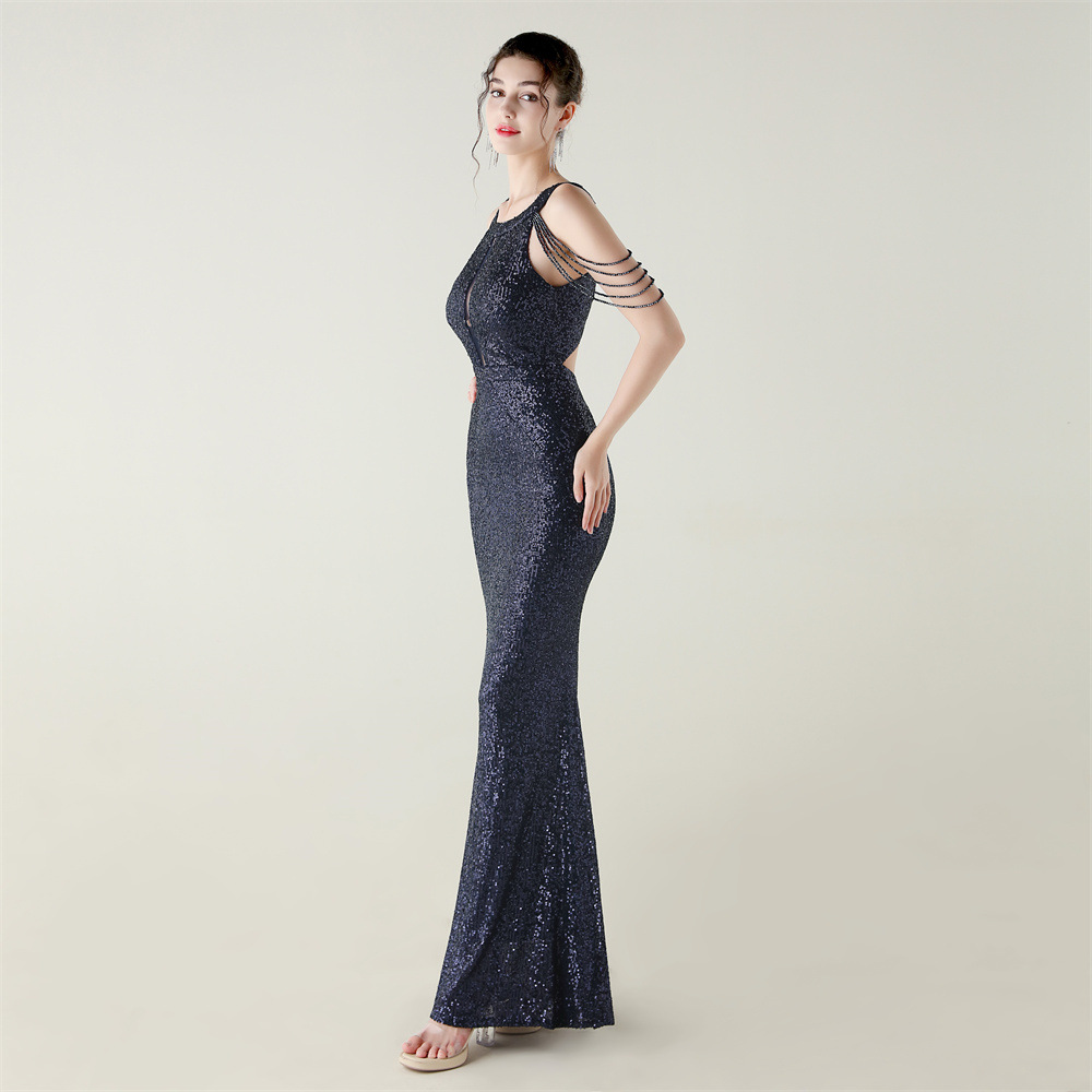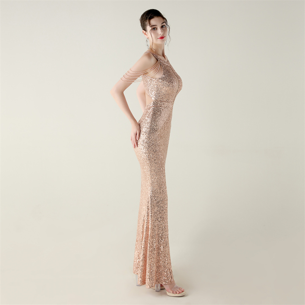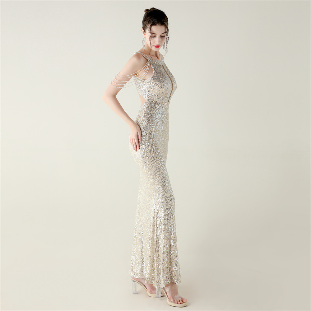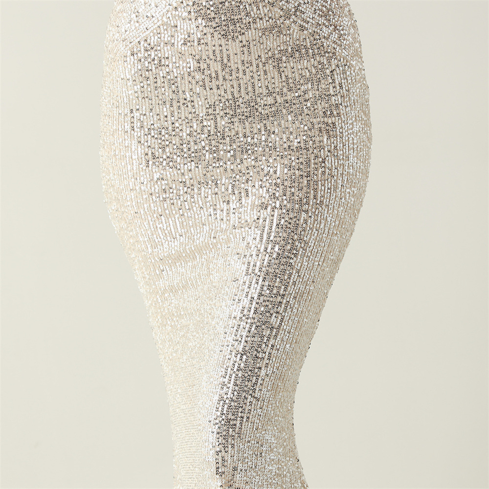 Sequin & Polyester Soft & Slim Long Evening Dress backless & off shoulder patchwork PC