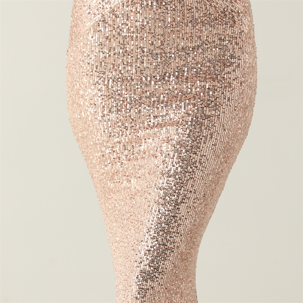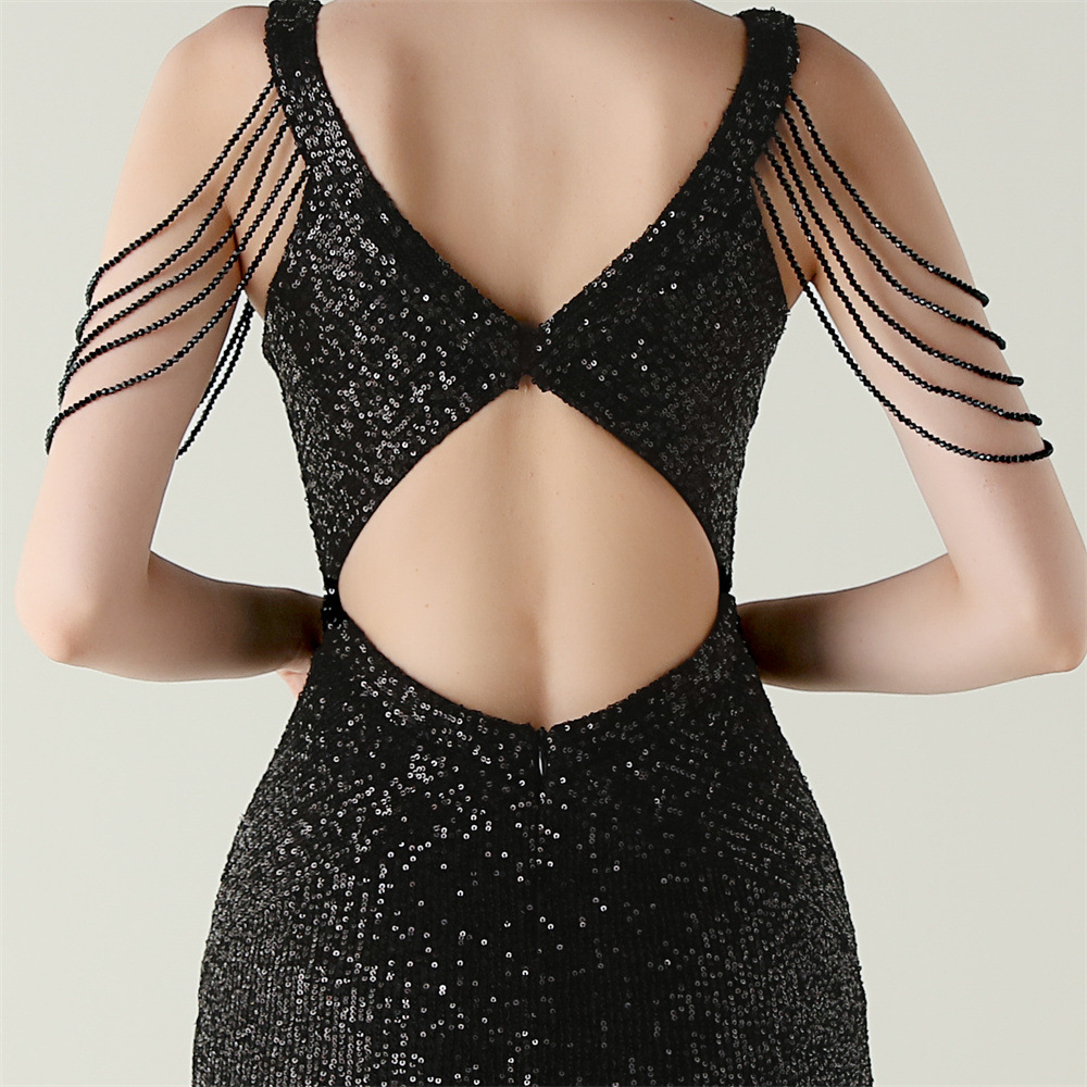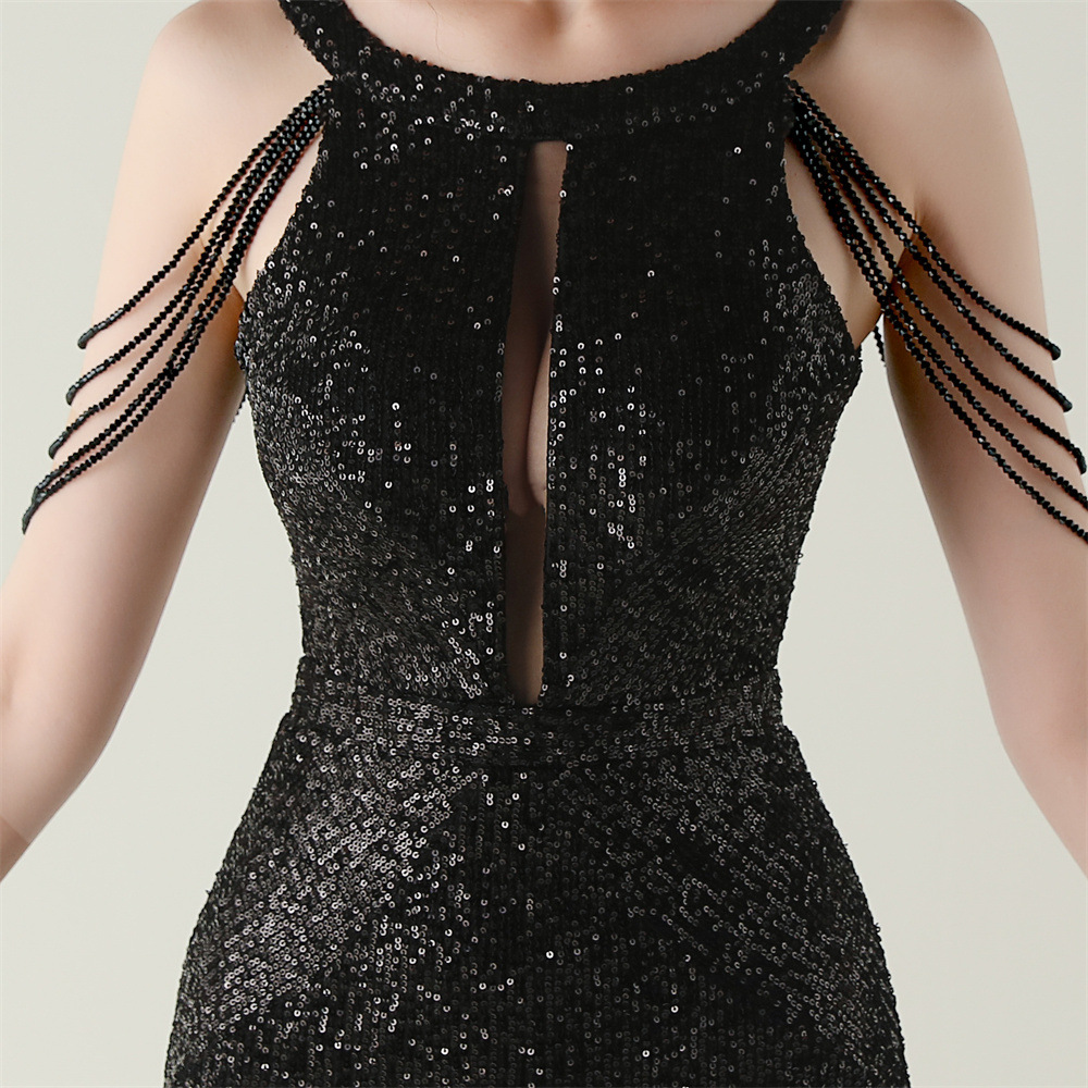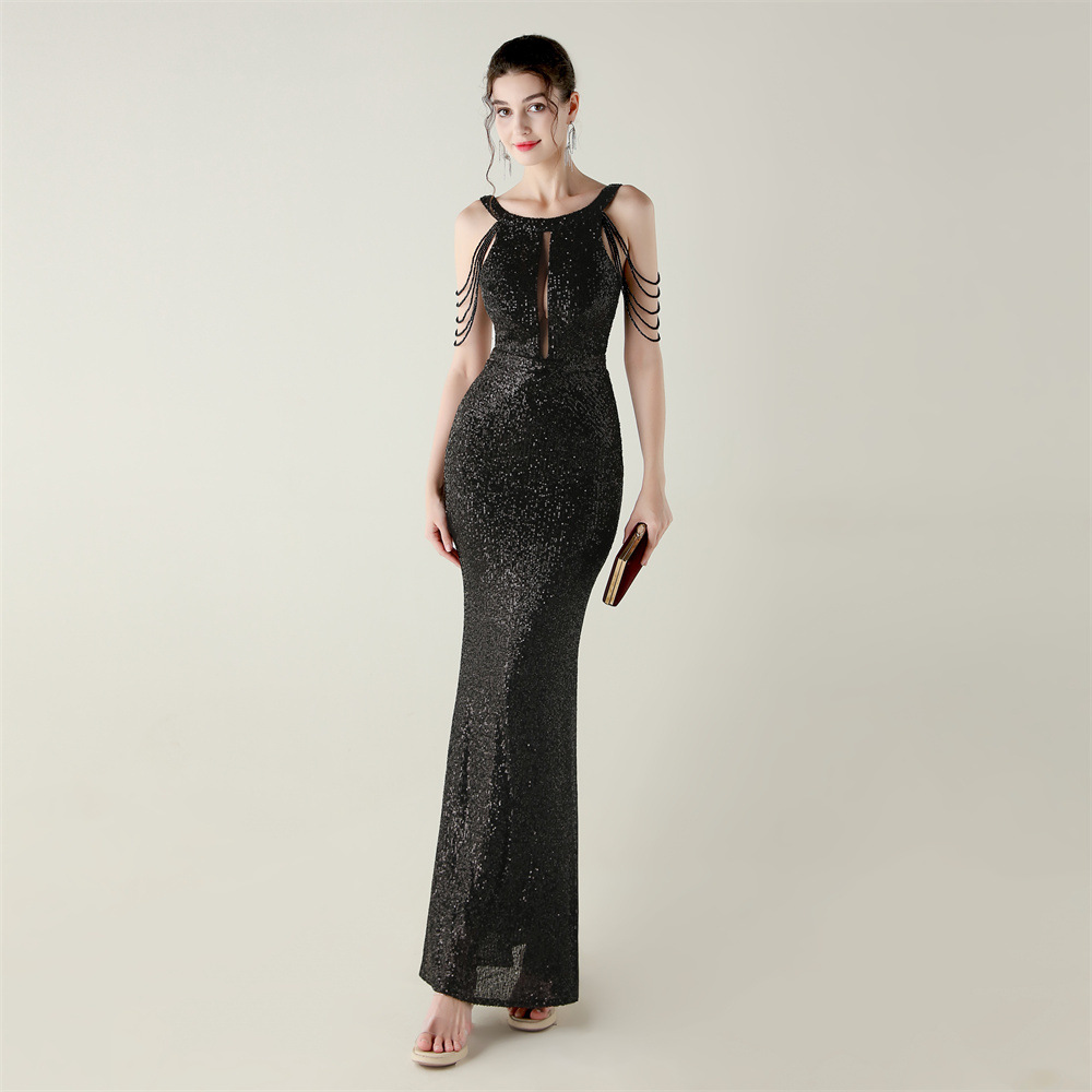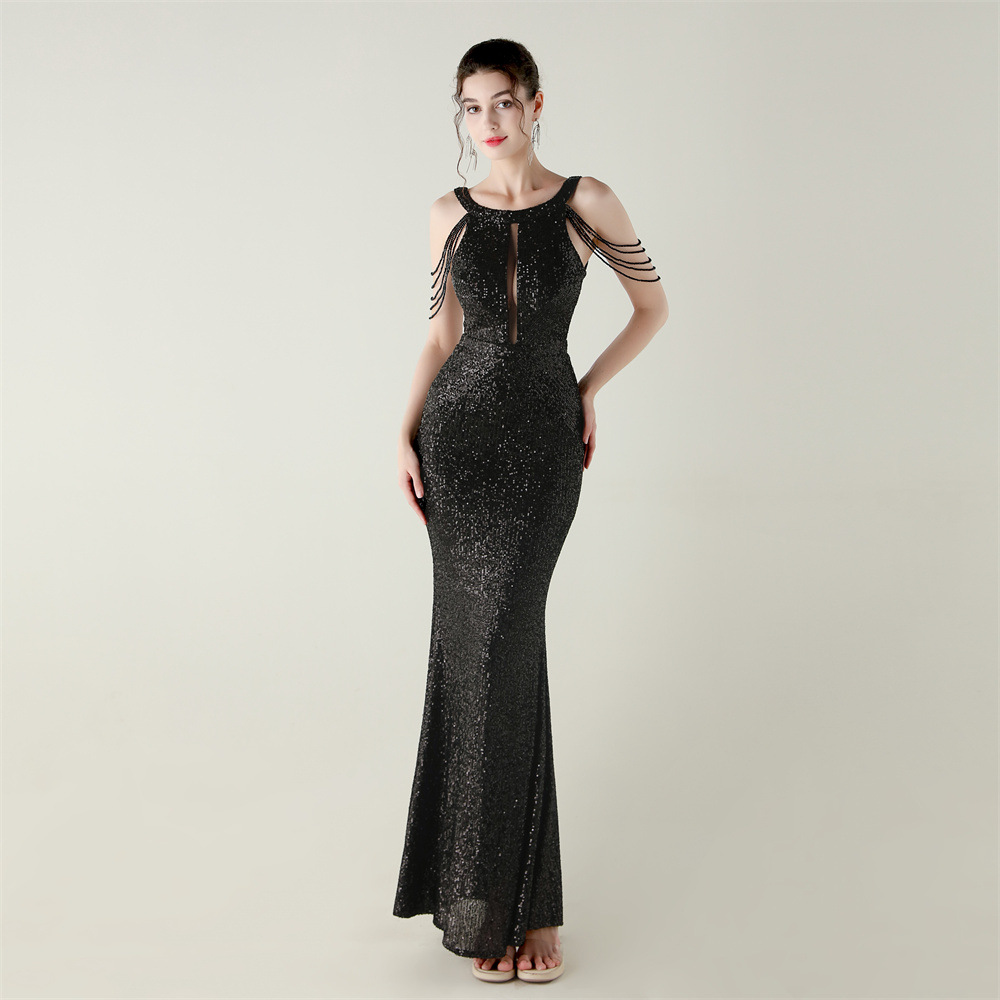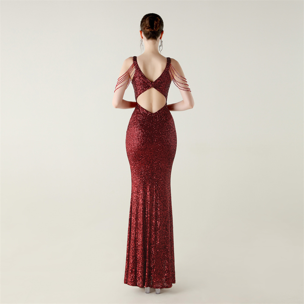 Sequin & Polyester Soft & Slim Long Evening Dress backless & off shoulder patchwork PC