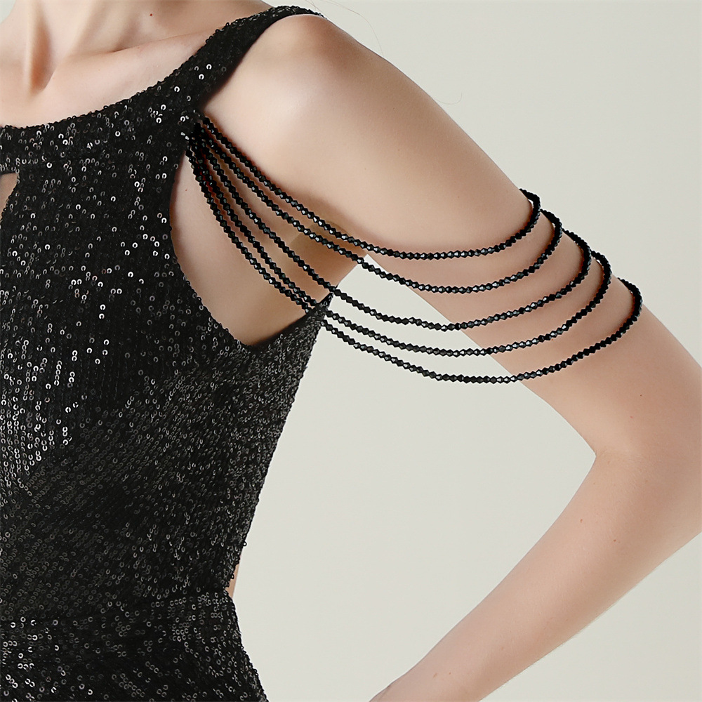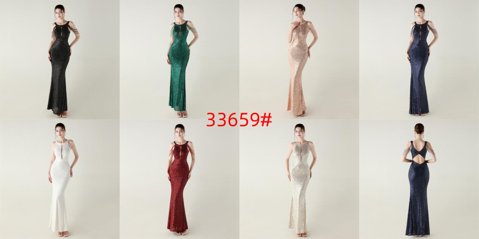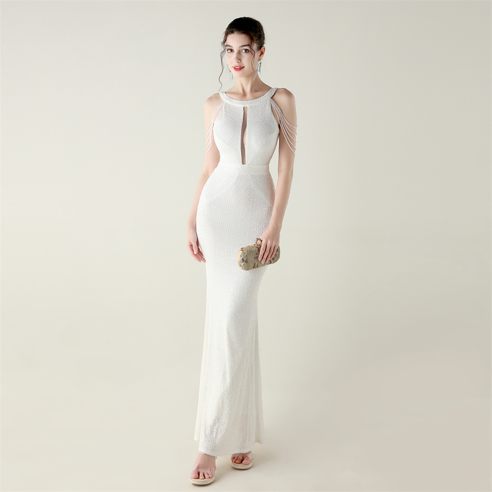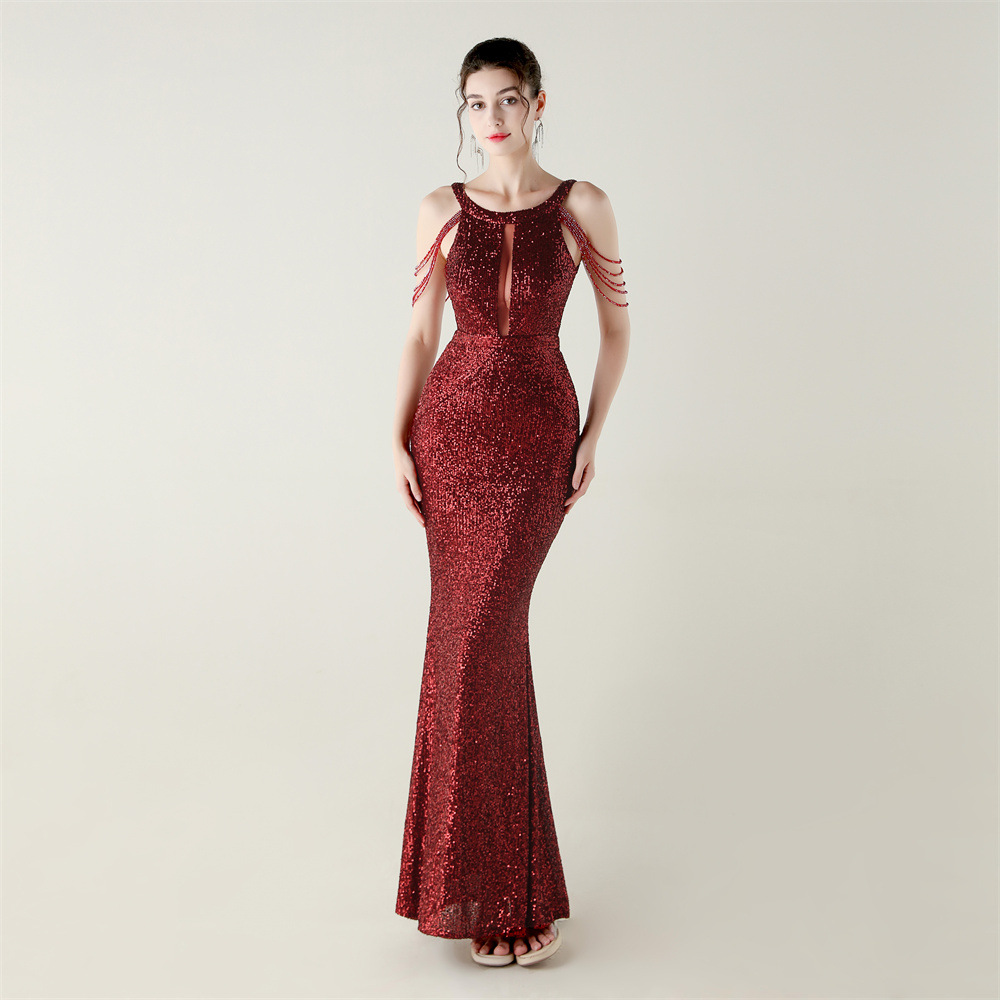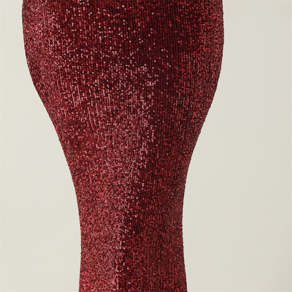 Sequin & Polyester Soft & Slim Long Evening Dress backless & off shoulder patchwork PC