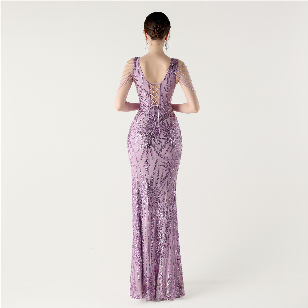 Sequin & Polyester Slim Long Evening Dress side slit PC