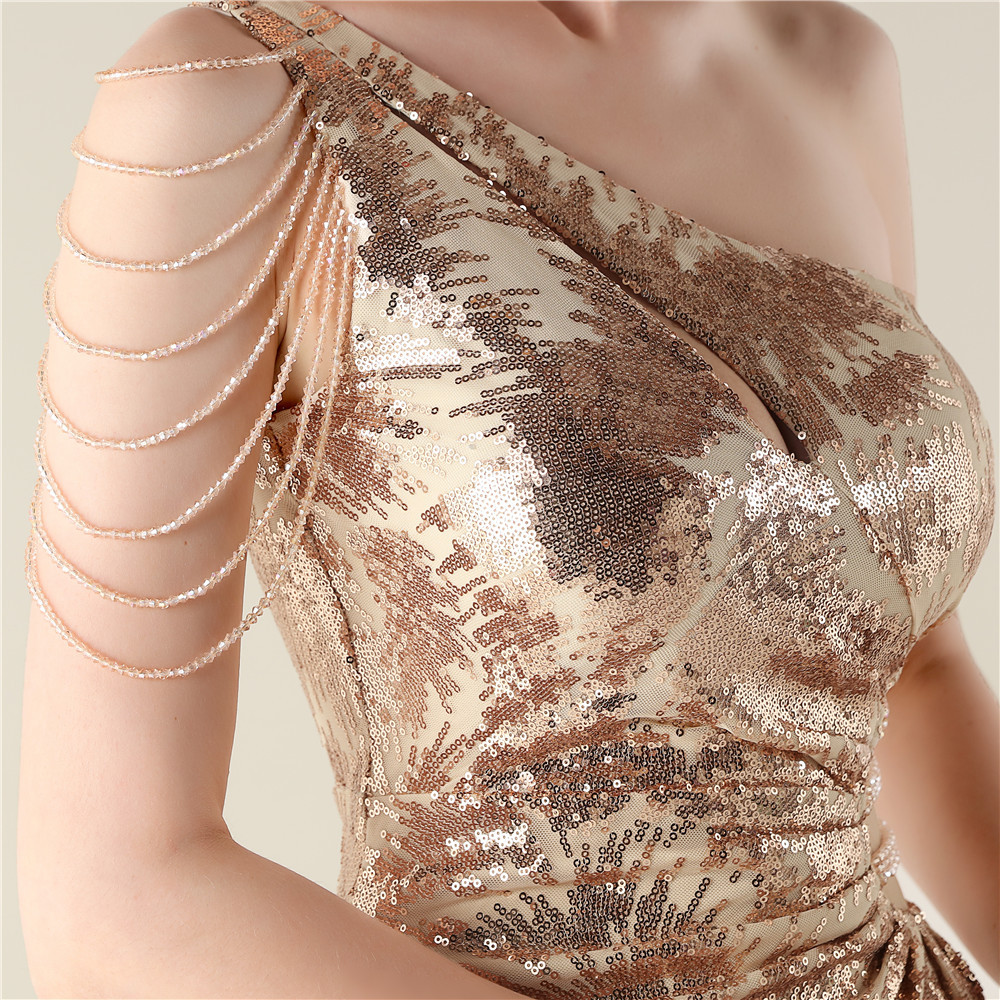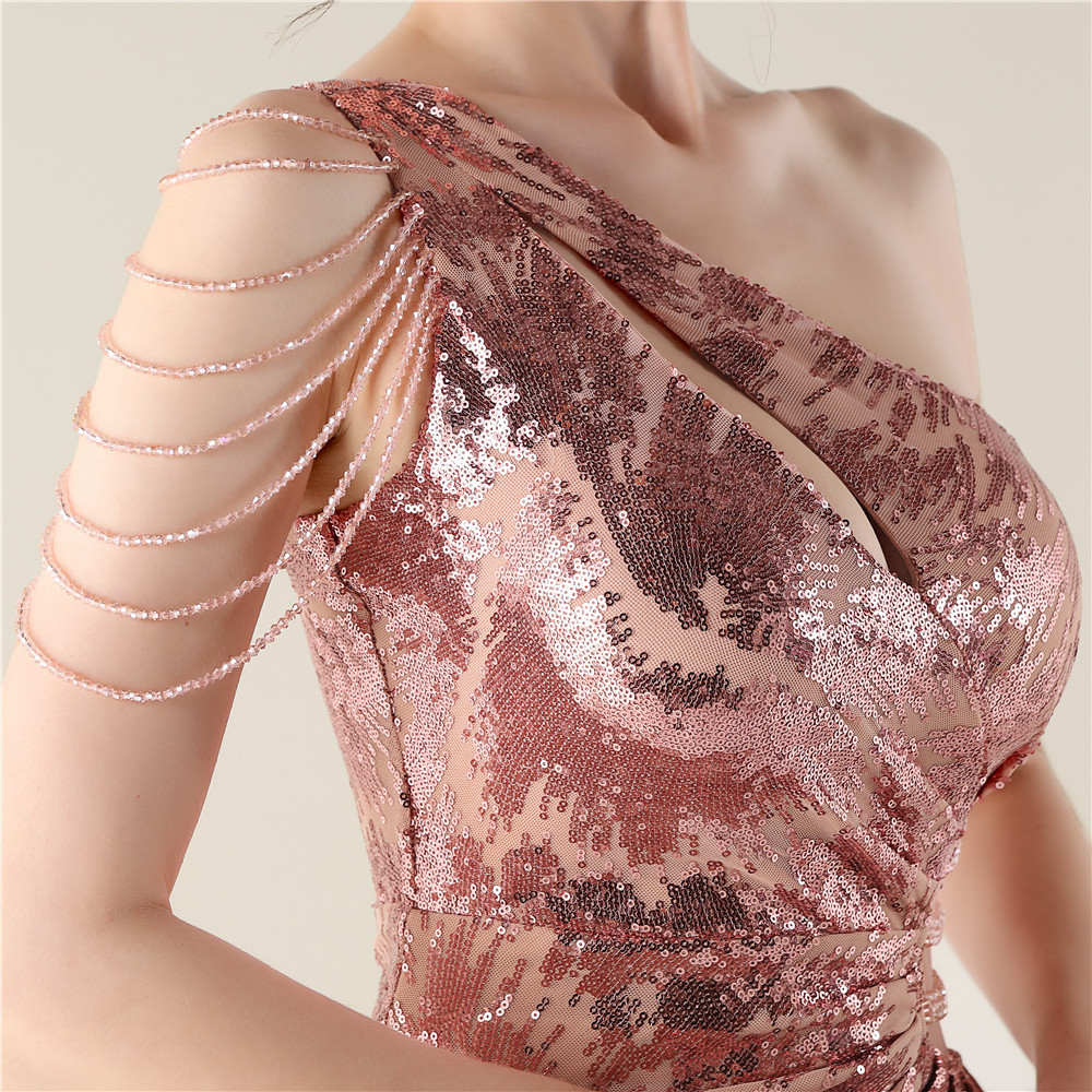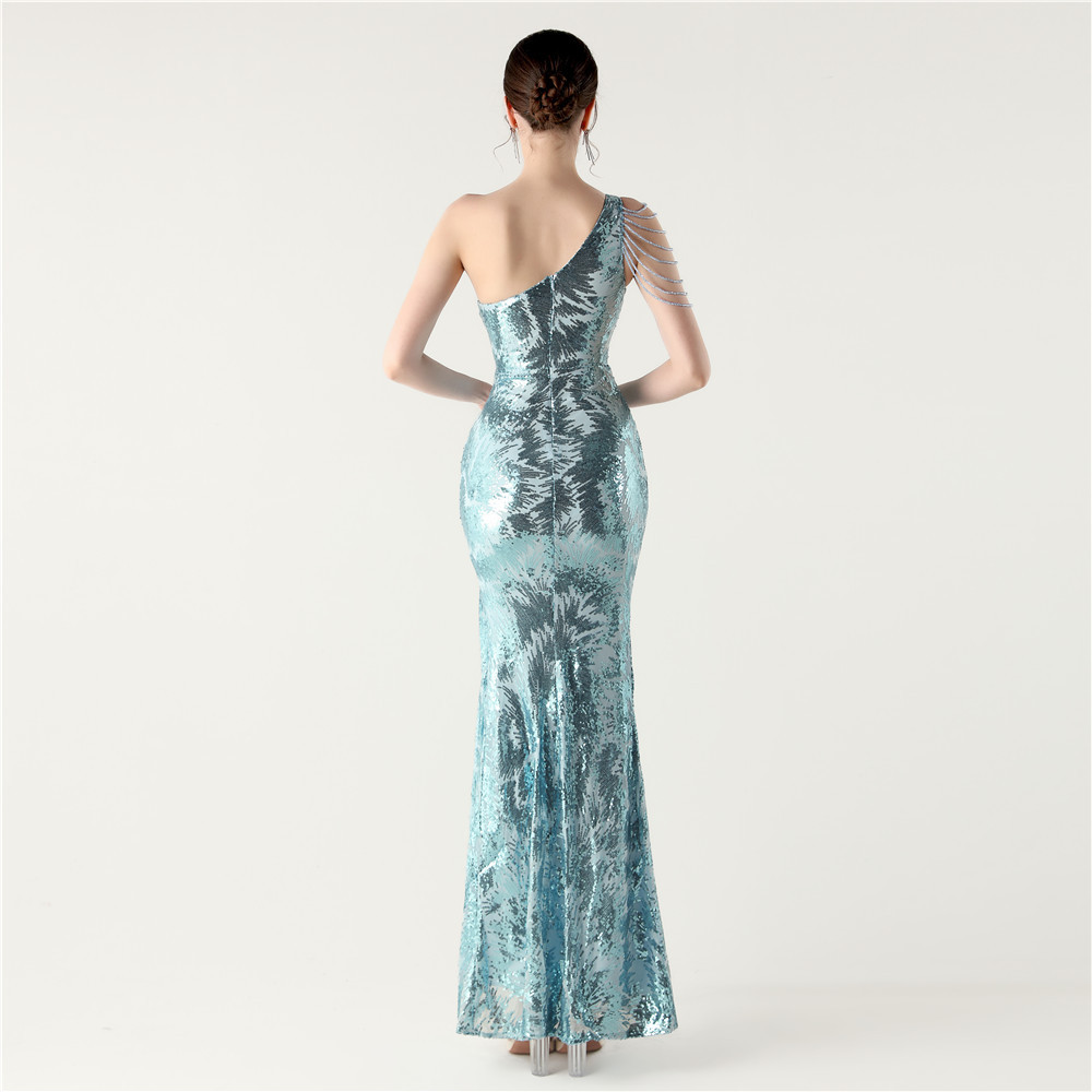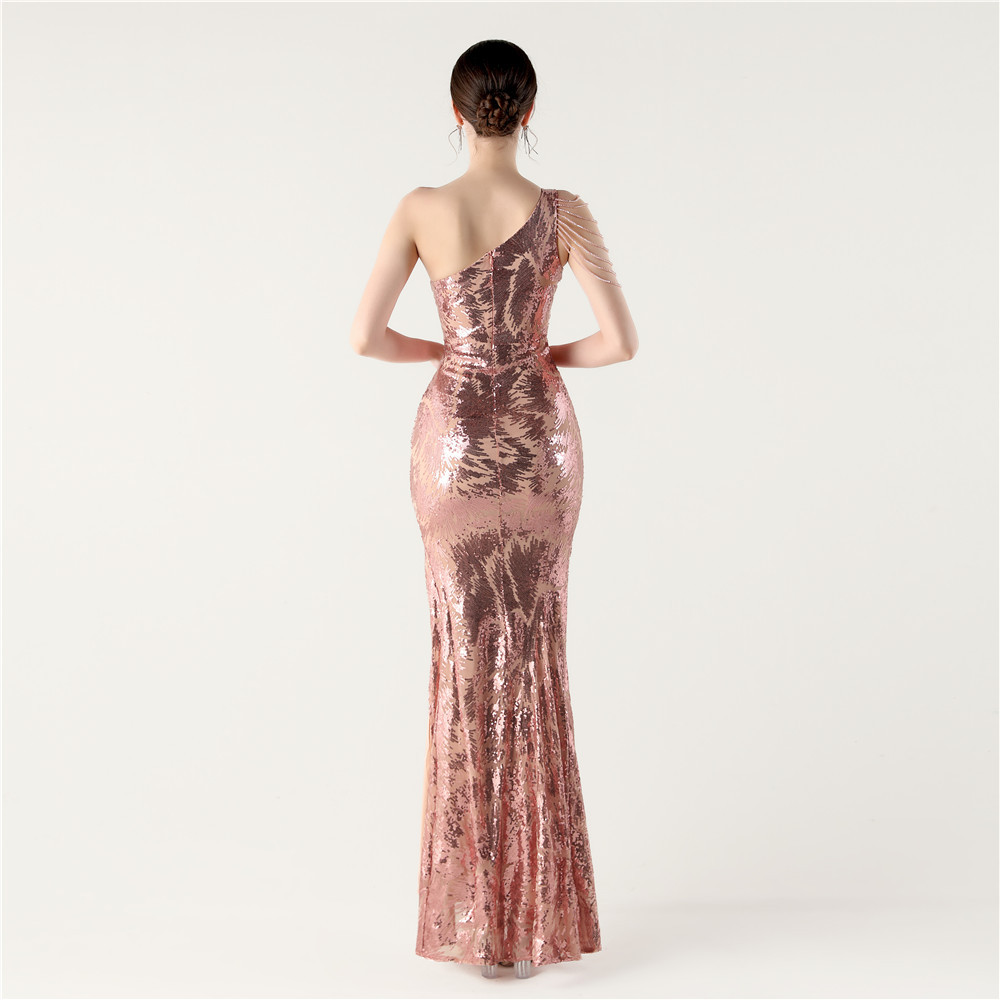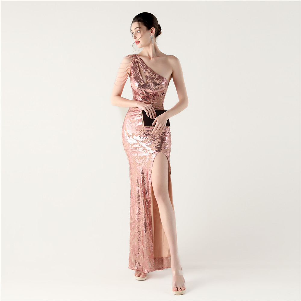 Sequin & Polyester Slim Long Evening Dress side slit PC