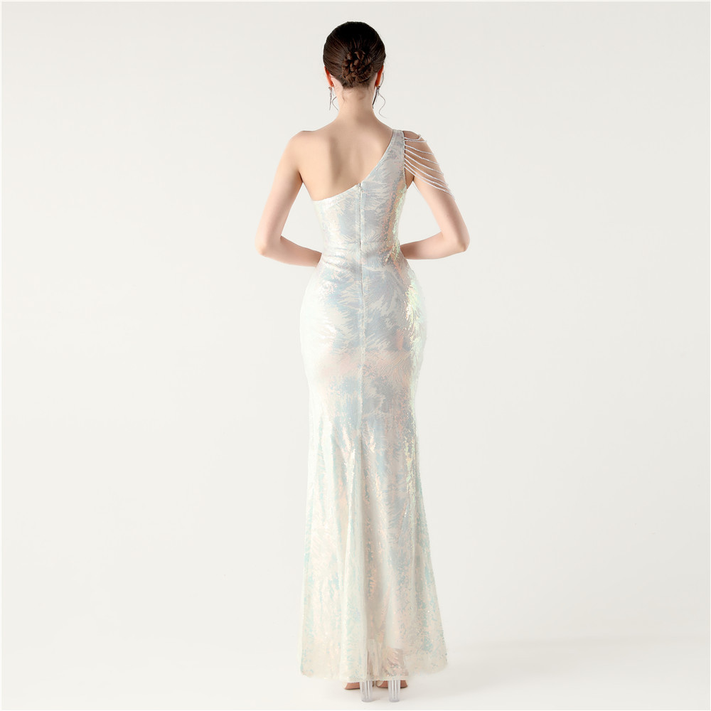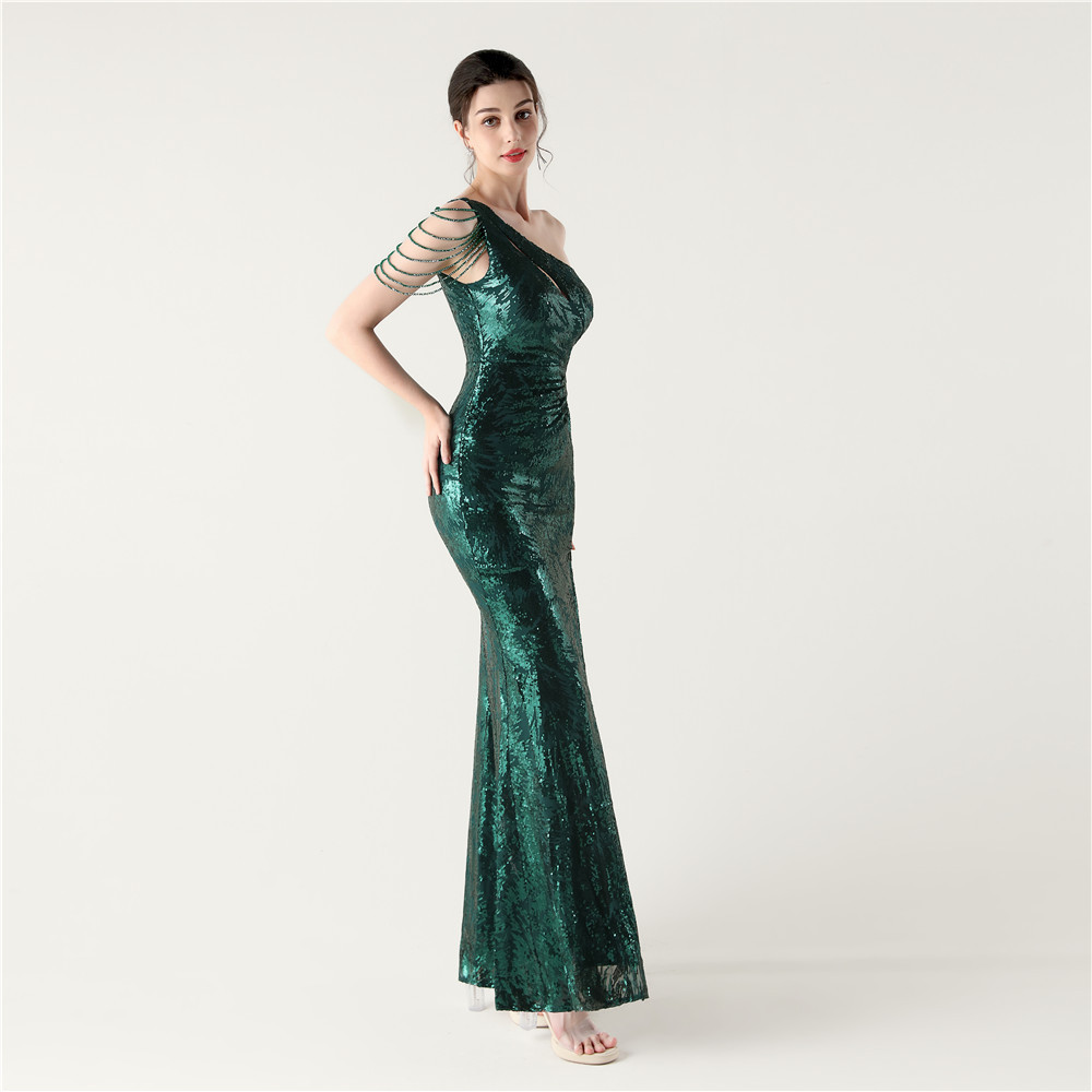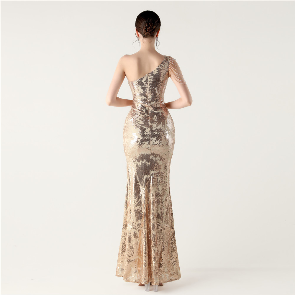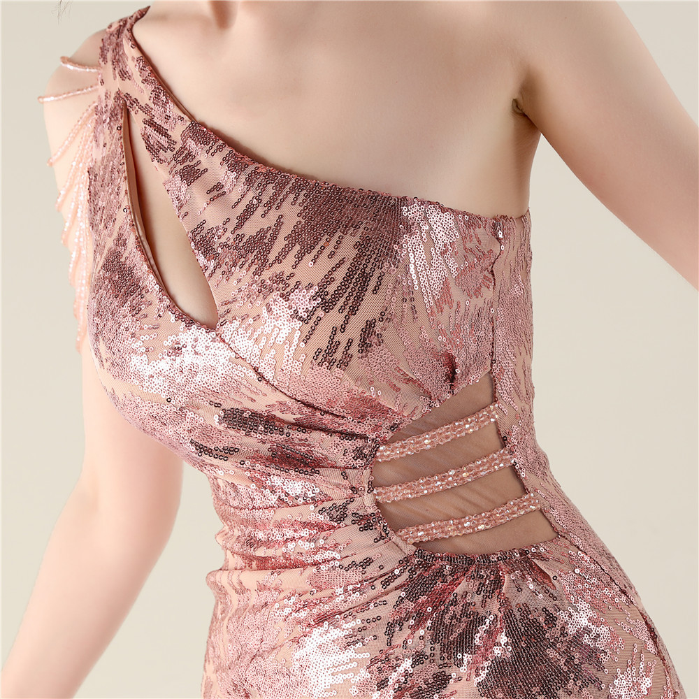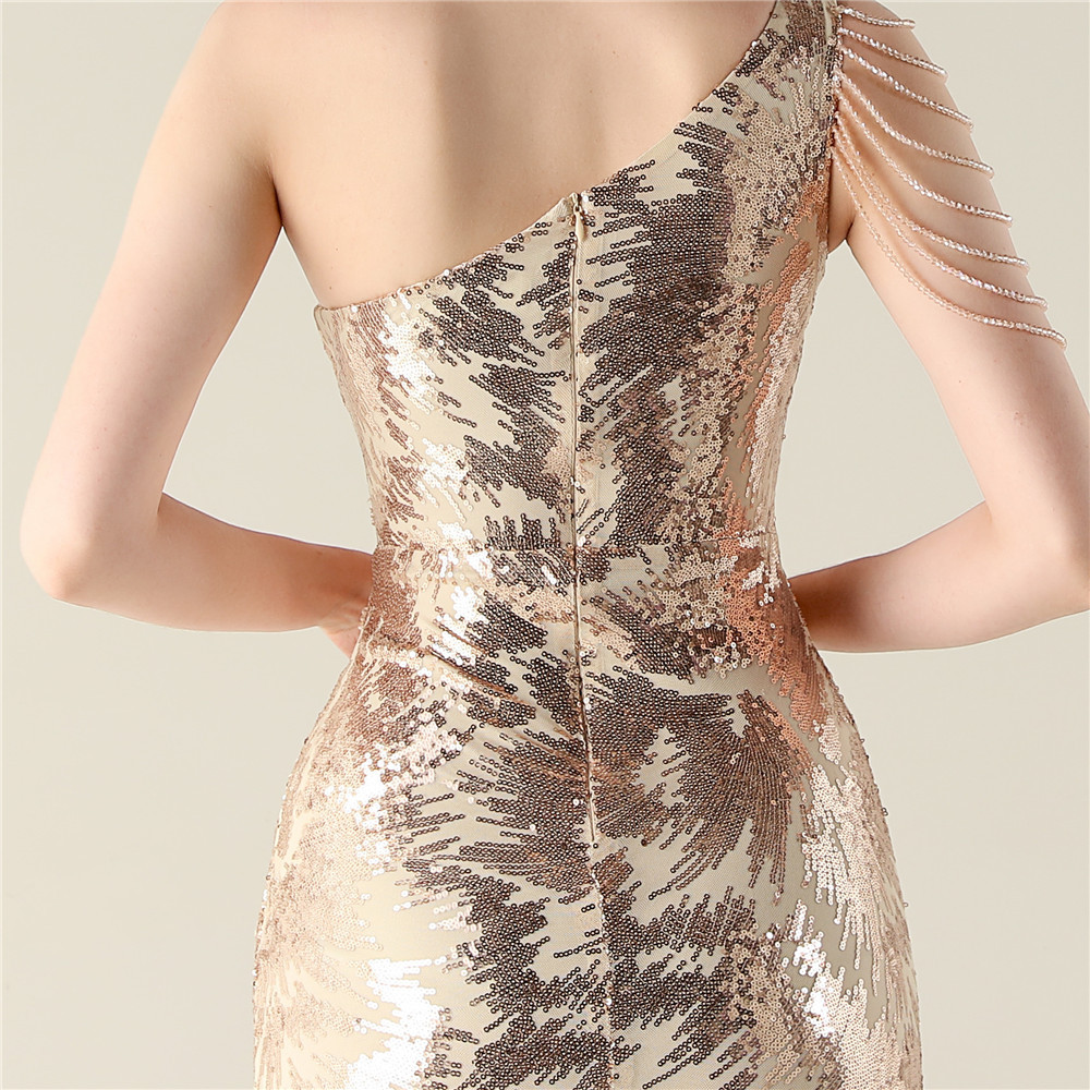 Sequin & Polyester Slim Long Evening Dress side slit PC