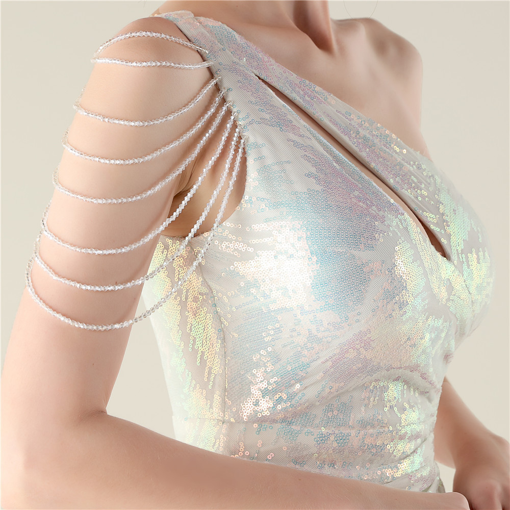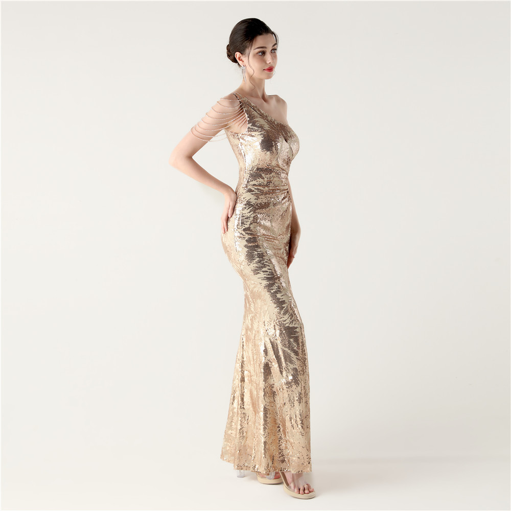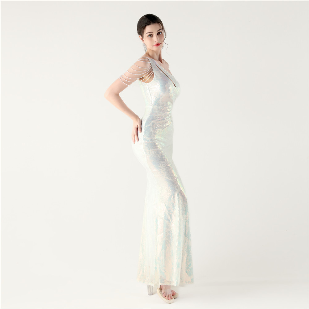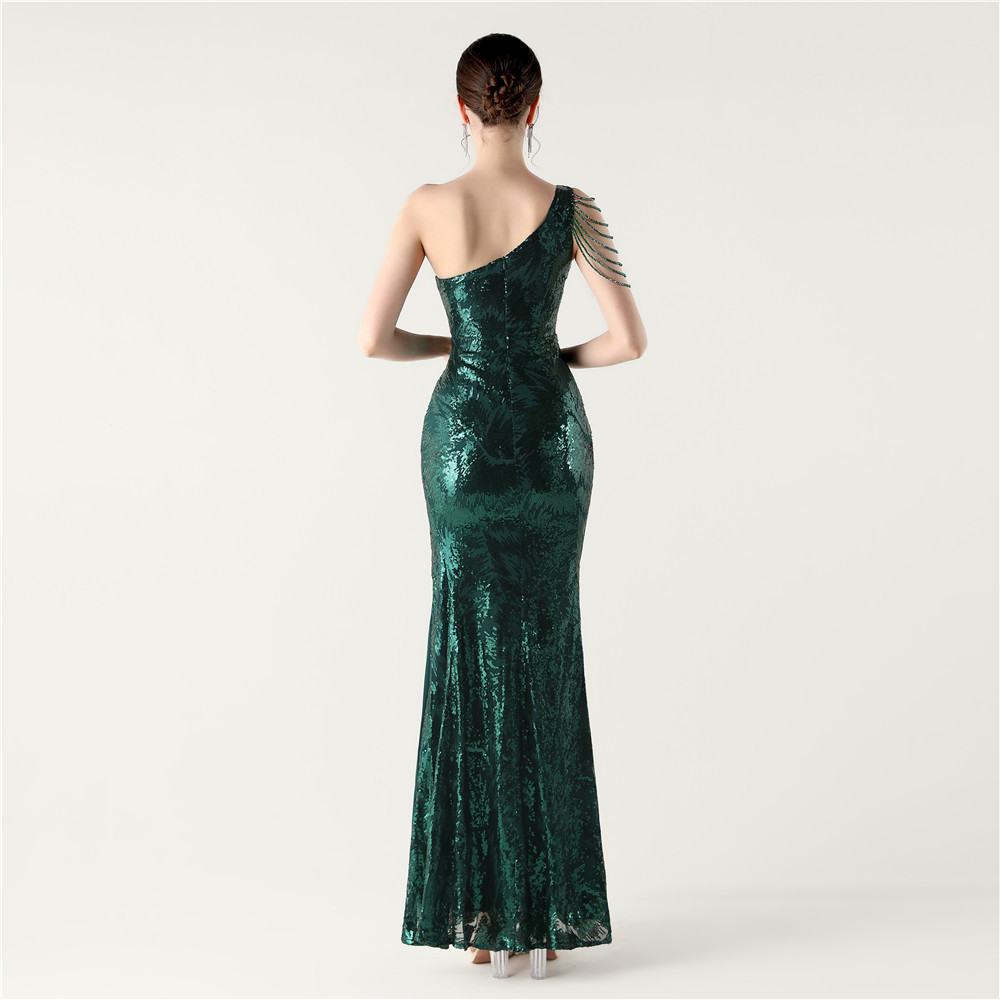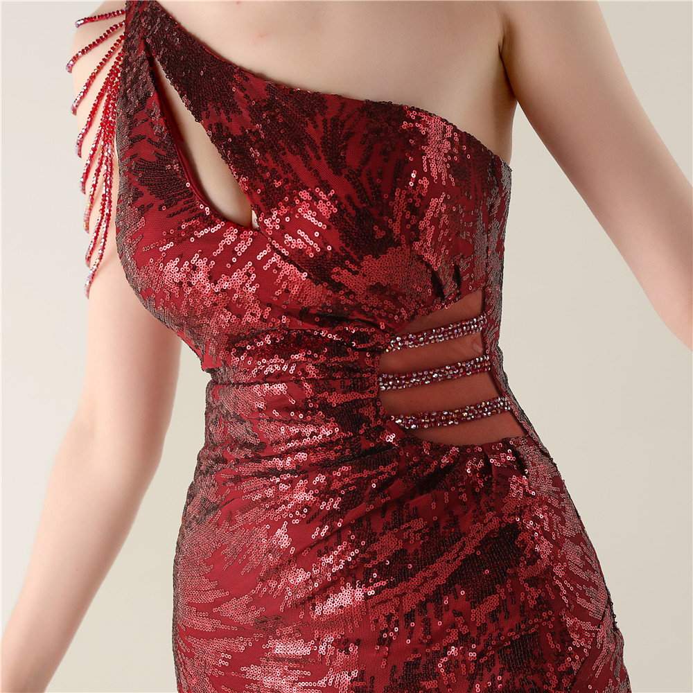 Sequin & Polyester Slim Long Evening Dress side slit PC
