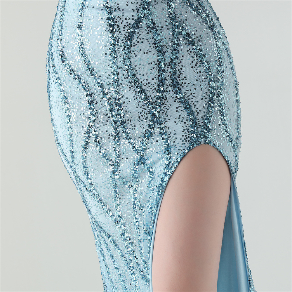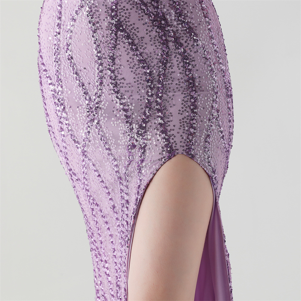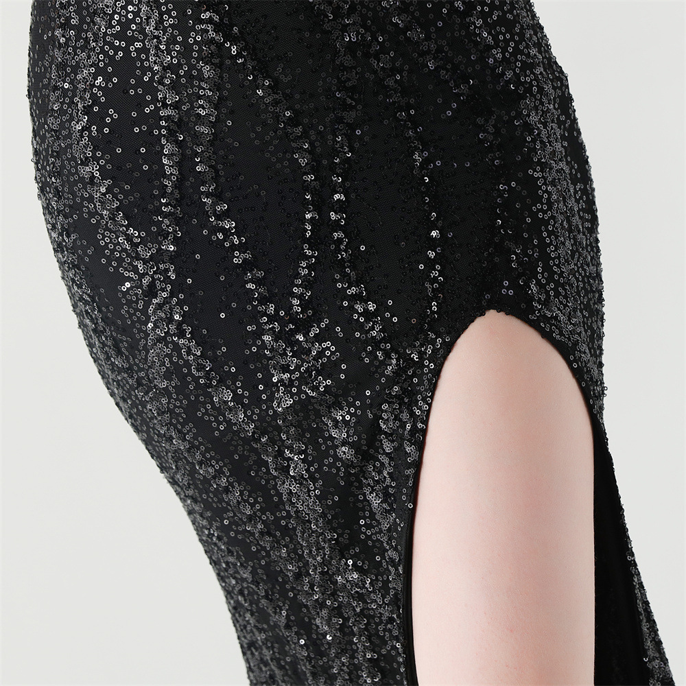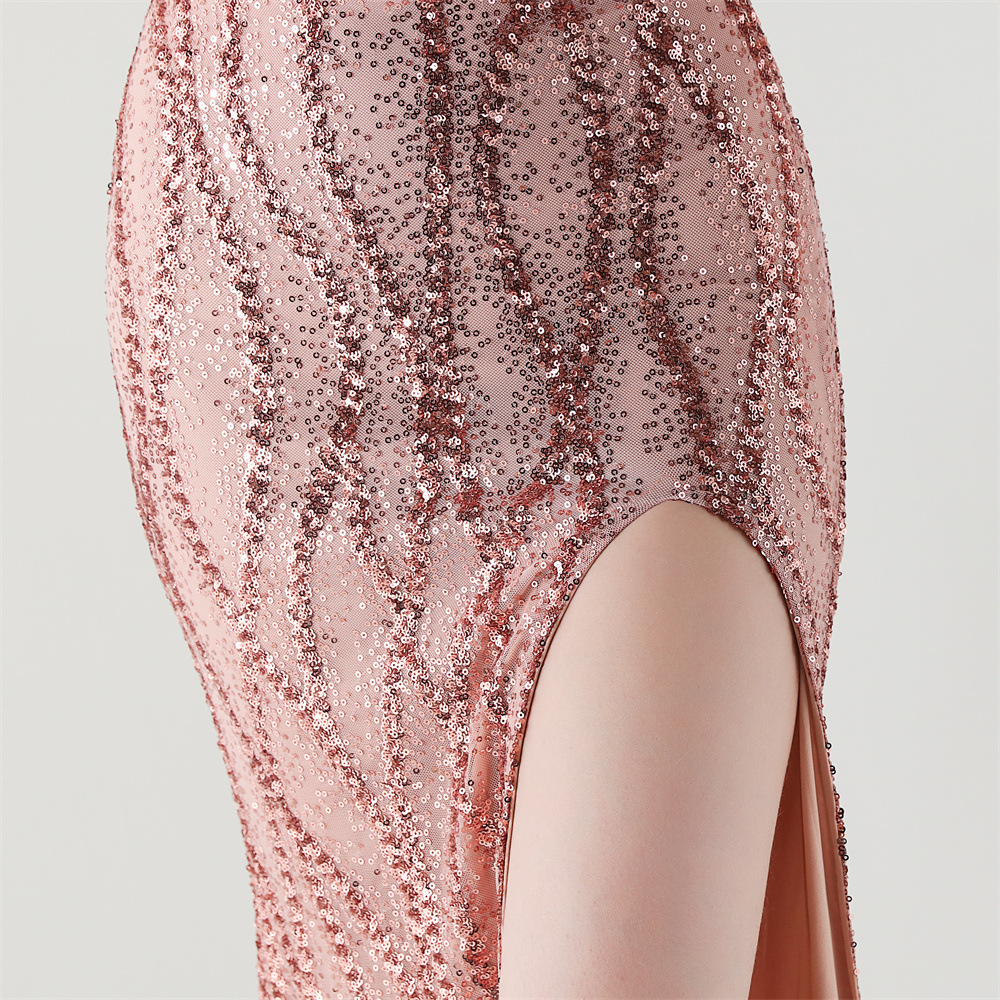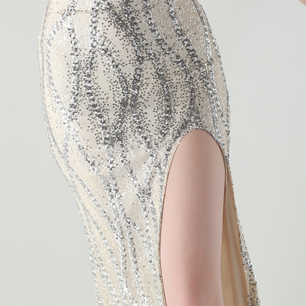 Sequin & Polyester Slim Long Evening Dress side slit PC