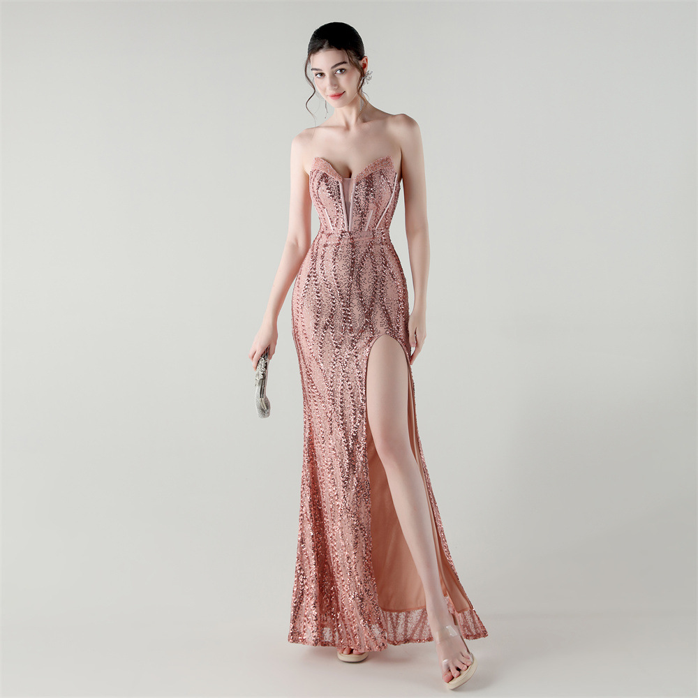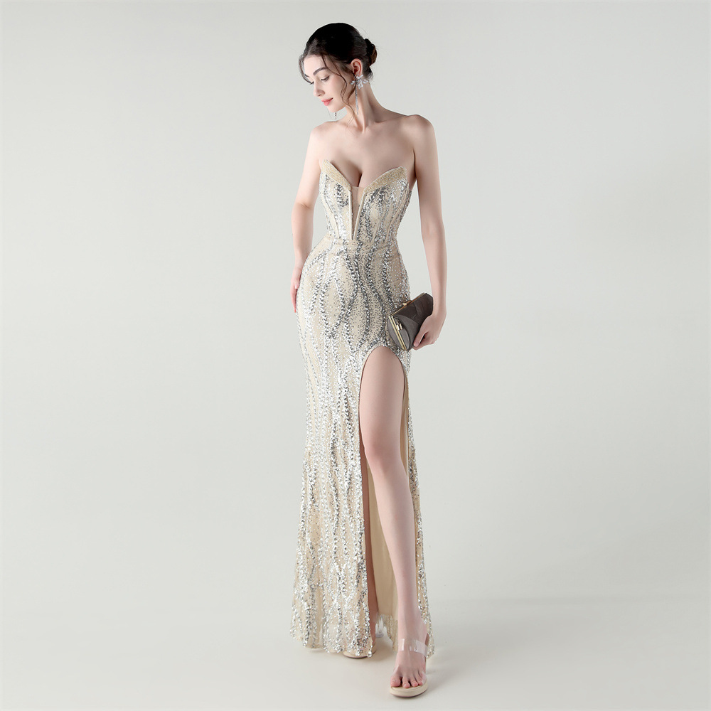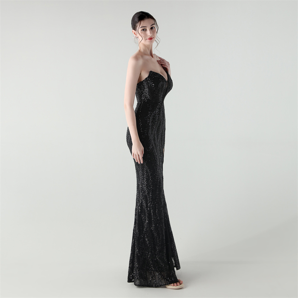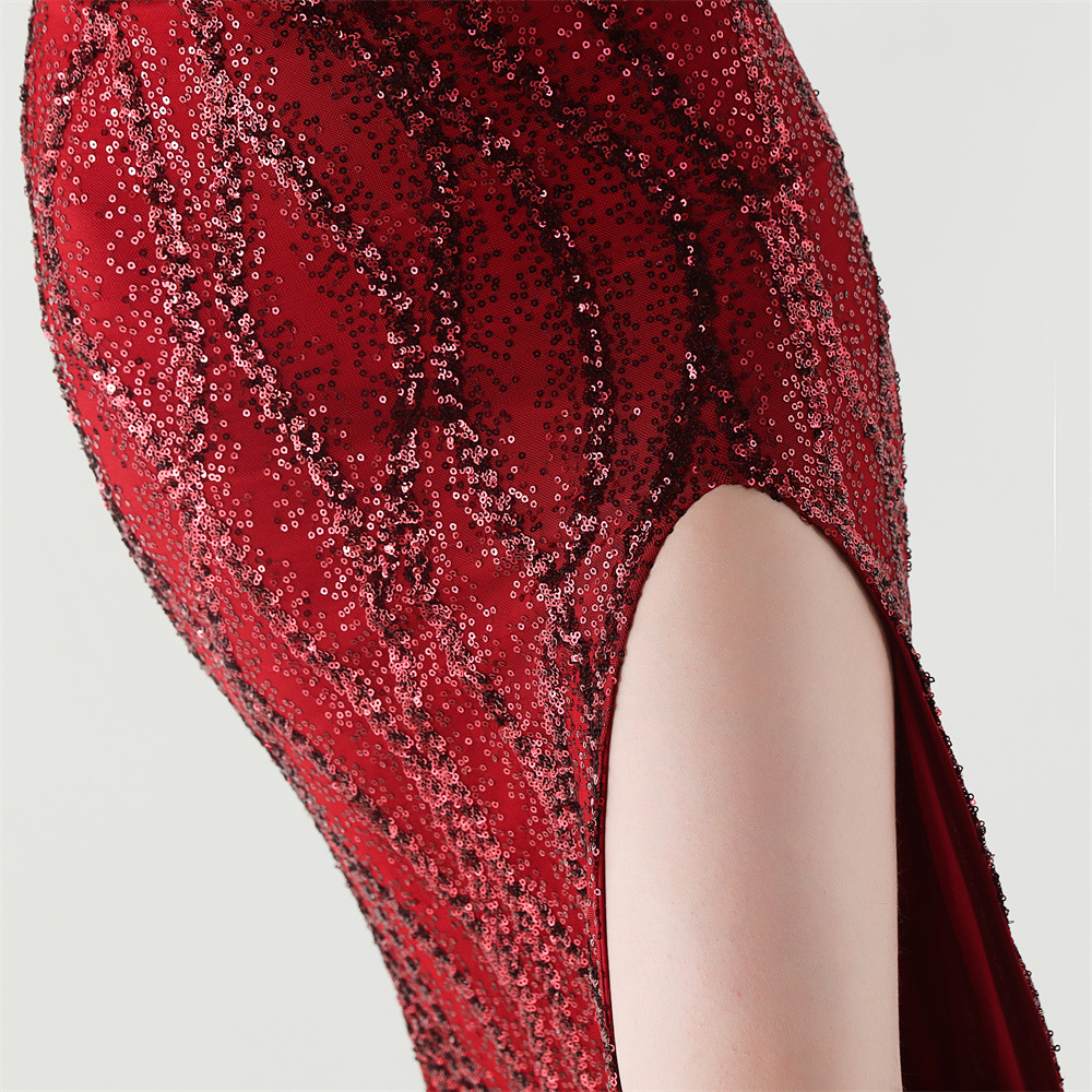Sequin & Polyester Slim Long Evening Dress side slit PC