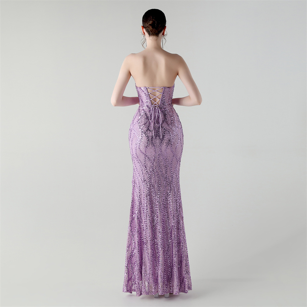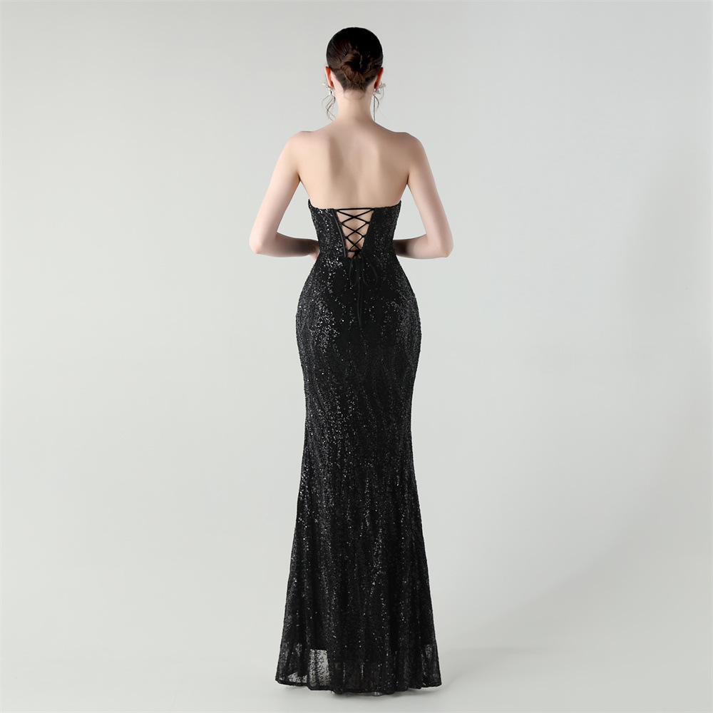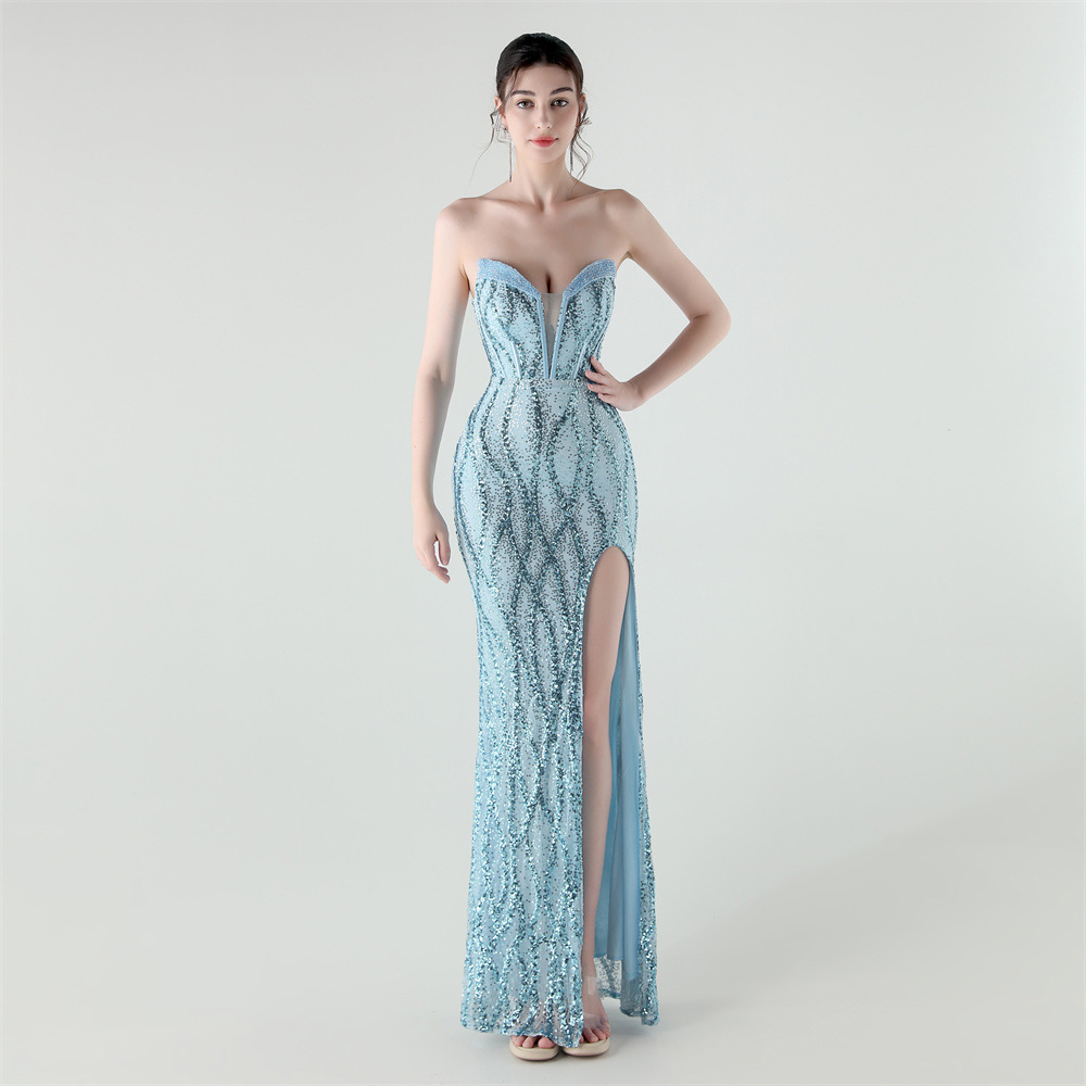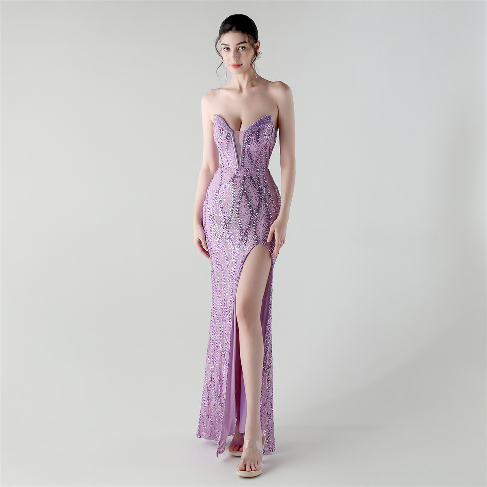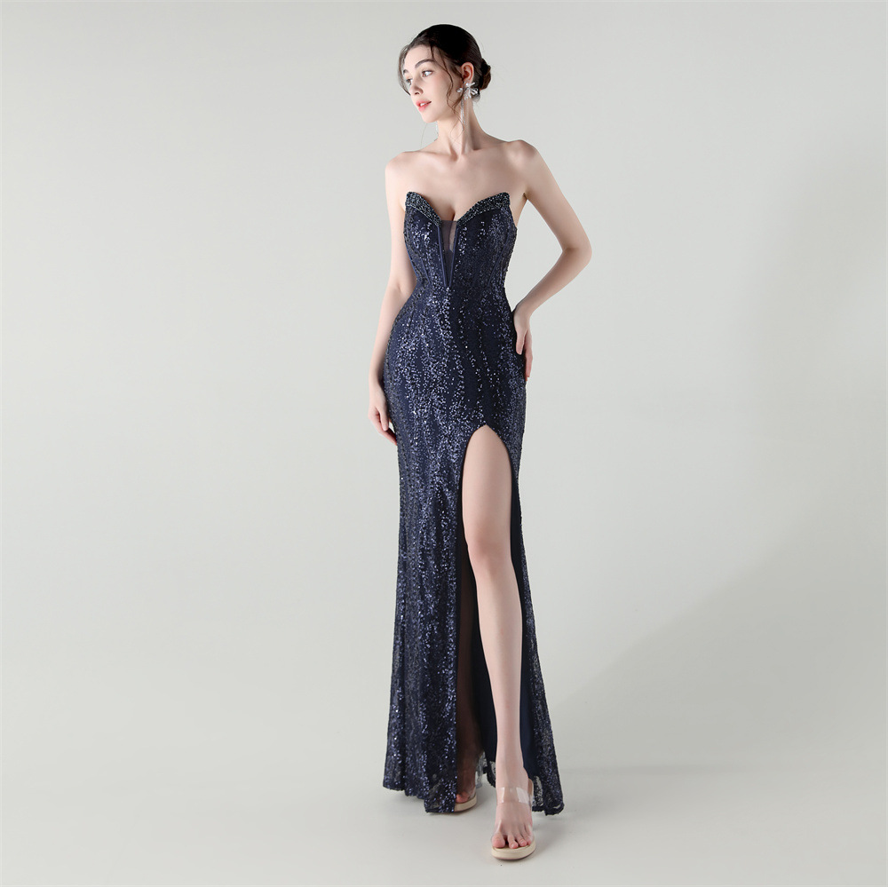 Sequin & Polyester Slim Long Evening Dress side slit PC