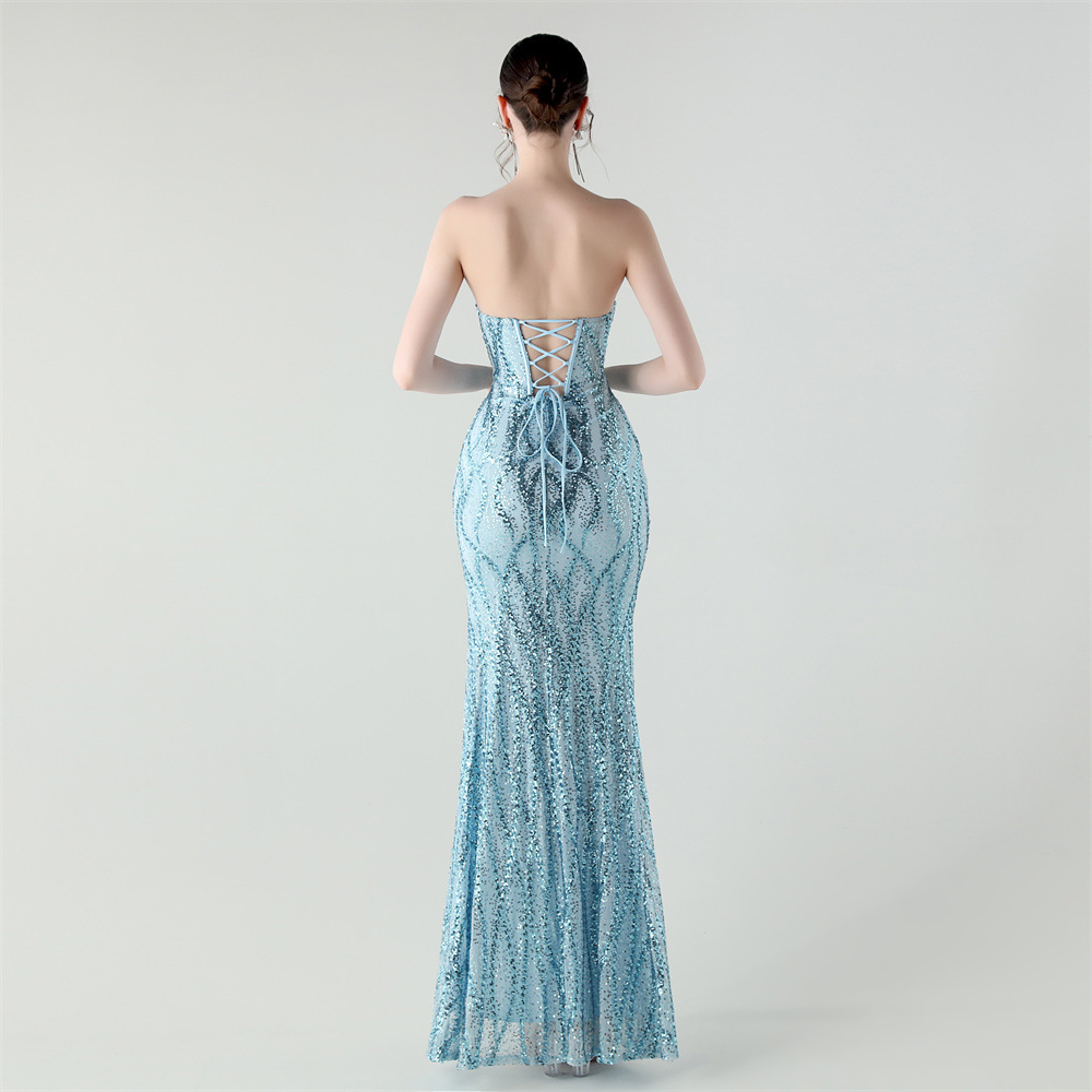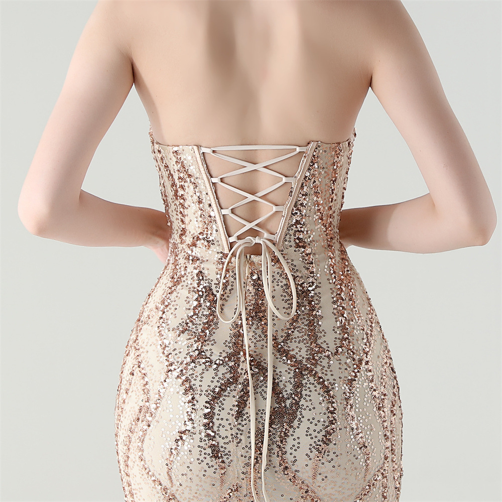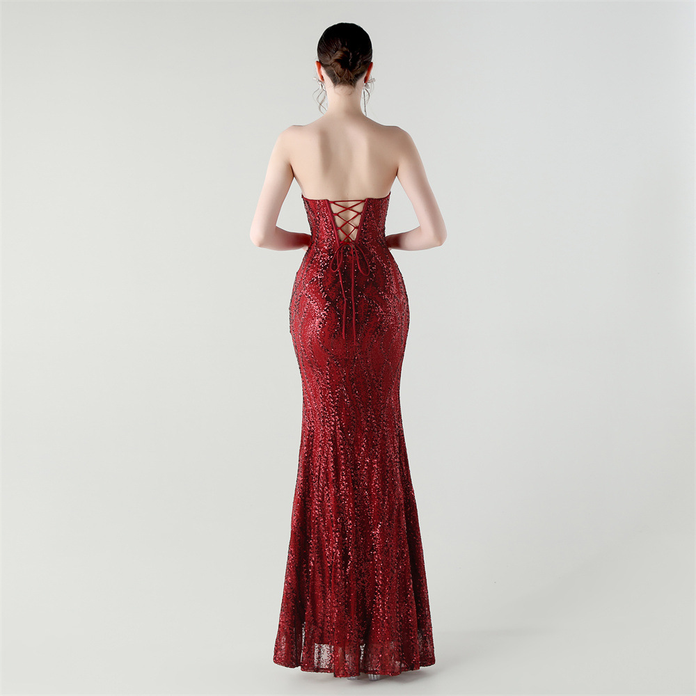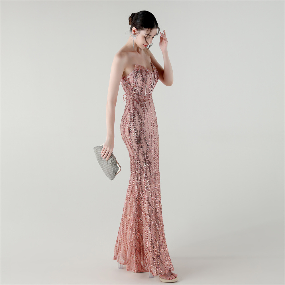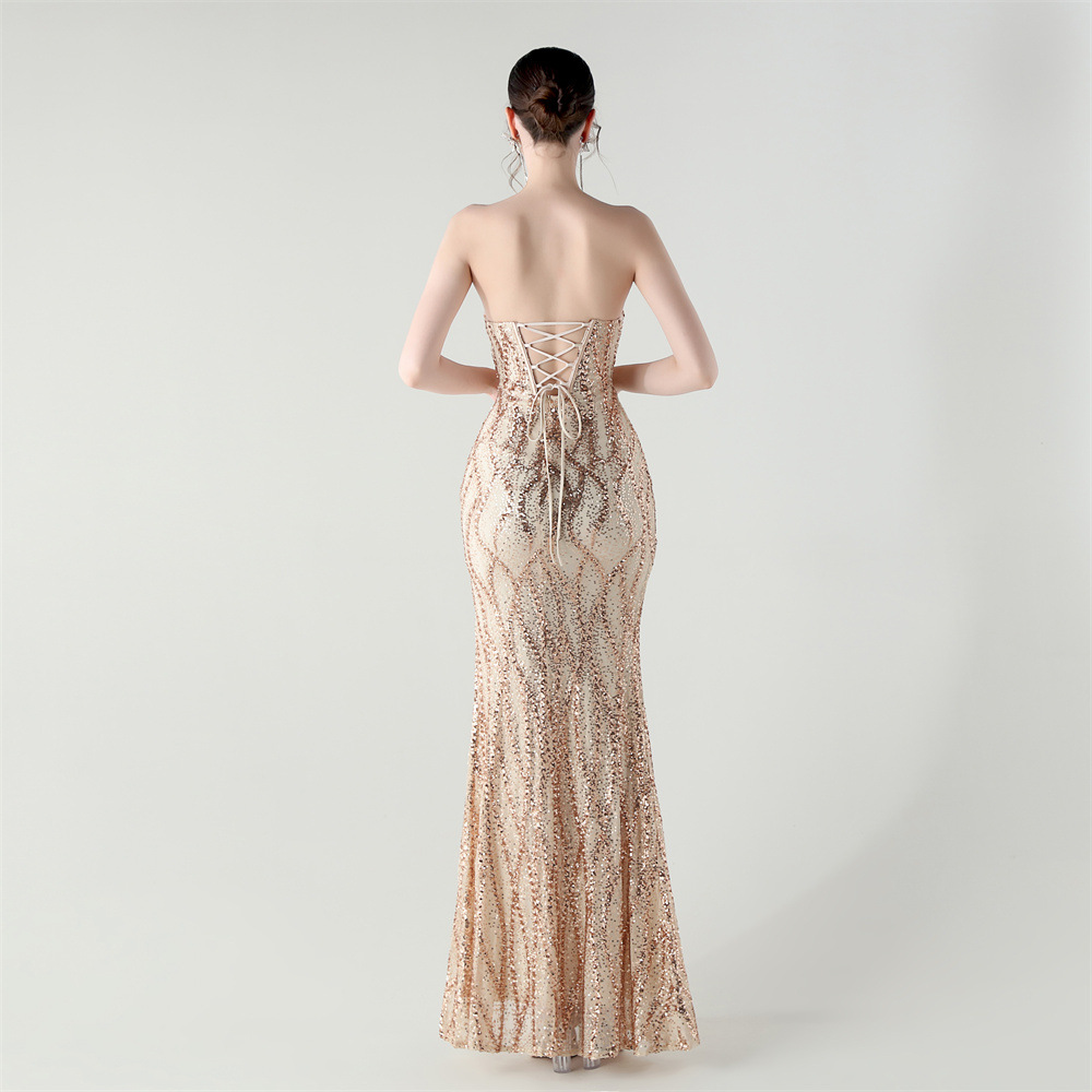 Sequin & Polyester Slim Long Evening Dress side slit PC