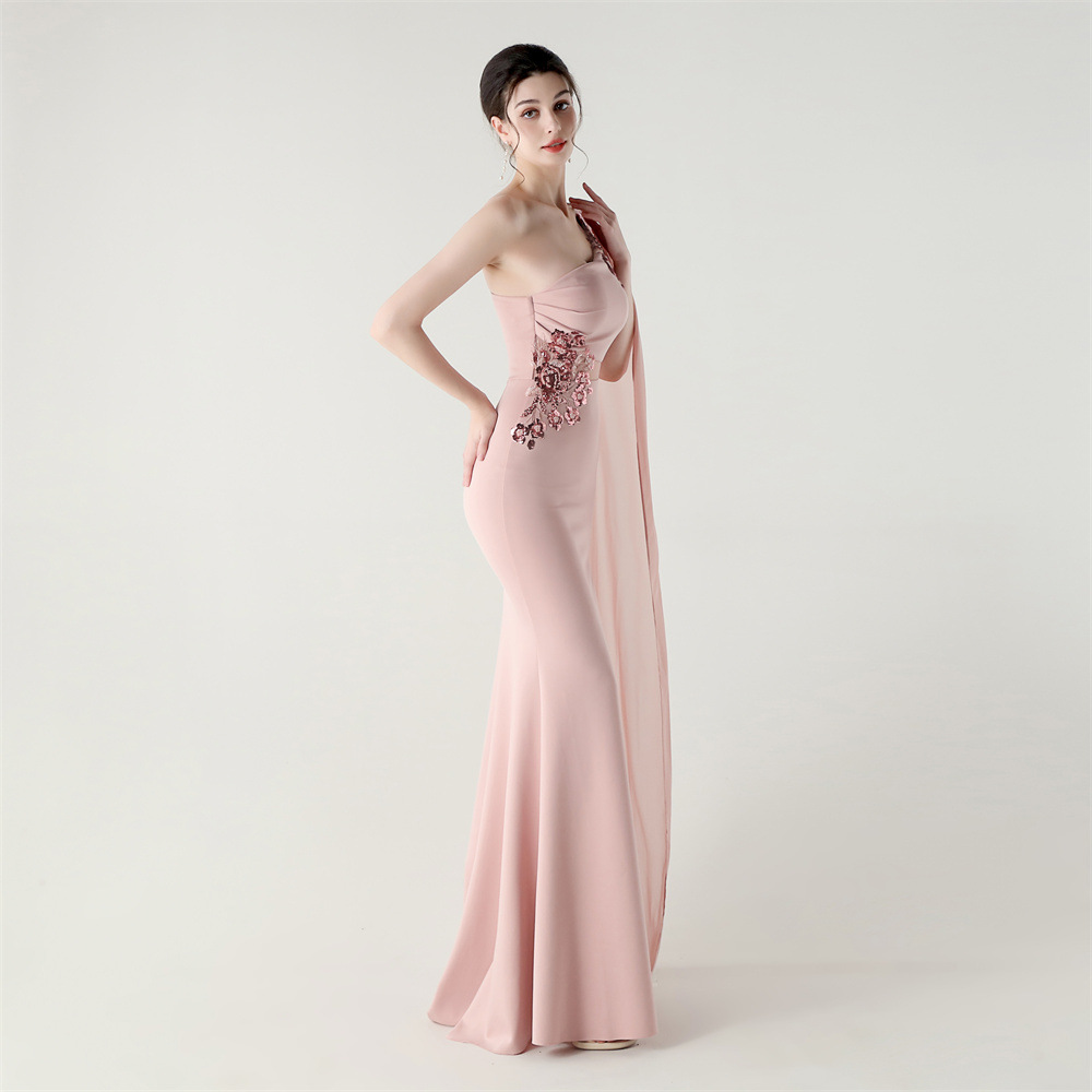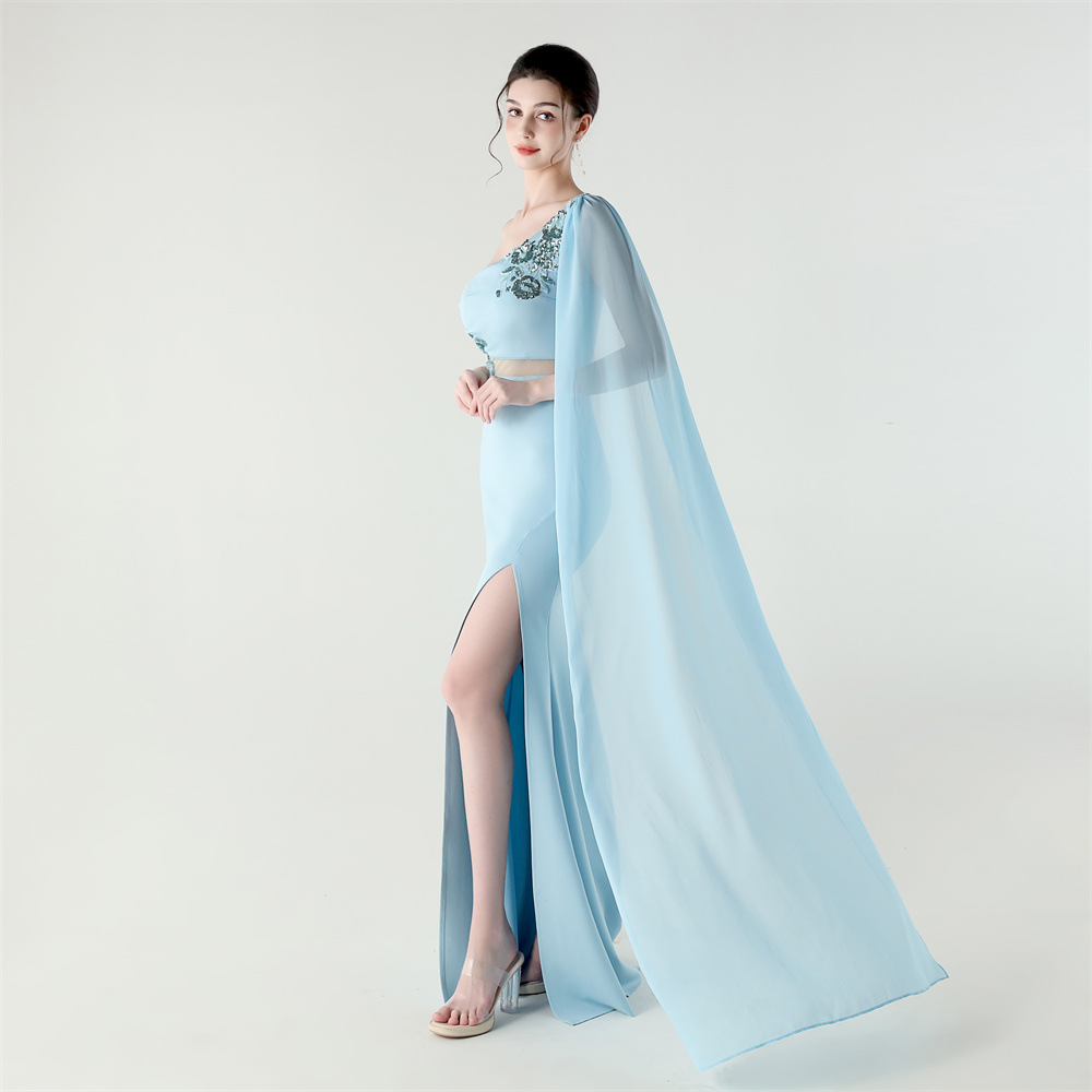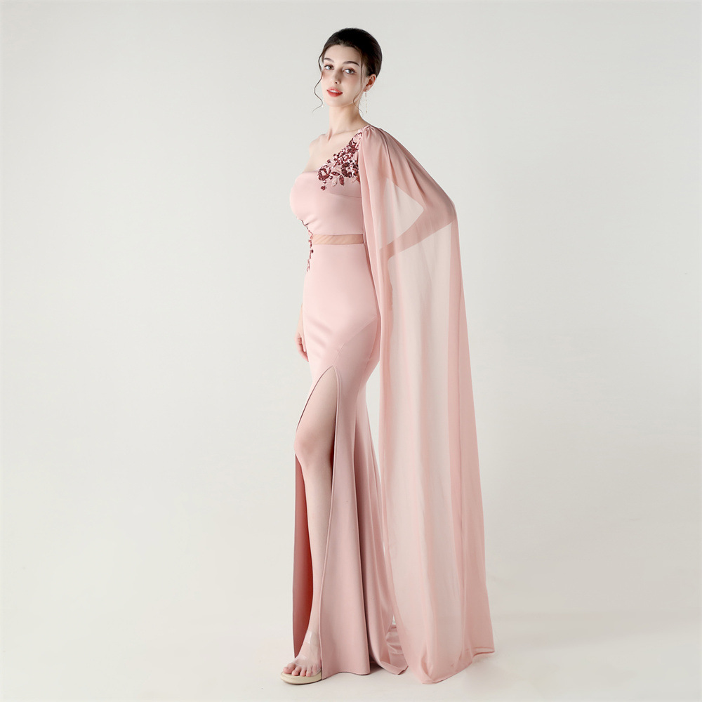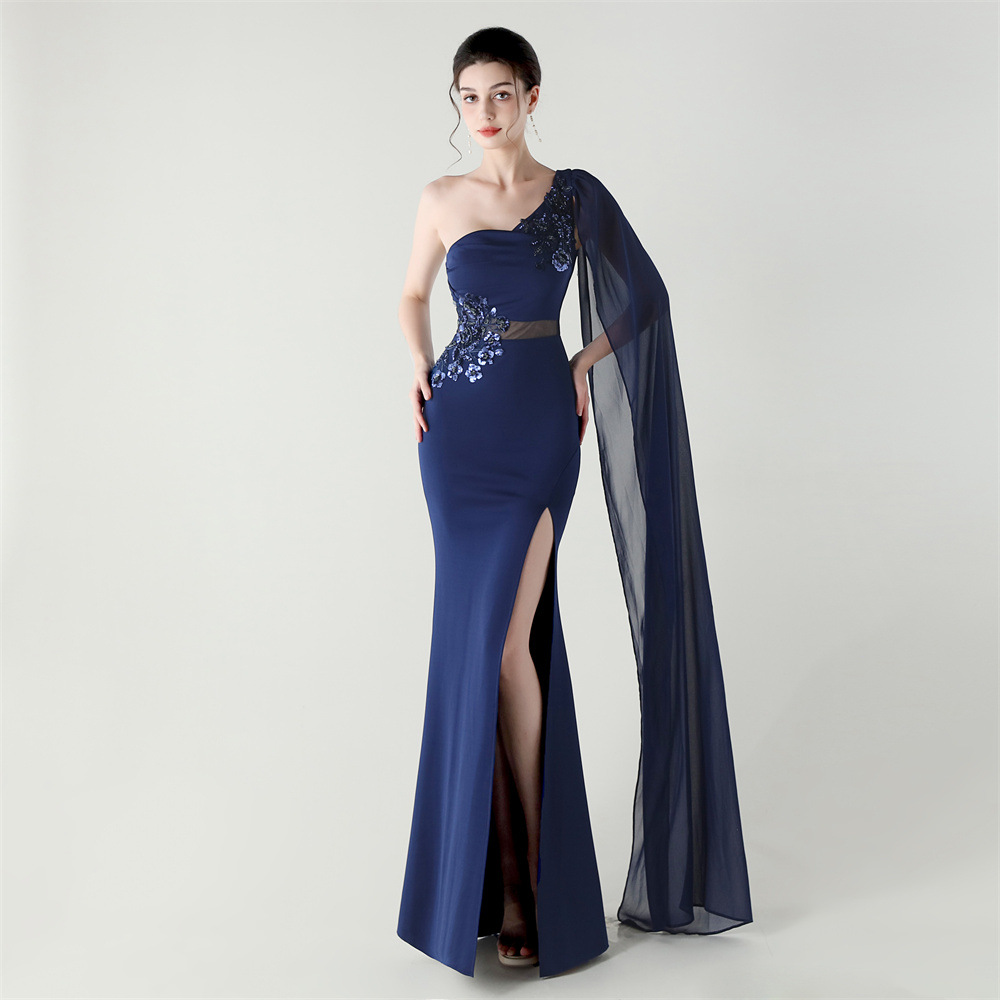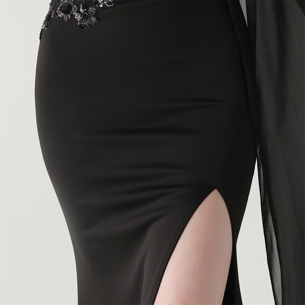 Sequin & Polyester Slim Long Evening Dress side slit PC