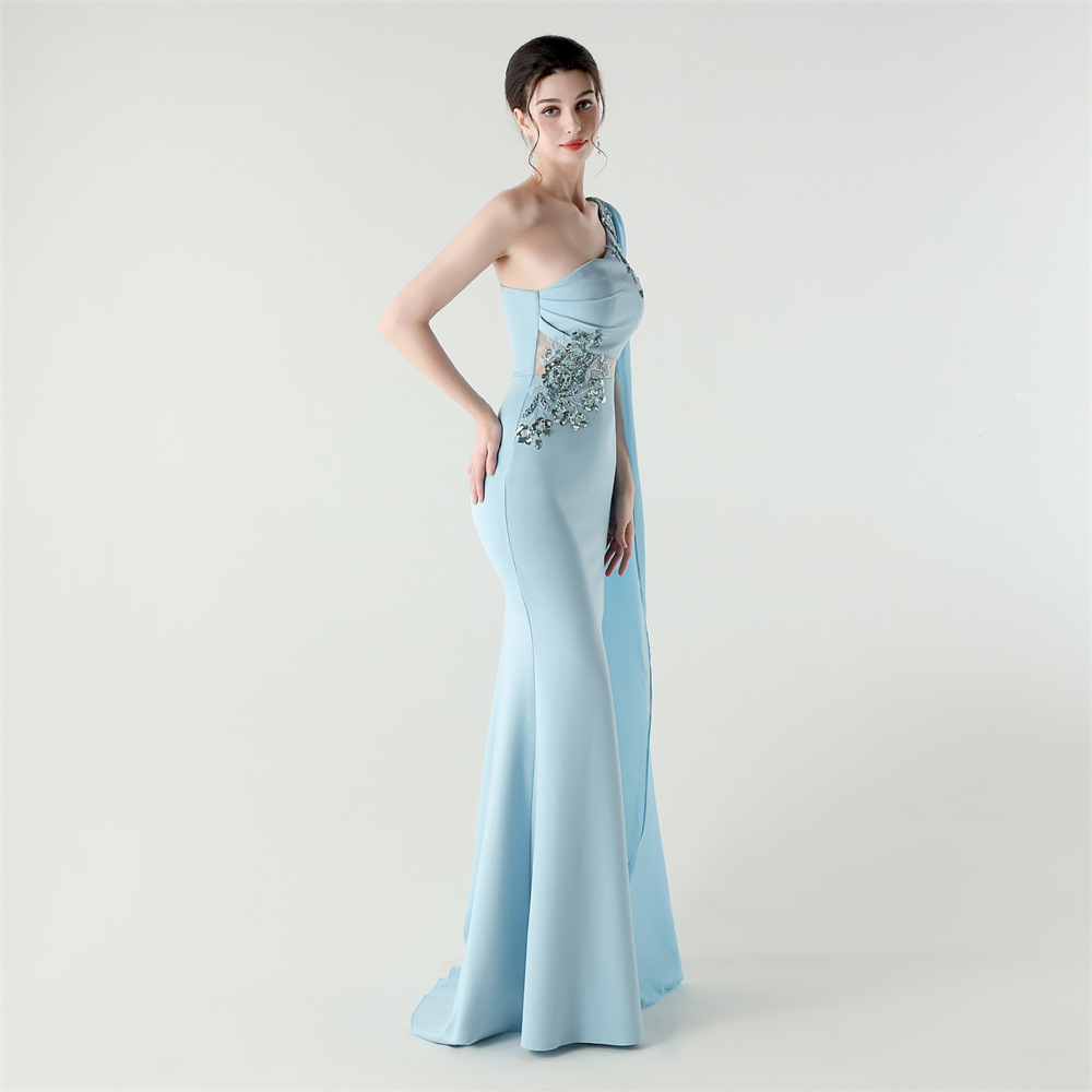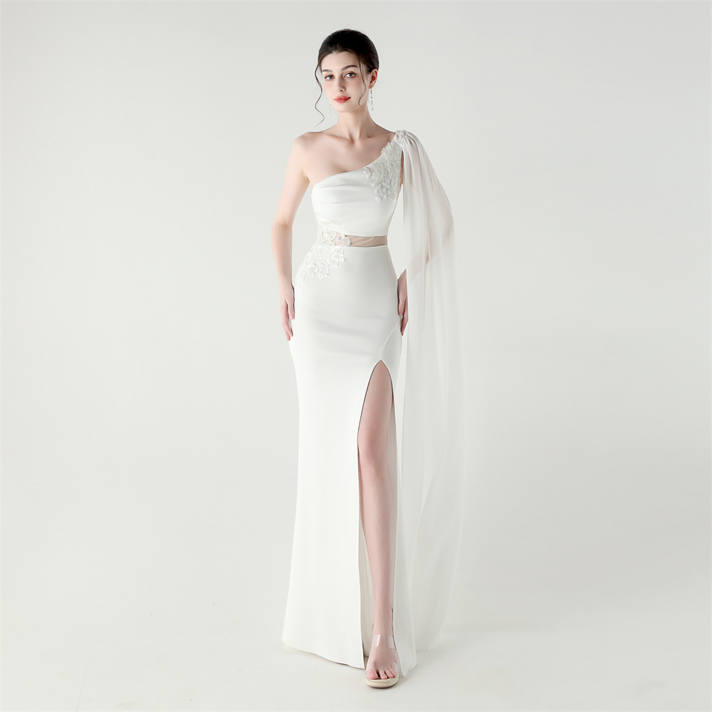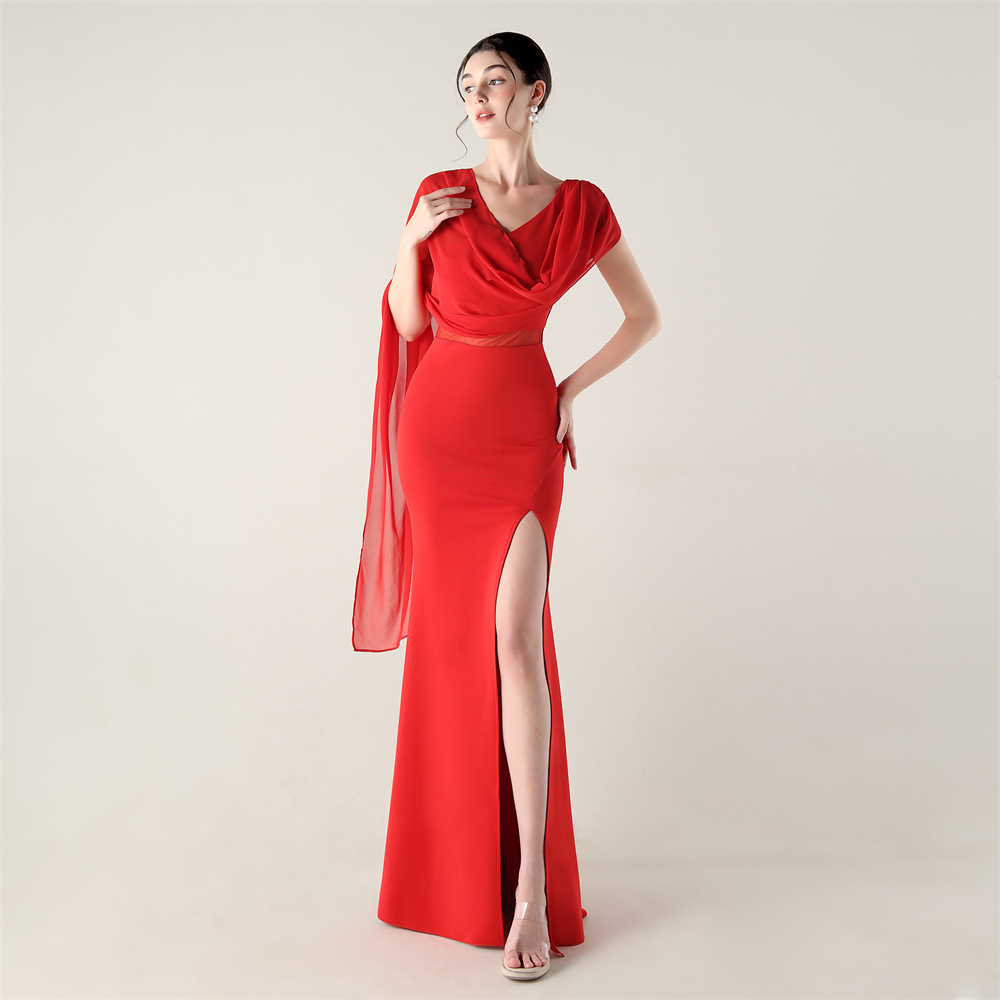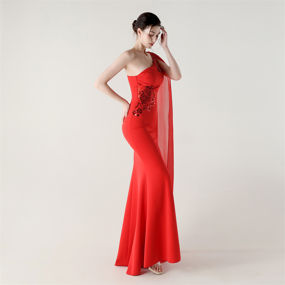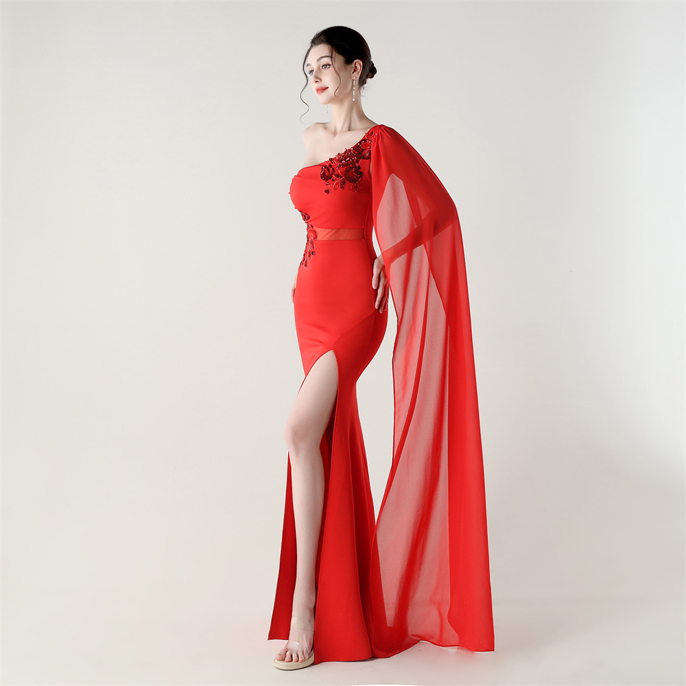 Sequin & Polyester Slim Long Evening Dress side slit PC