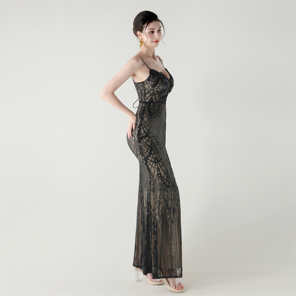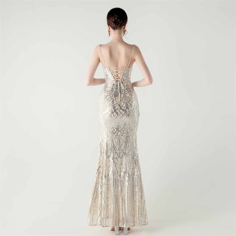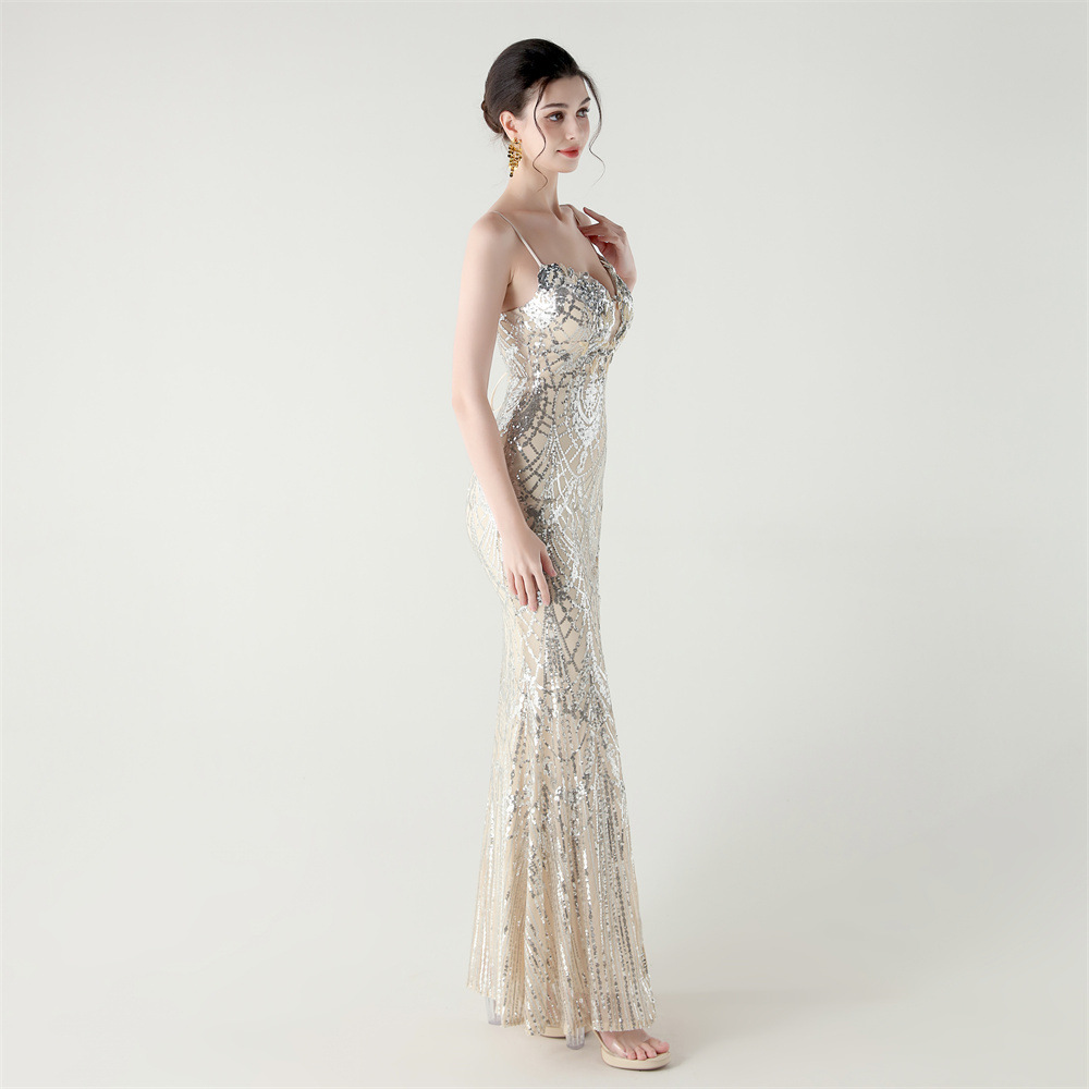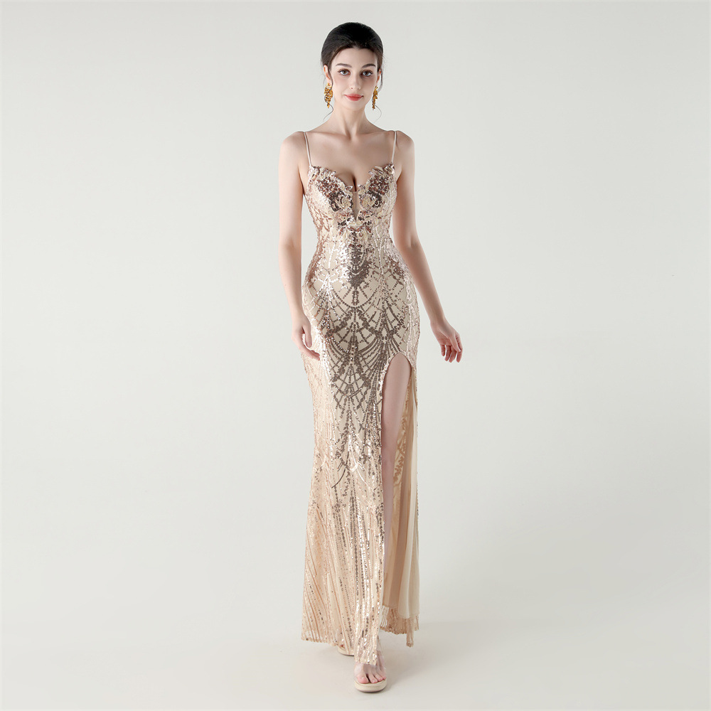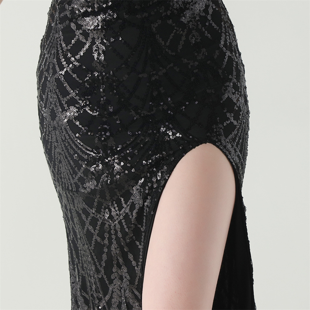 Sequin & Polyester Slim Long Evening Dress side slit PC