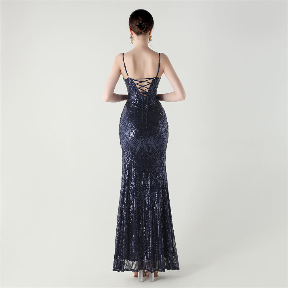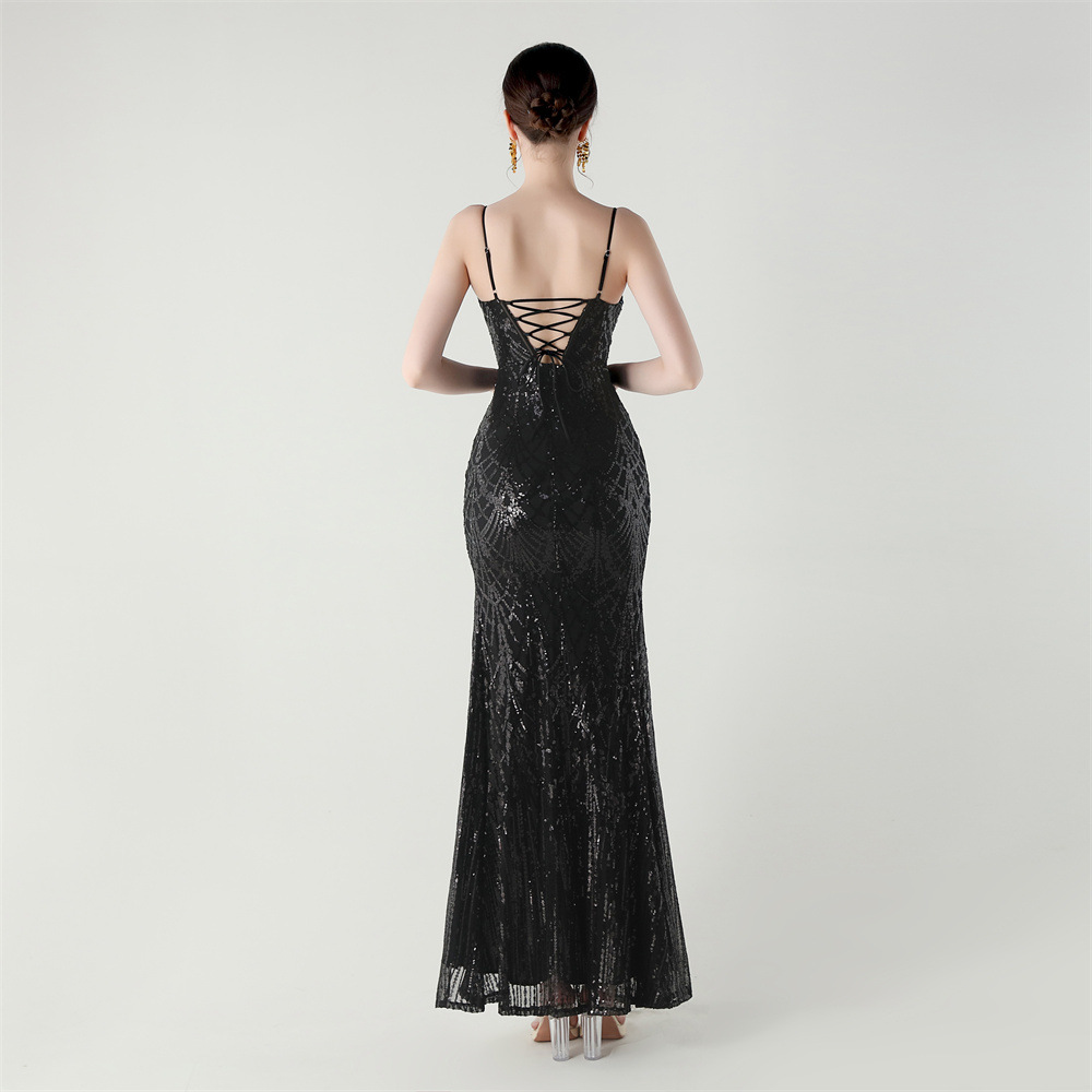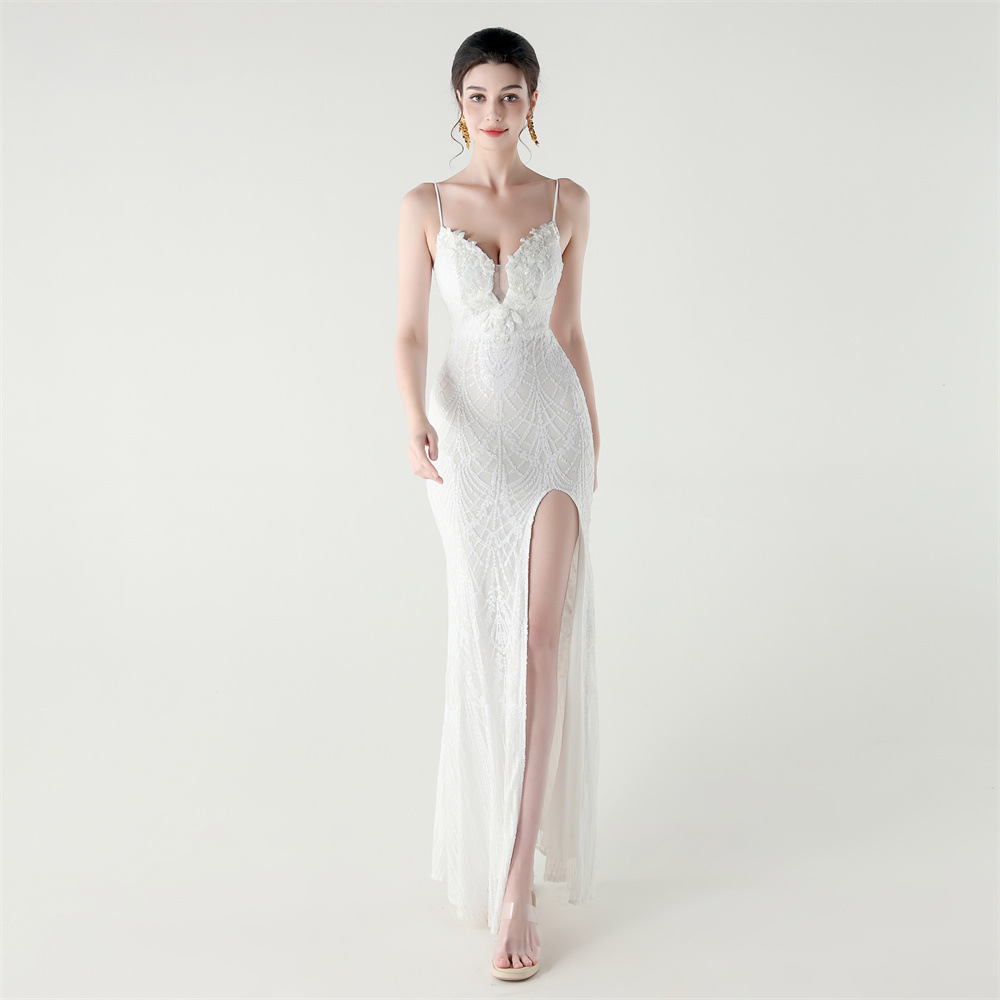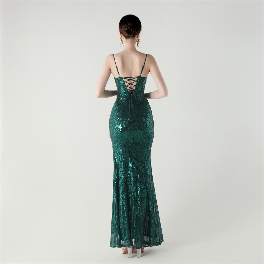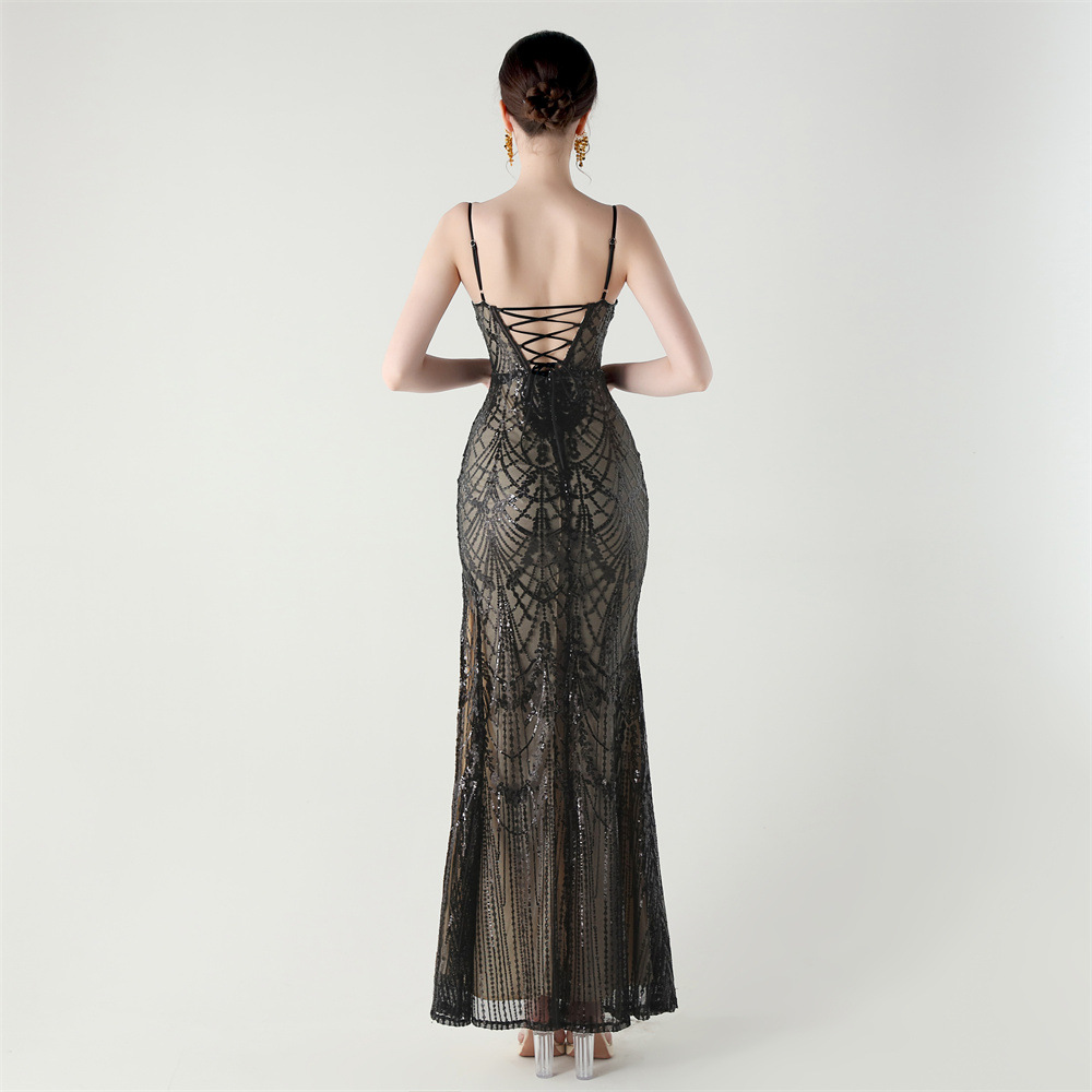 Sequin & Polyester Slim Long Evening Dress side slit PC
