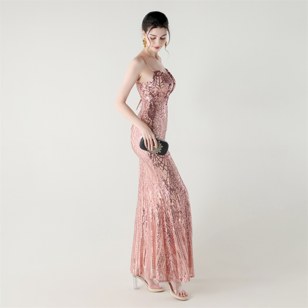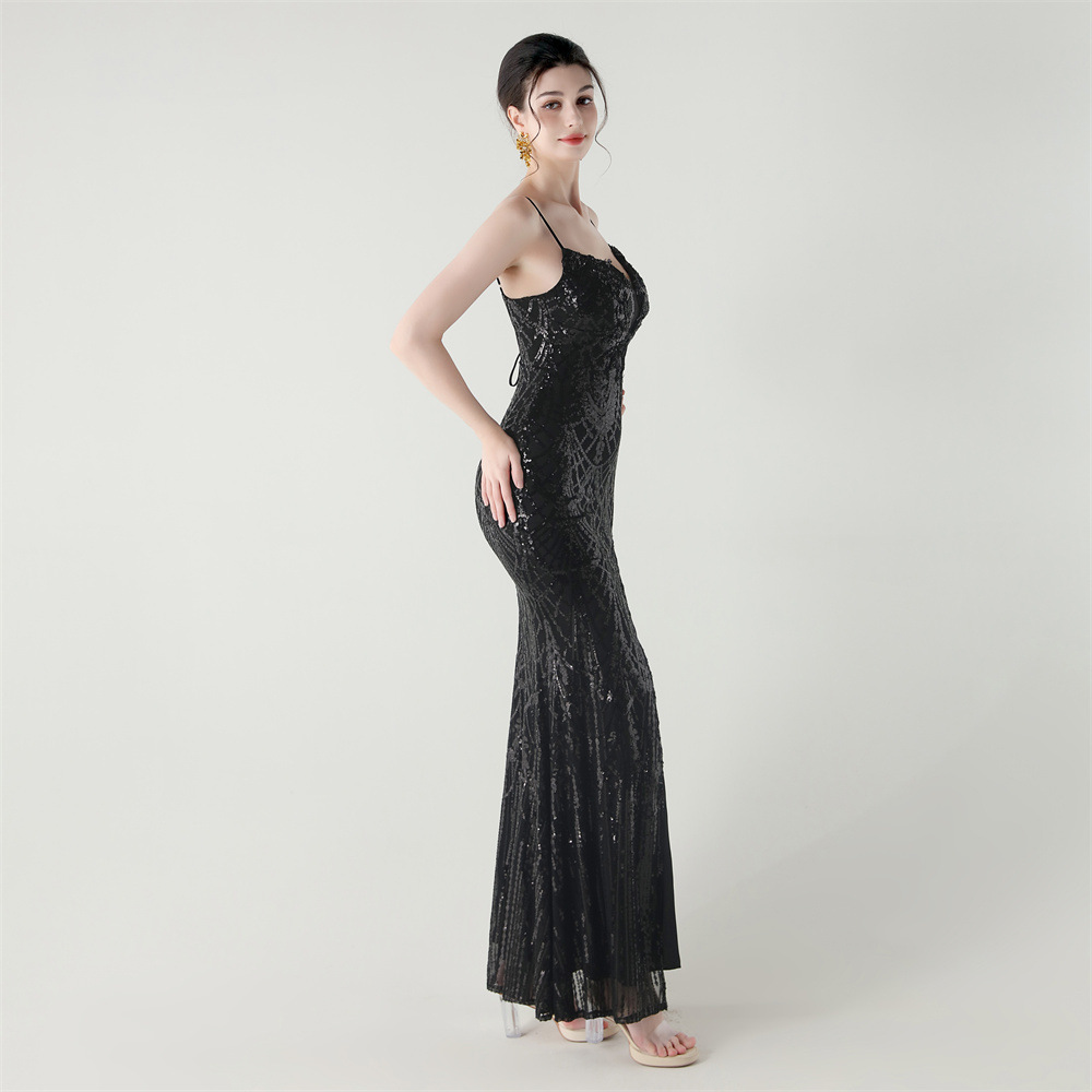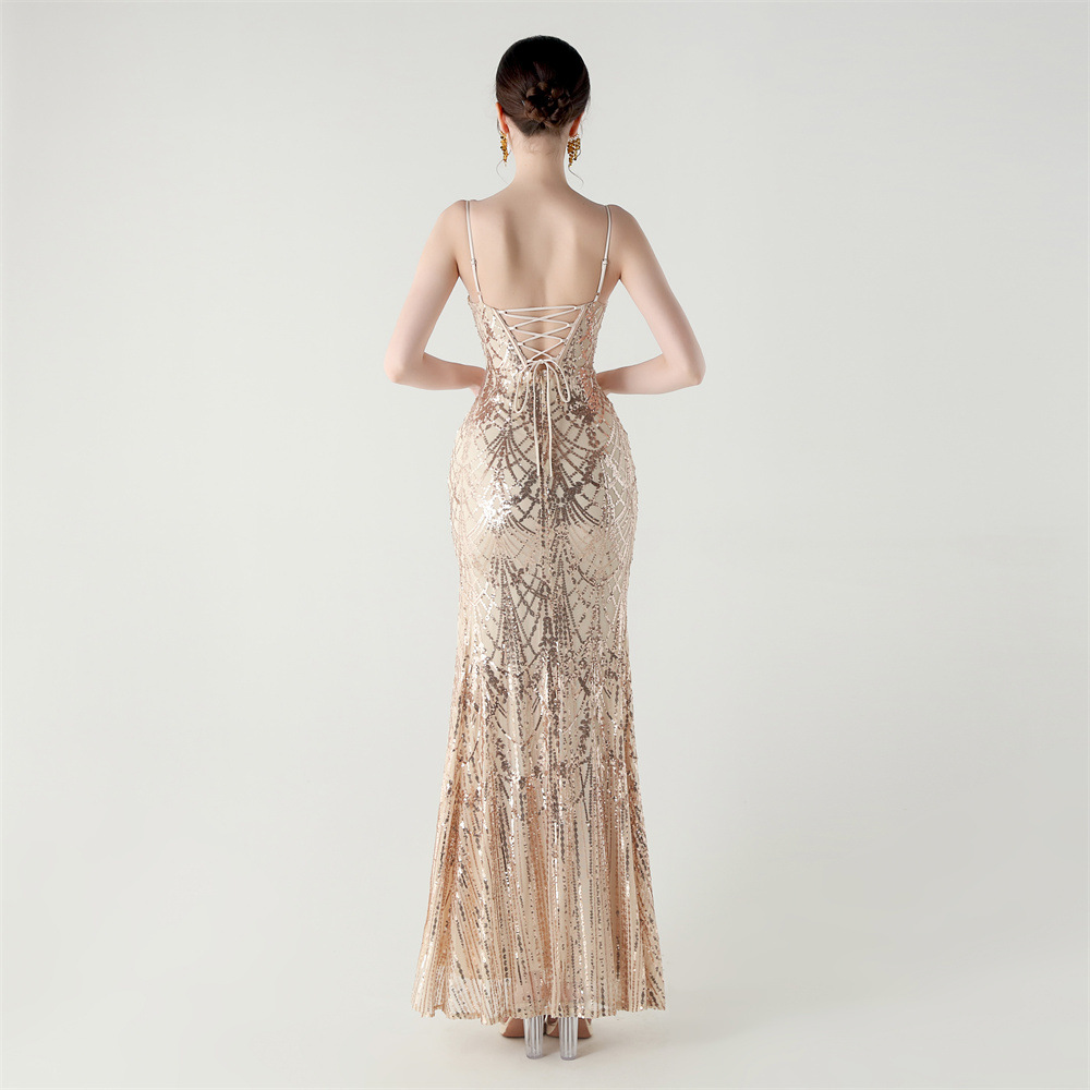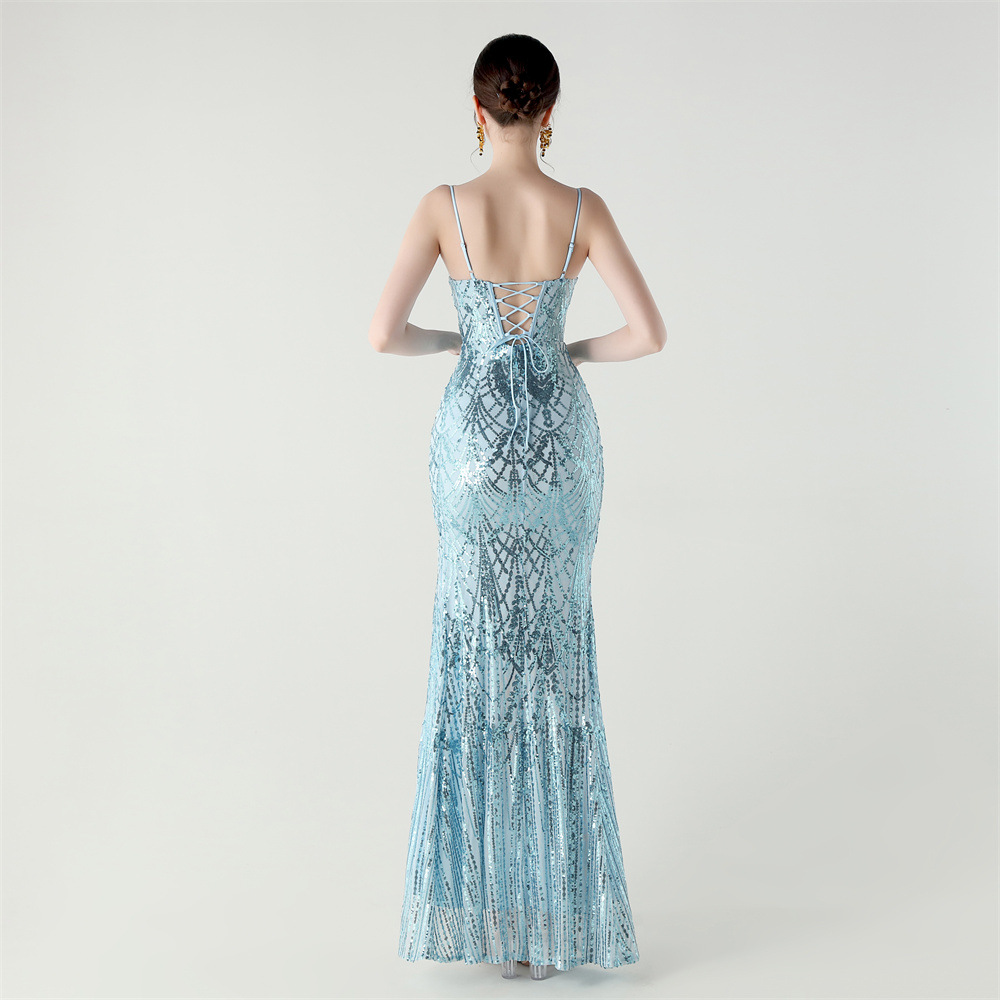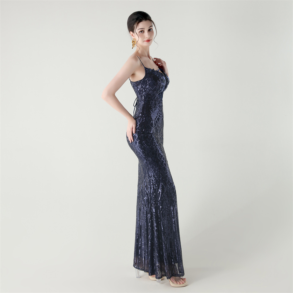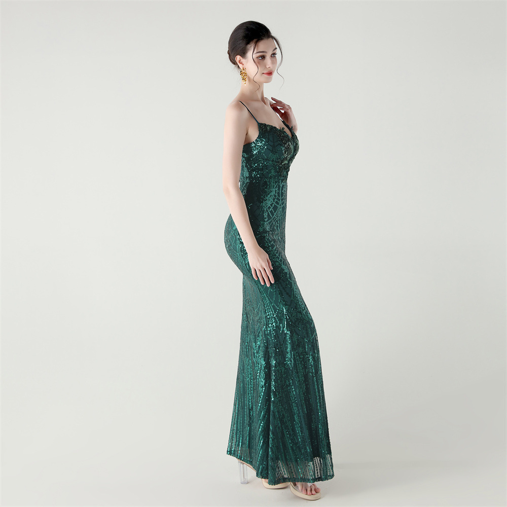 Sequin & Polyester Slim Long Evening Dress side slit PC