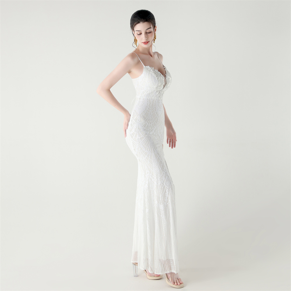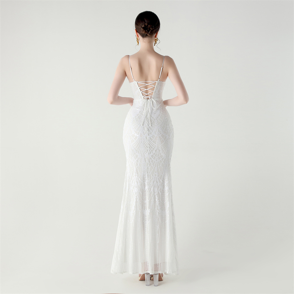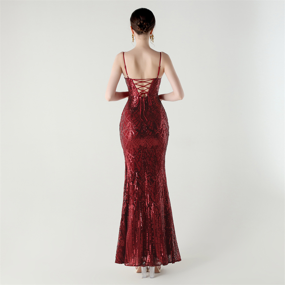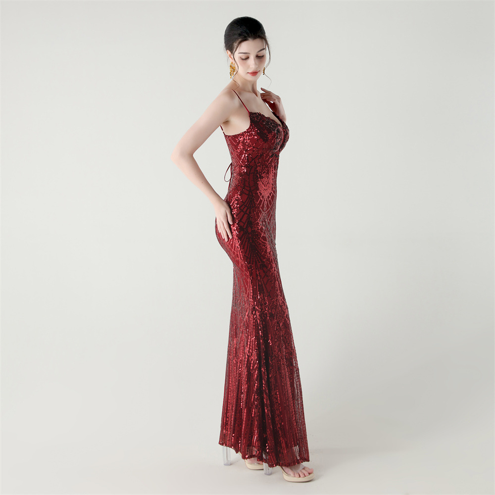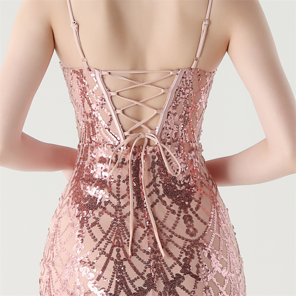 Sequin & Polyester Slim Long Evening Dress side slit PC