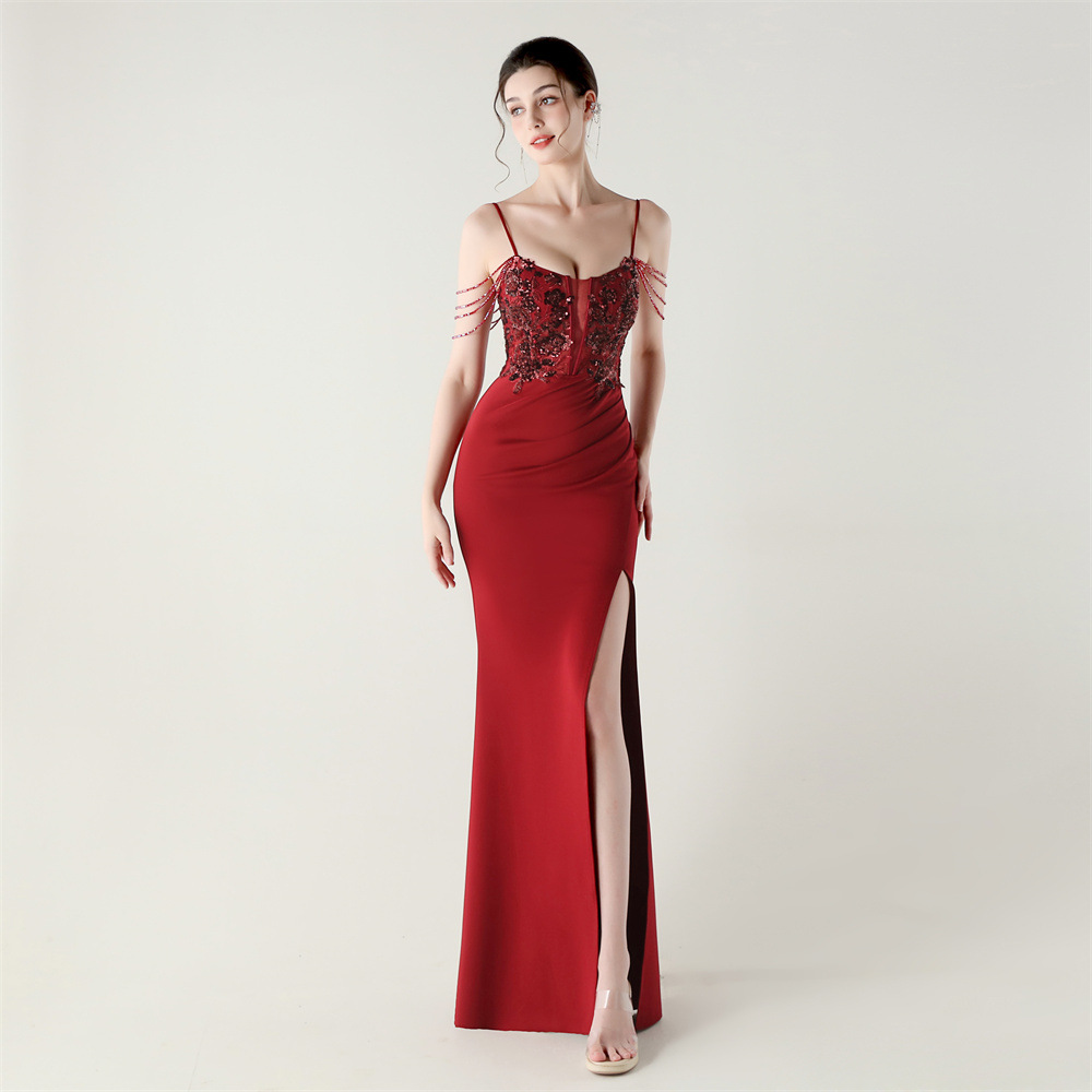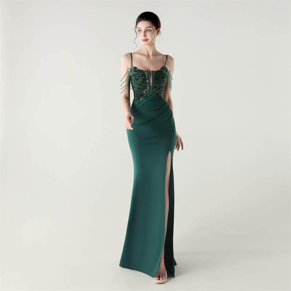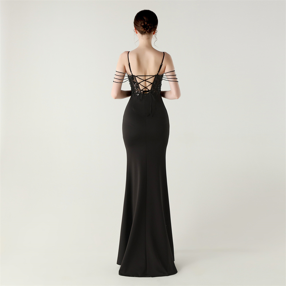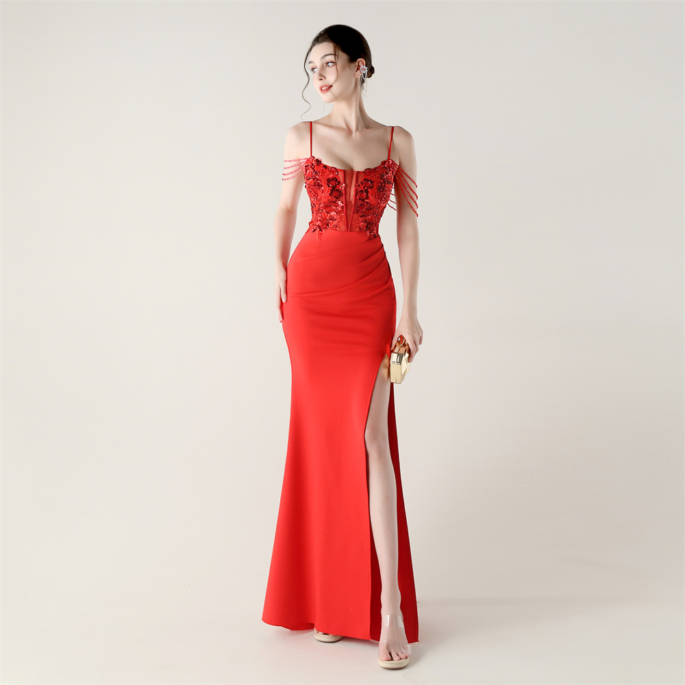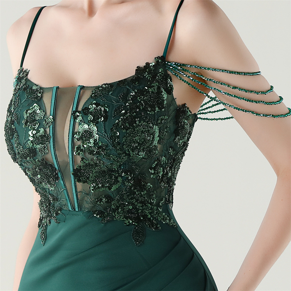 Sequin & Polyester Slim Long Evening Dress side slit PC