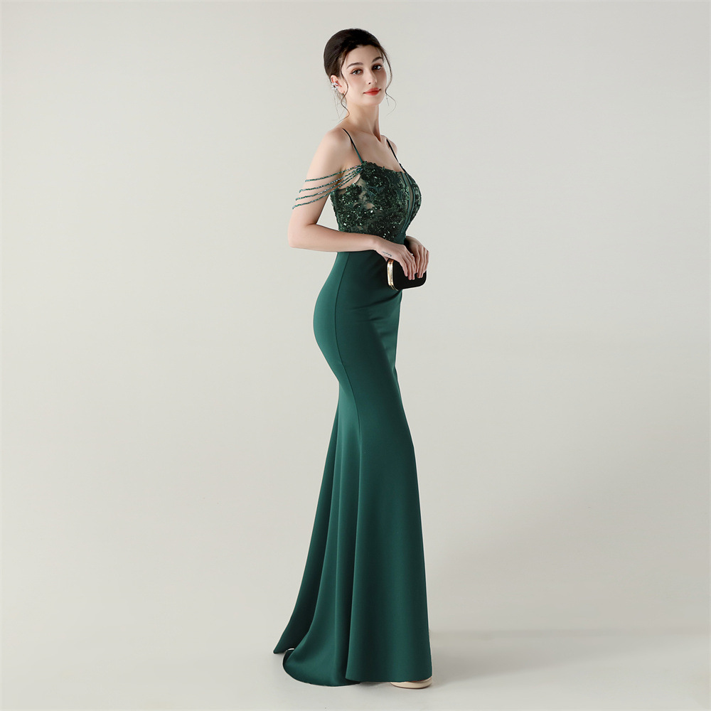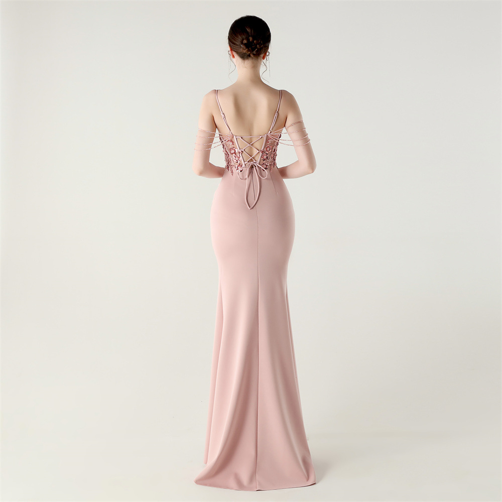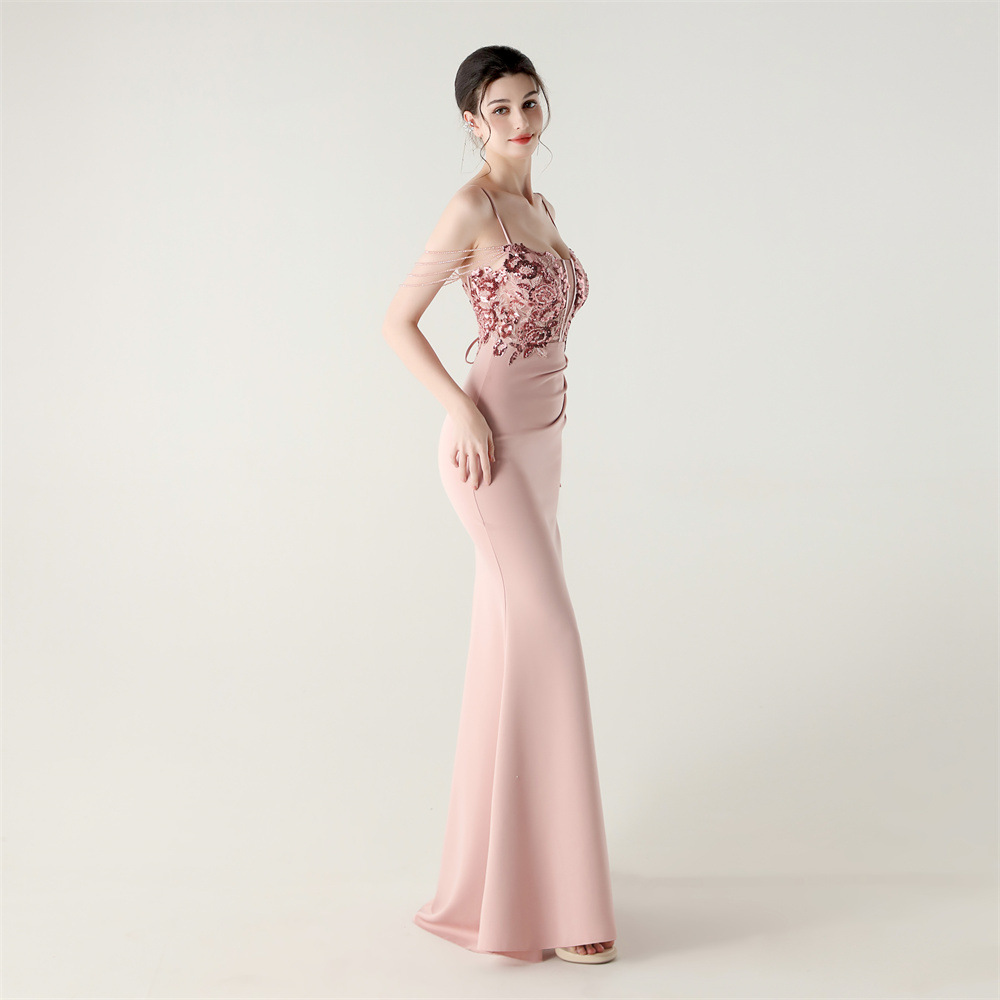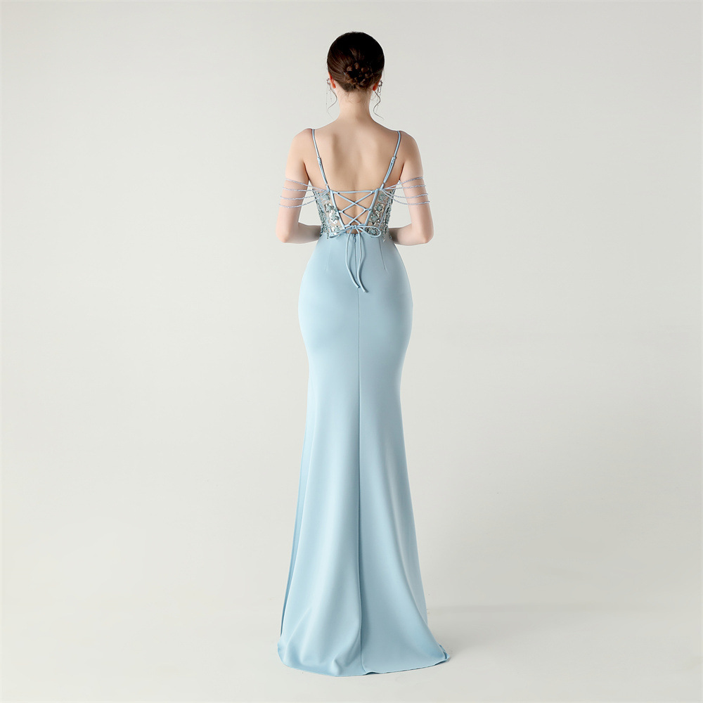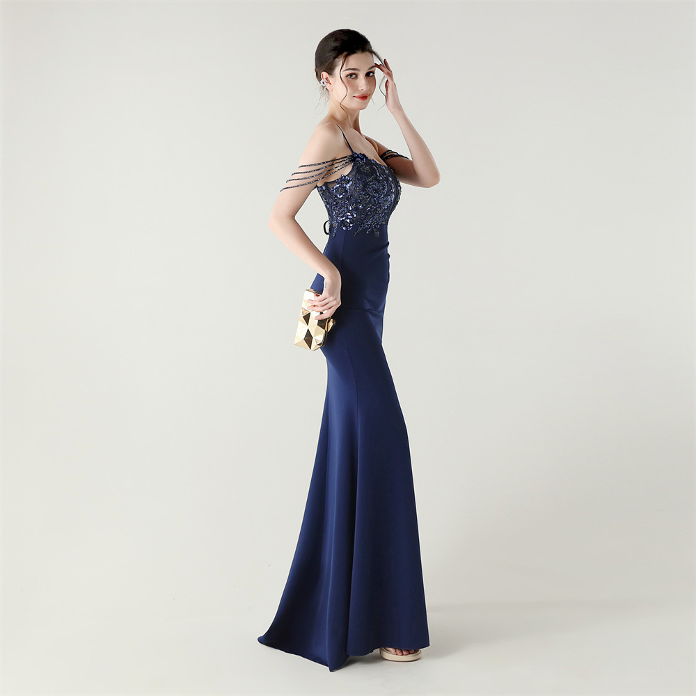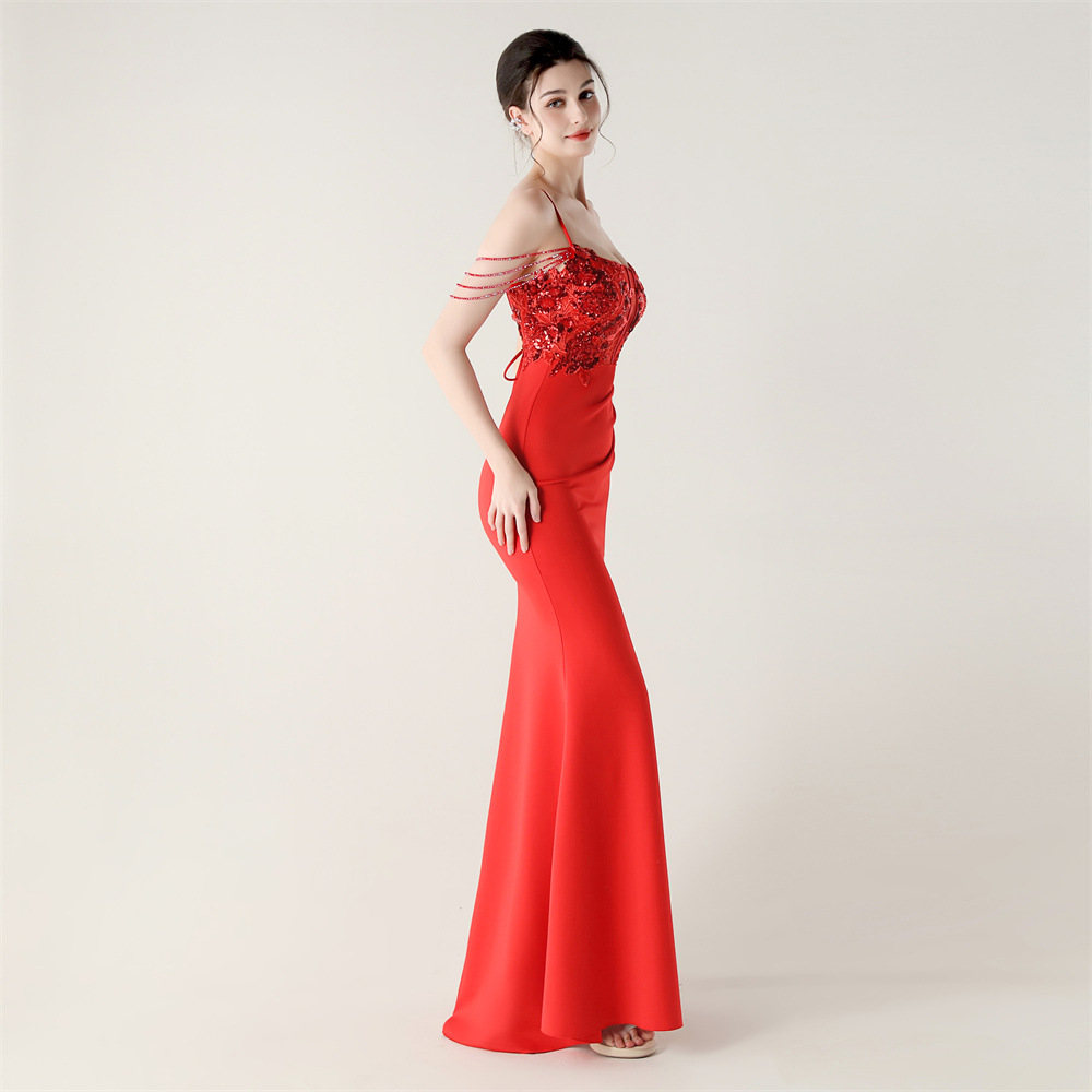 Sequin & Polyester Slim Long Evening Dress side slit PC