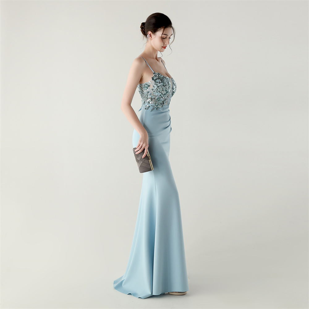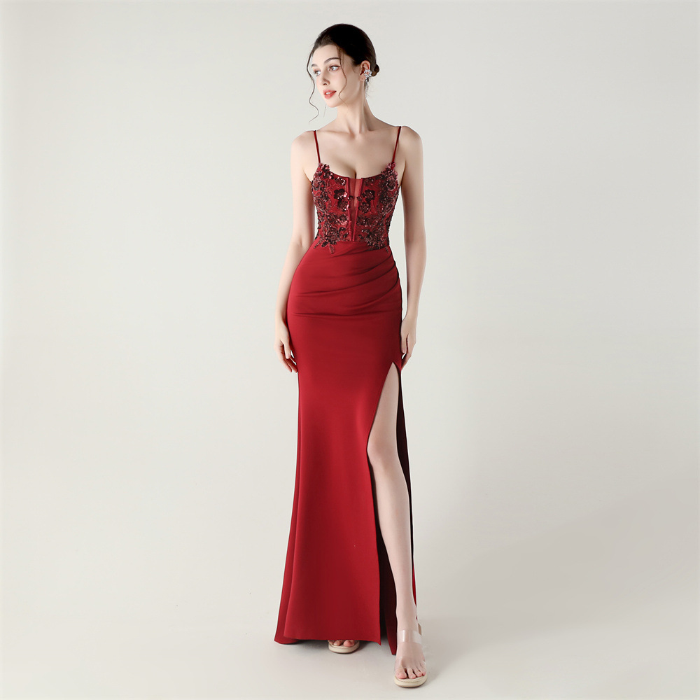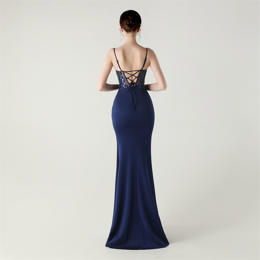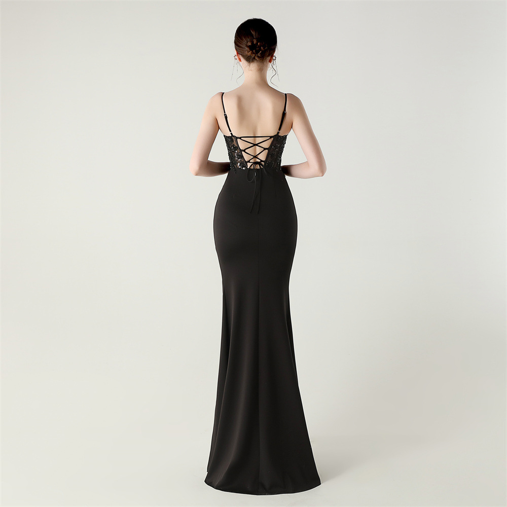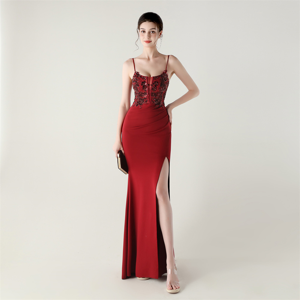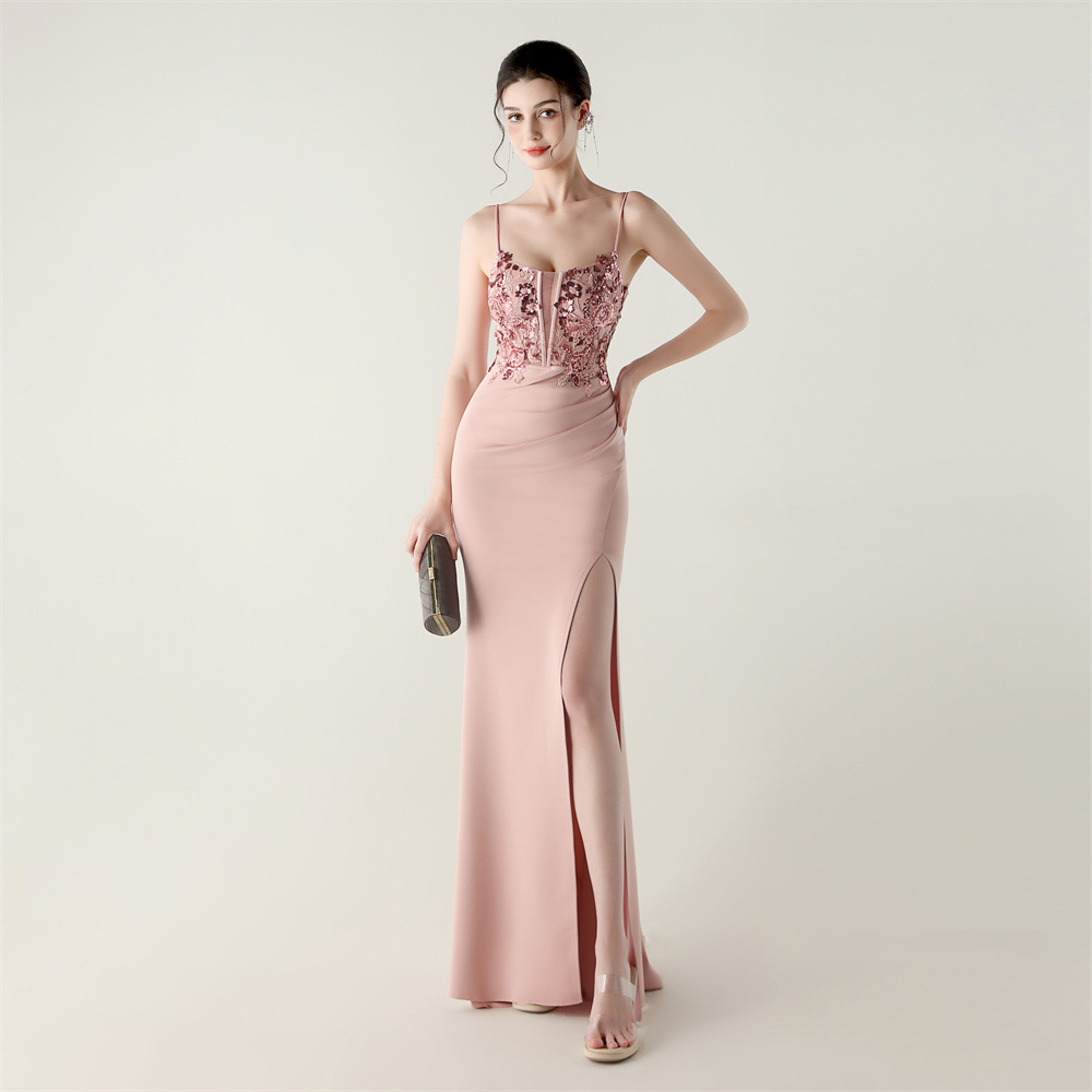 Sequin & Polyester Slim Long Evening Dress side slit PC